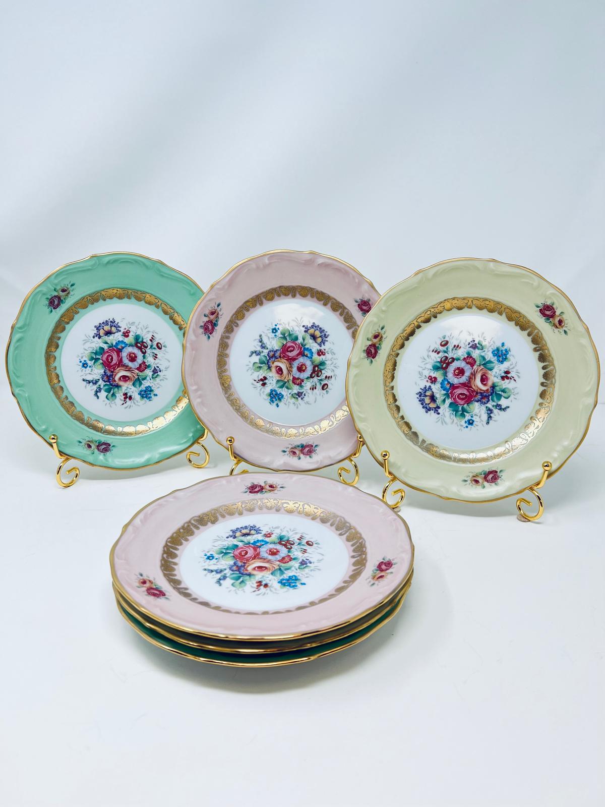 6 plates ( 2 Green, 2 Pink, 2 Cream )