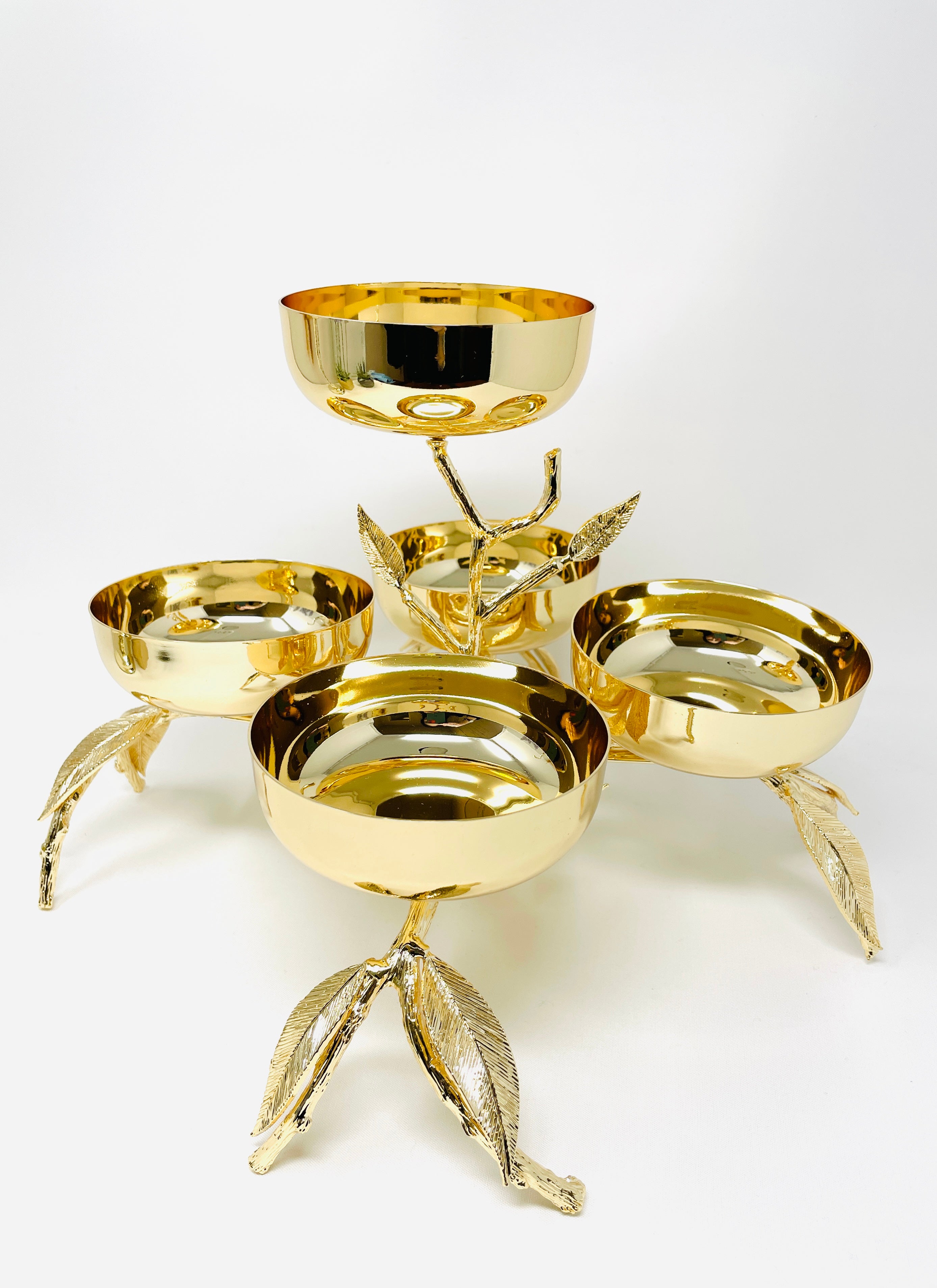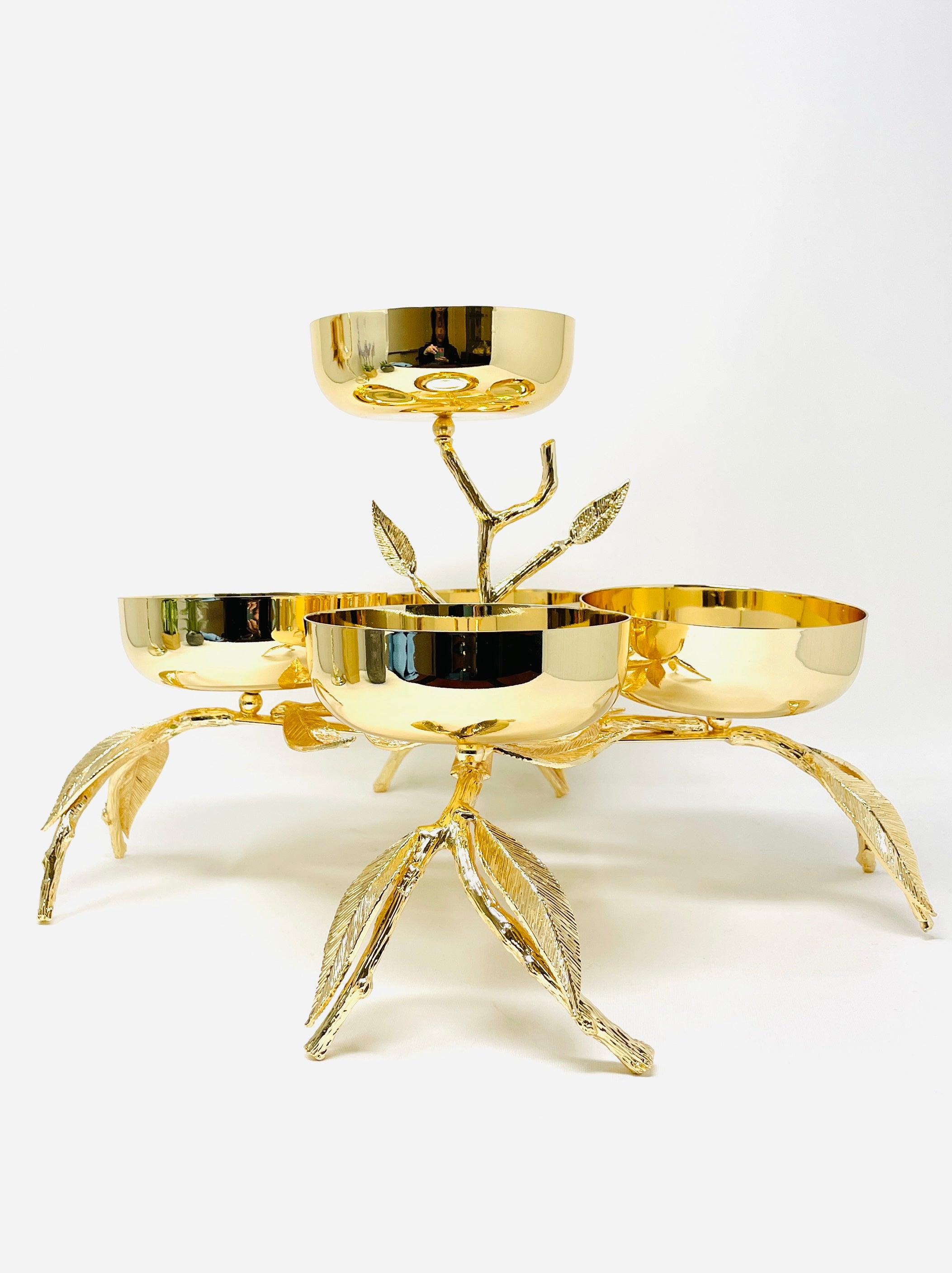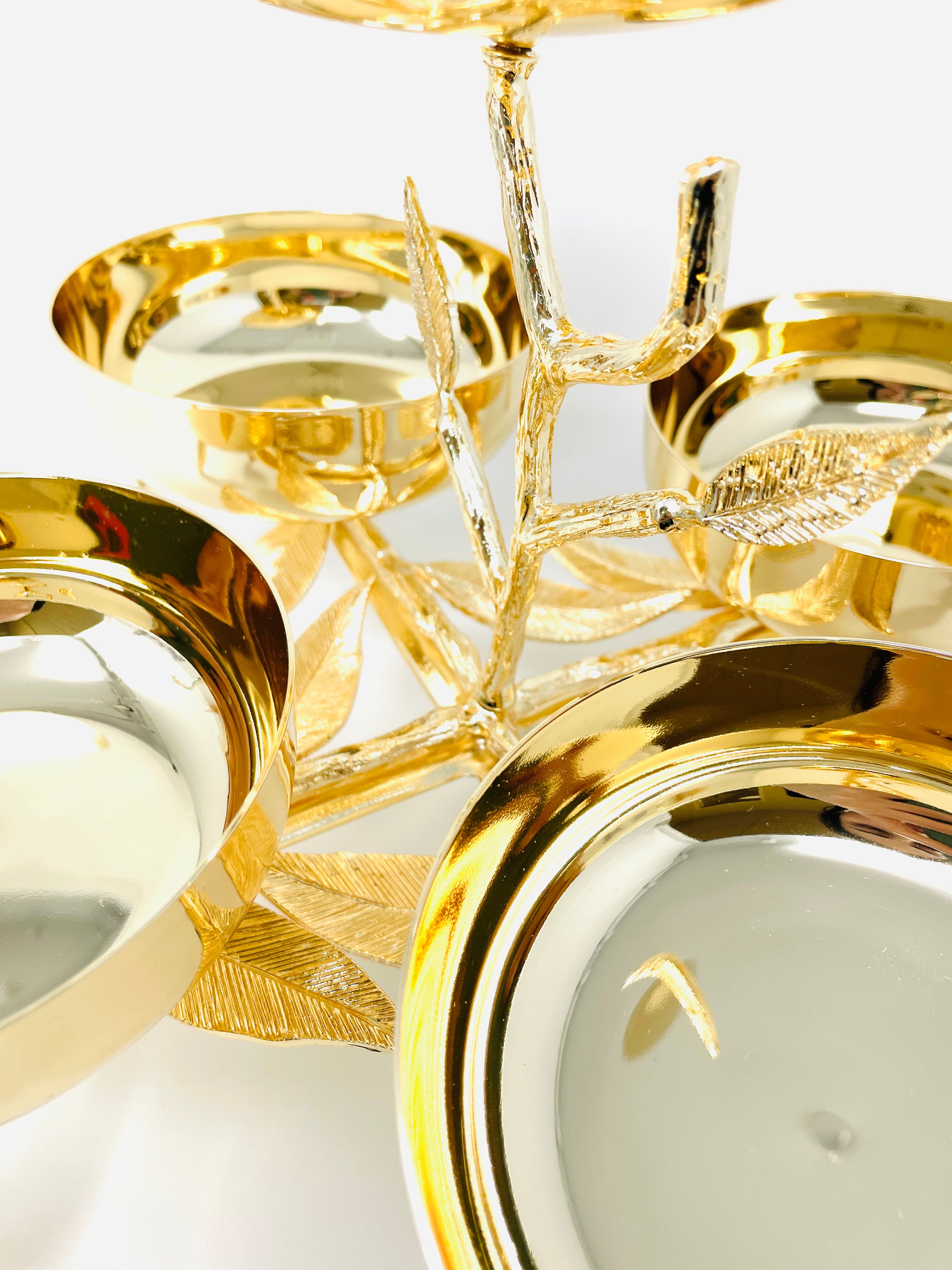 FIVE SECTION GOLDEN TONE SNACK BOWL , LEAF COLLECTION