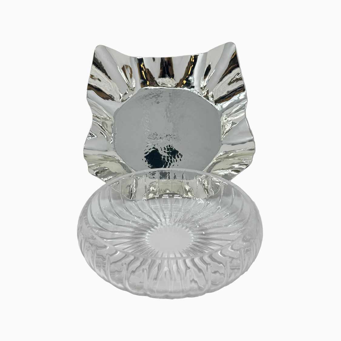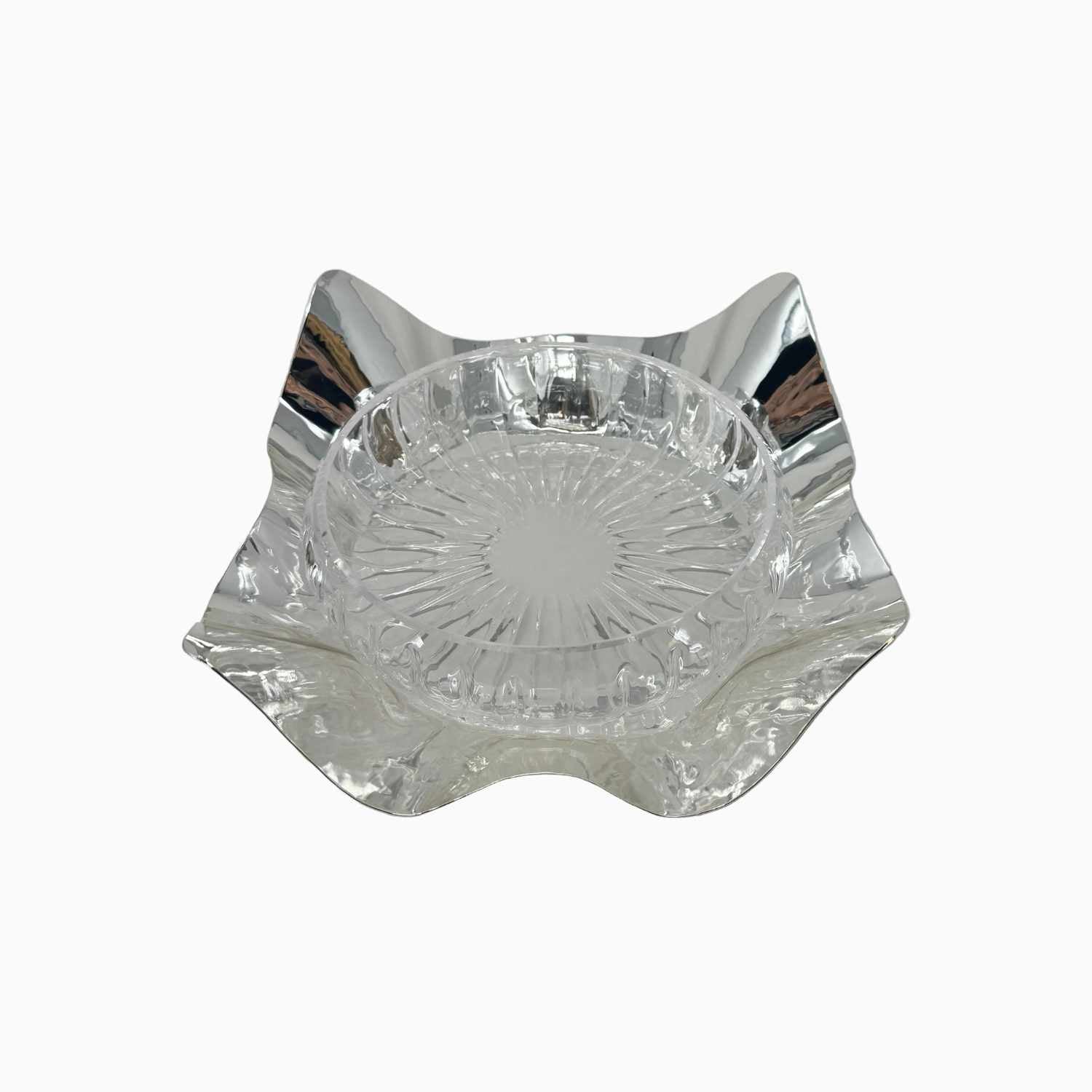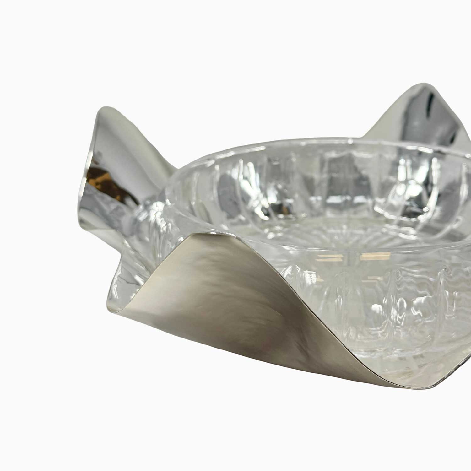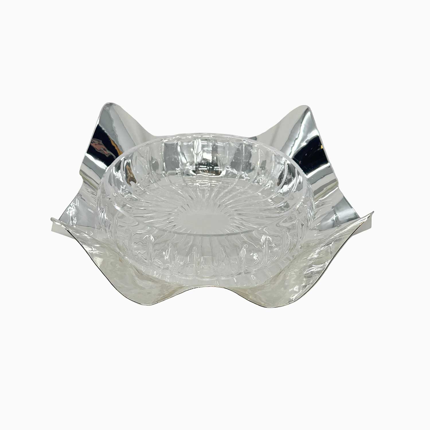 MEDIUM GLASS FRUIT BOWL ON SILVER TONE STAND