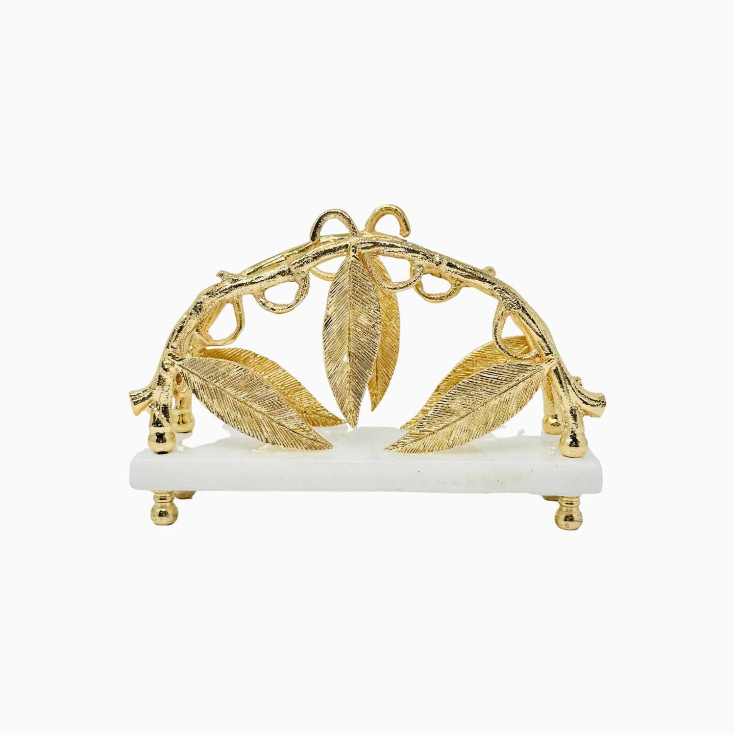 This exquisite marble napkin holder, adorned with golden Leaf accents, is a symbol of elegance and sophistication. Perfect for elevating your table setting, this piece is sure to impress your guests.
