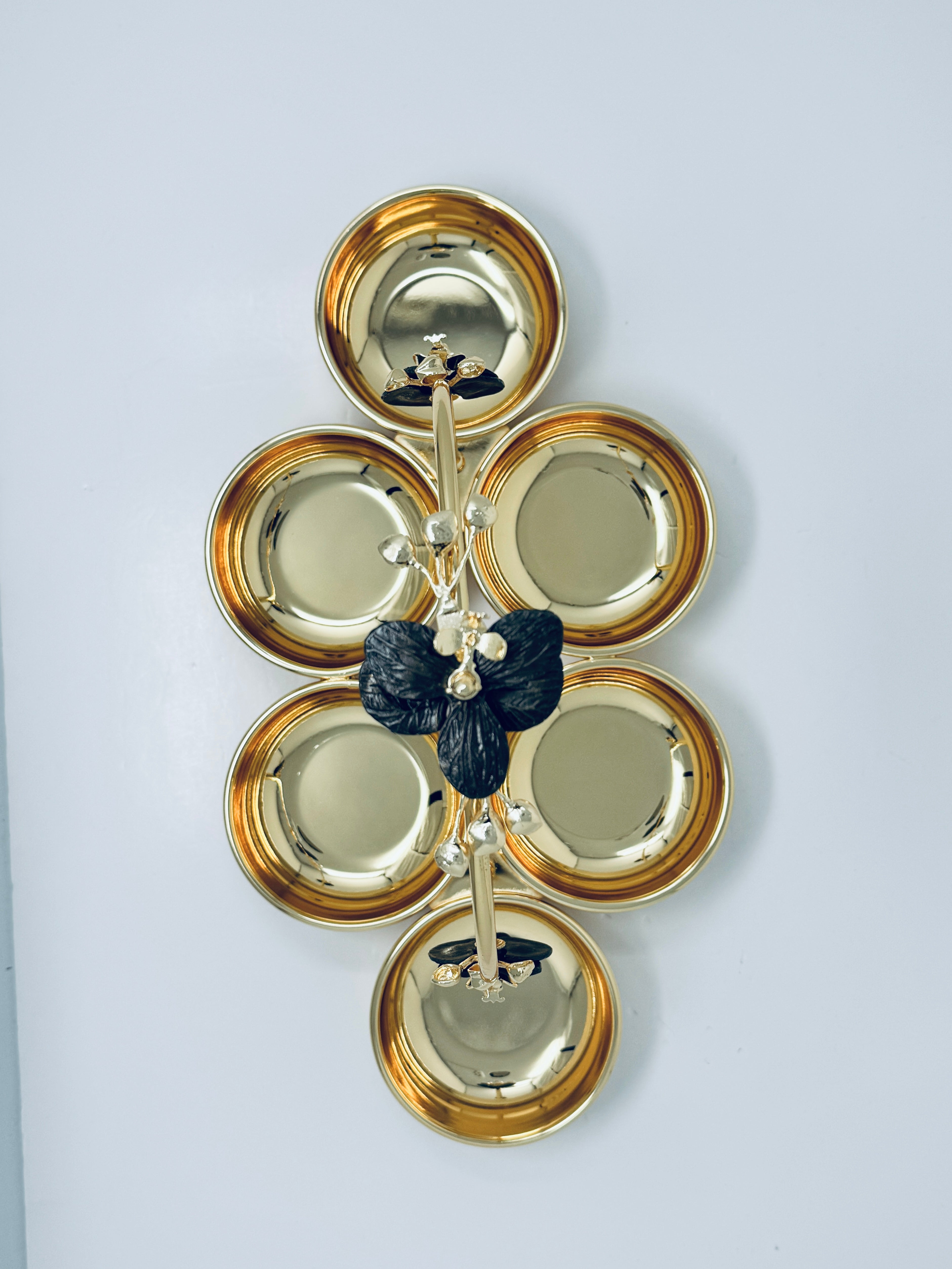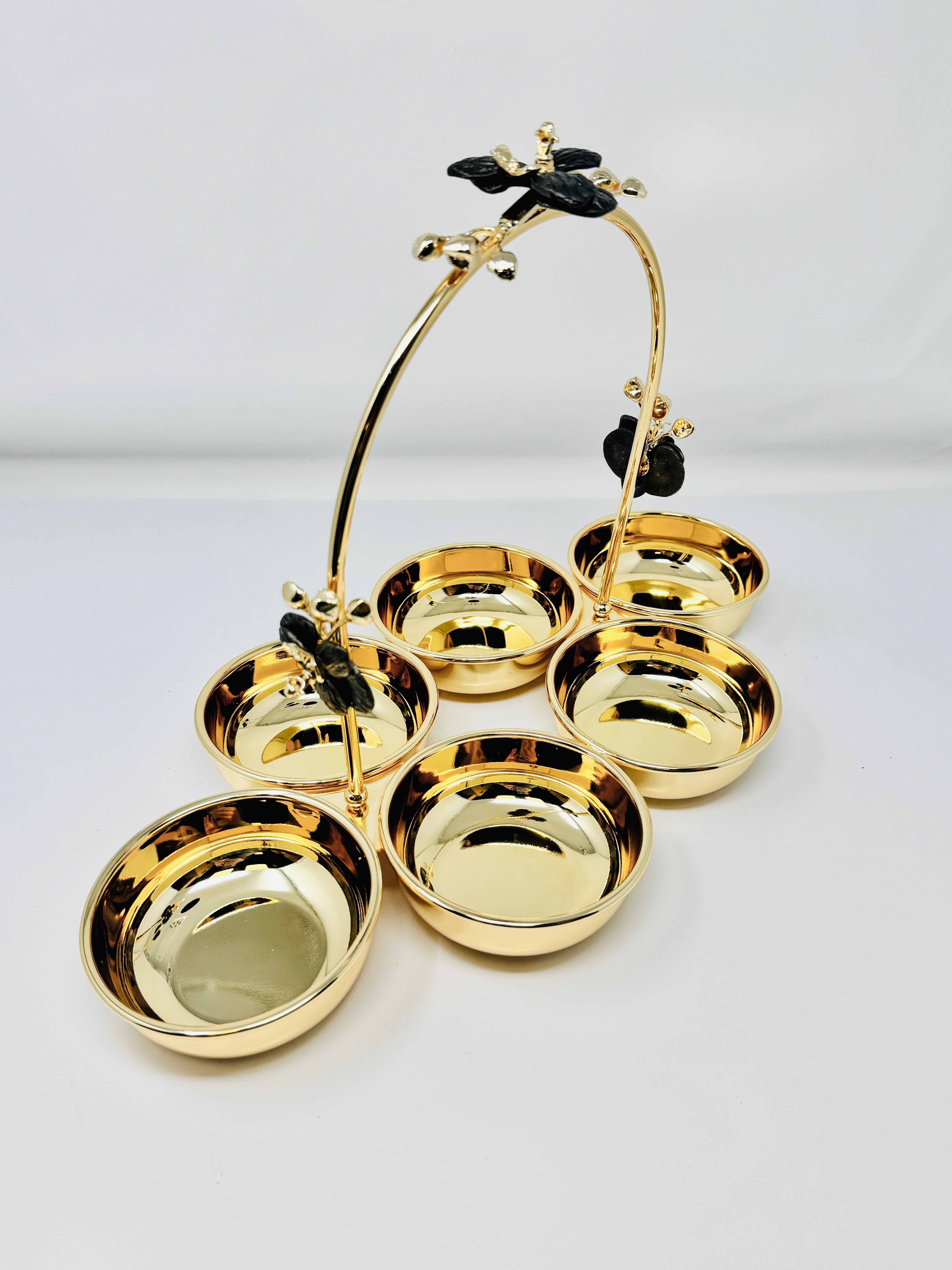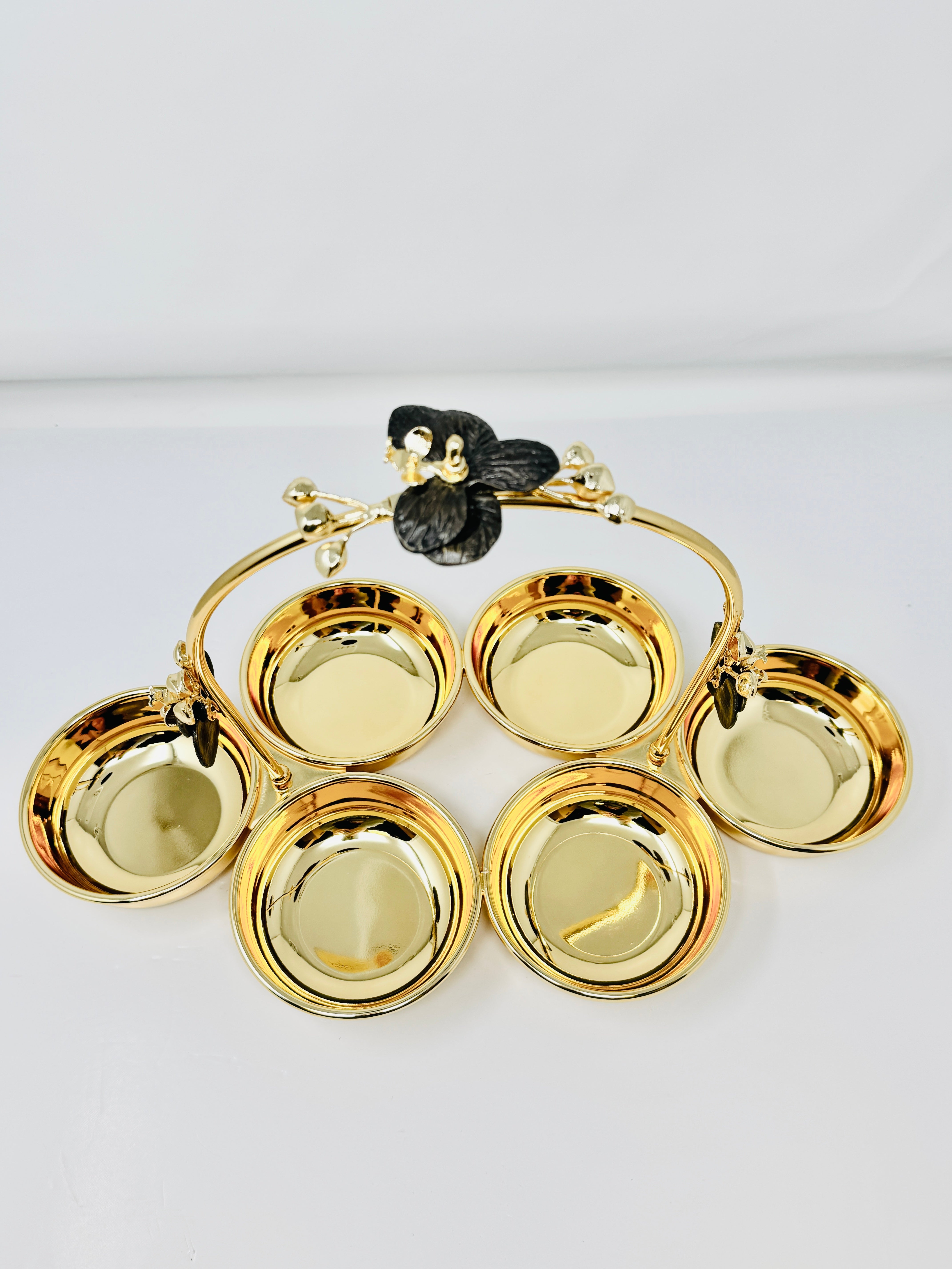 With its modern design, this Six section snack bowl makes the perfect addition to any dinner party, ceremony or event. Accented with a Olive leaf, this piece is made to meet the needs of every guest. While some may prefer salty, others sweet or a combination of both, this five-section bowl provides enough space to leave all guests feeling full, happy and satisfied. This piece can also be used to decorate your kitchen counter, or serve as a key or jewelry holder.