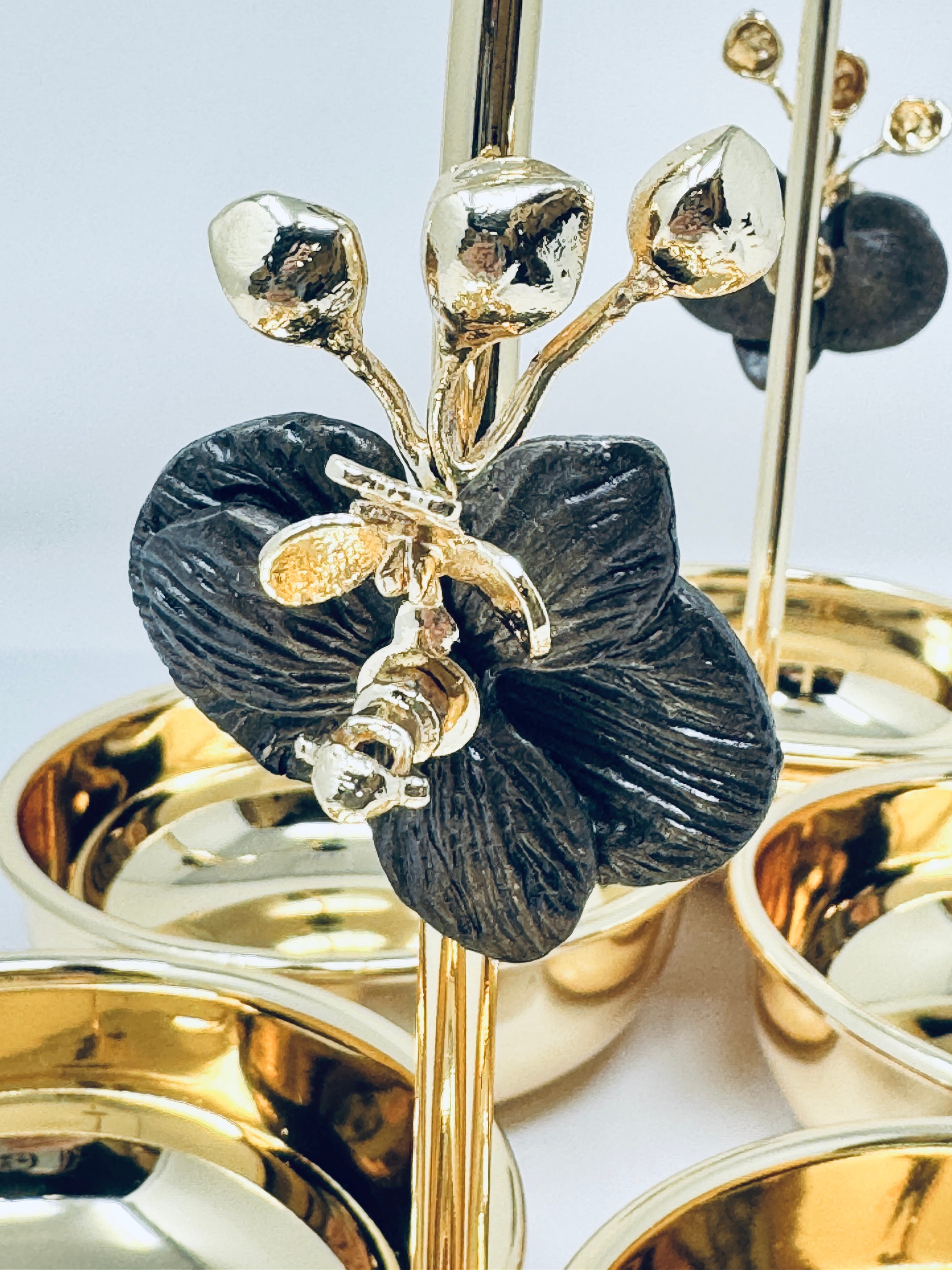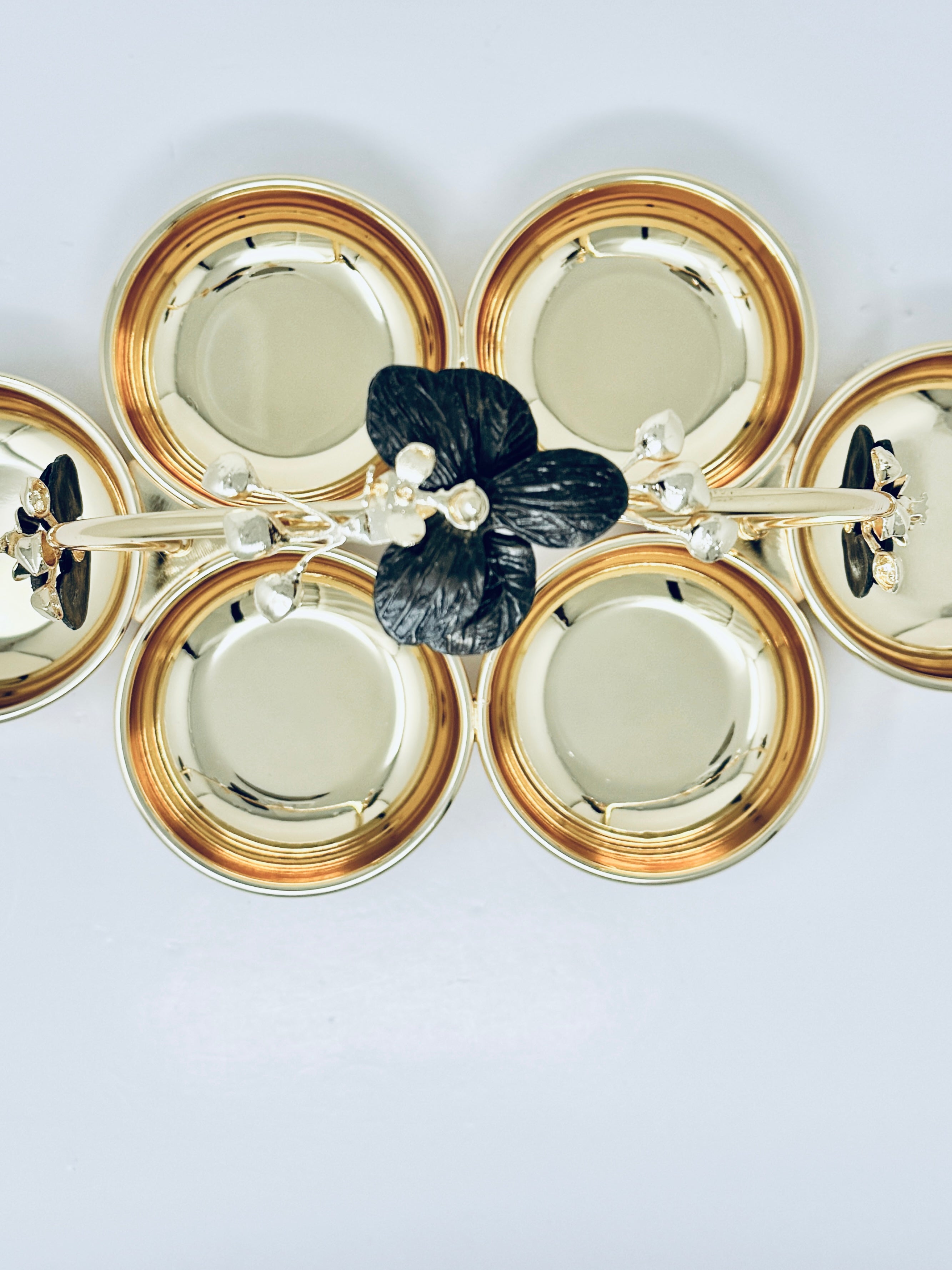 SIX SECTION GOLD TONE SNACK BOWL, ORCHID