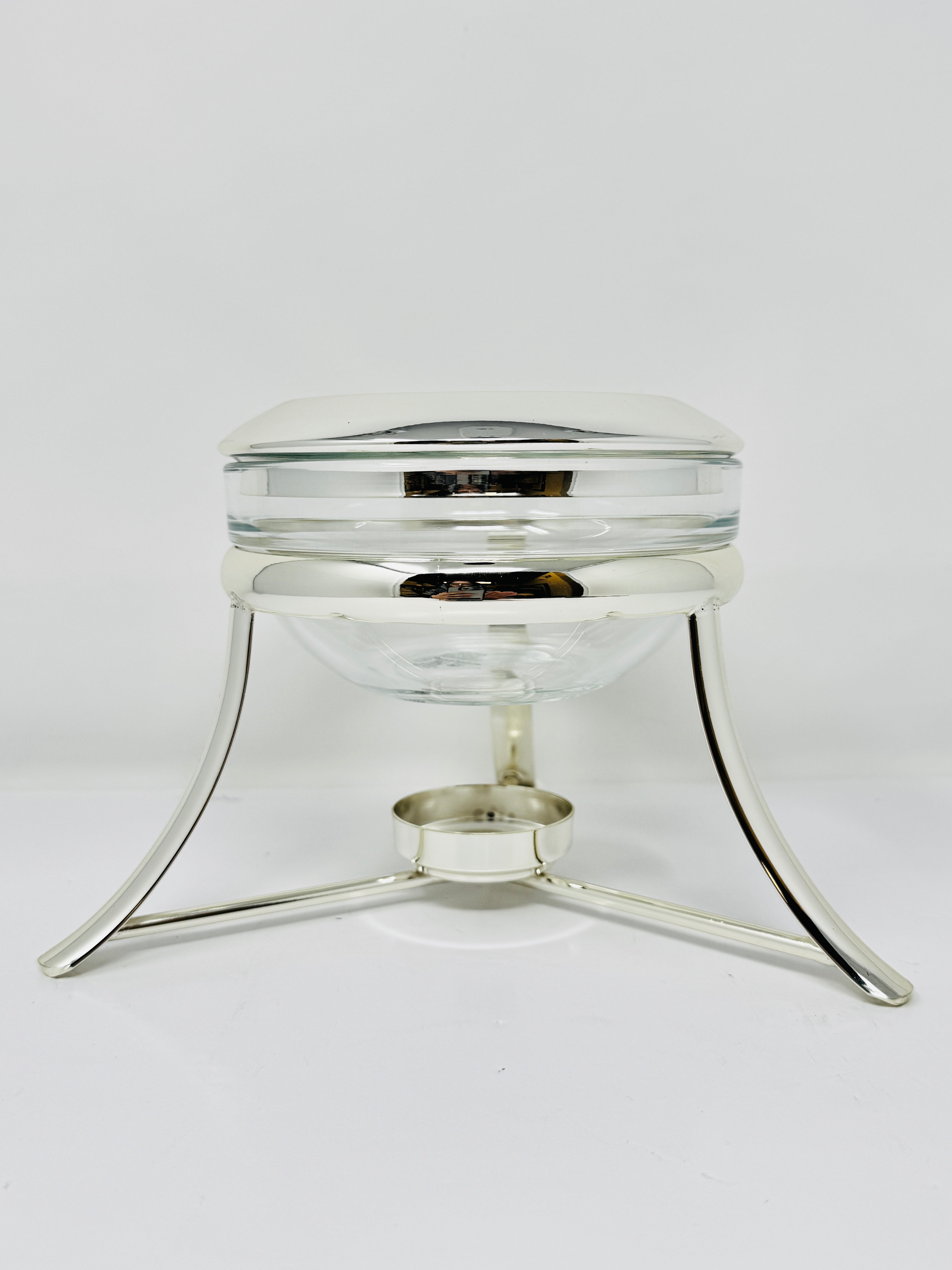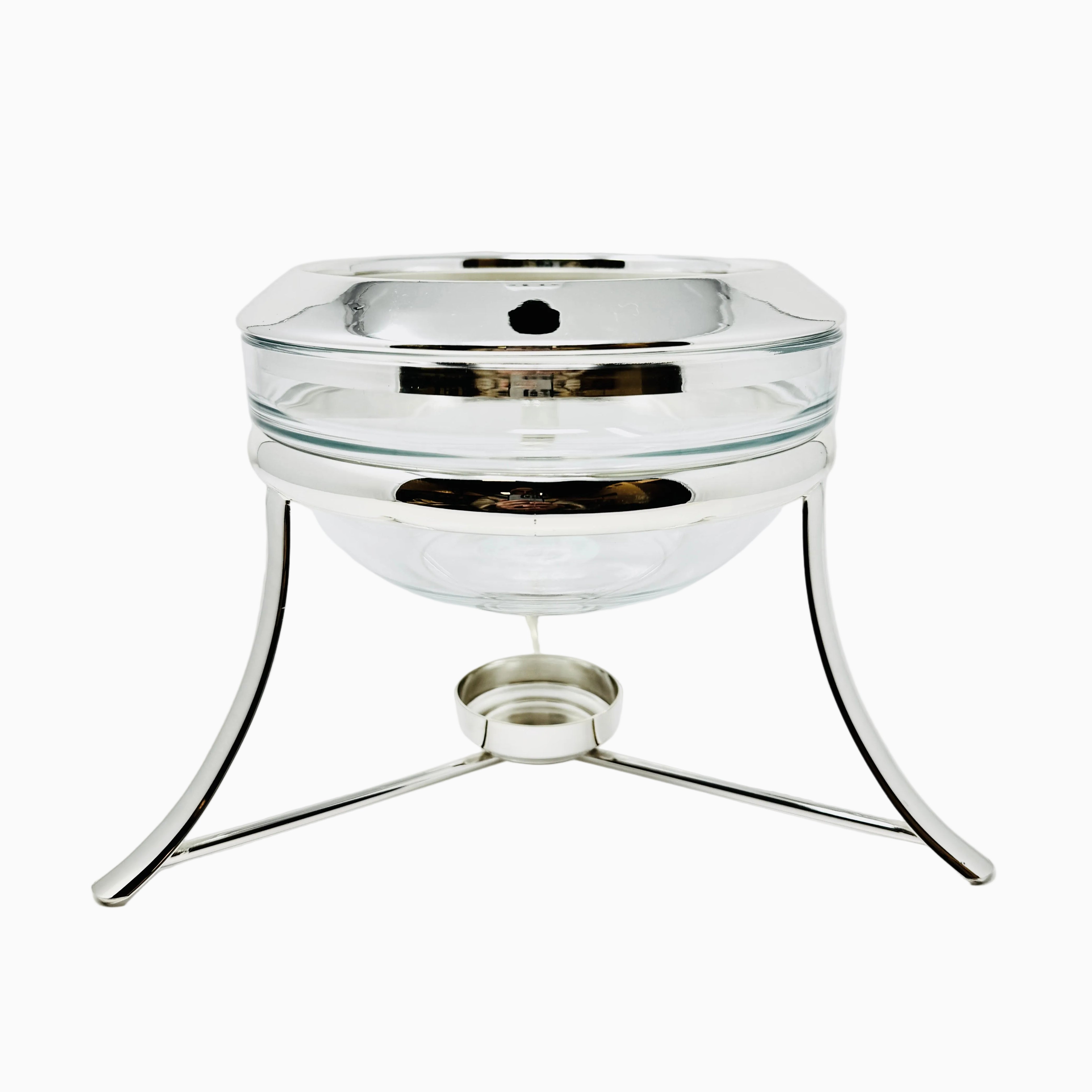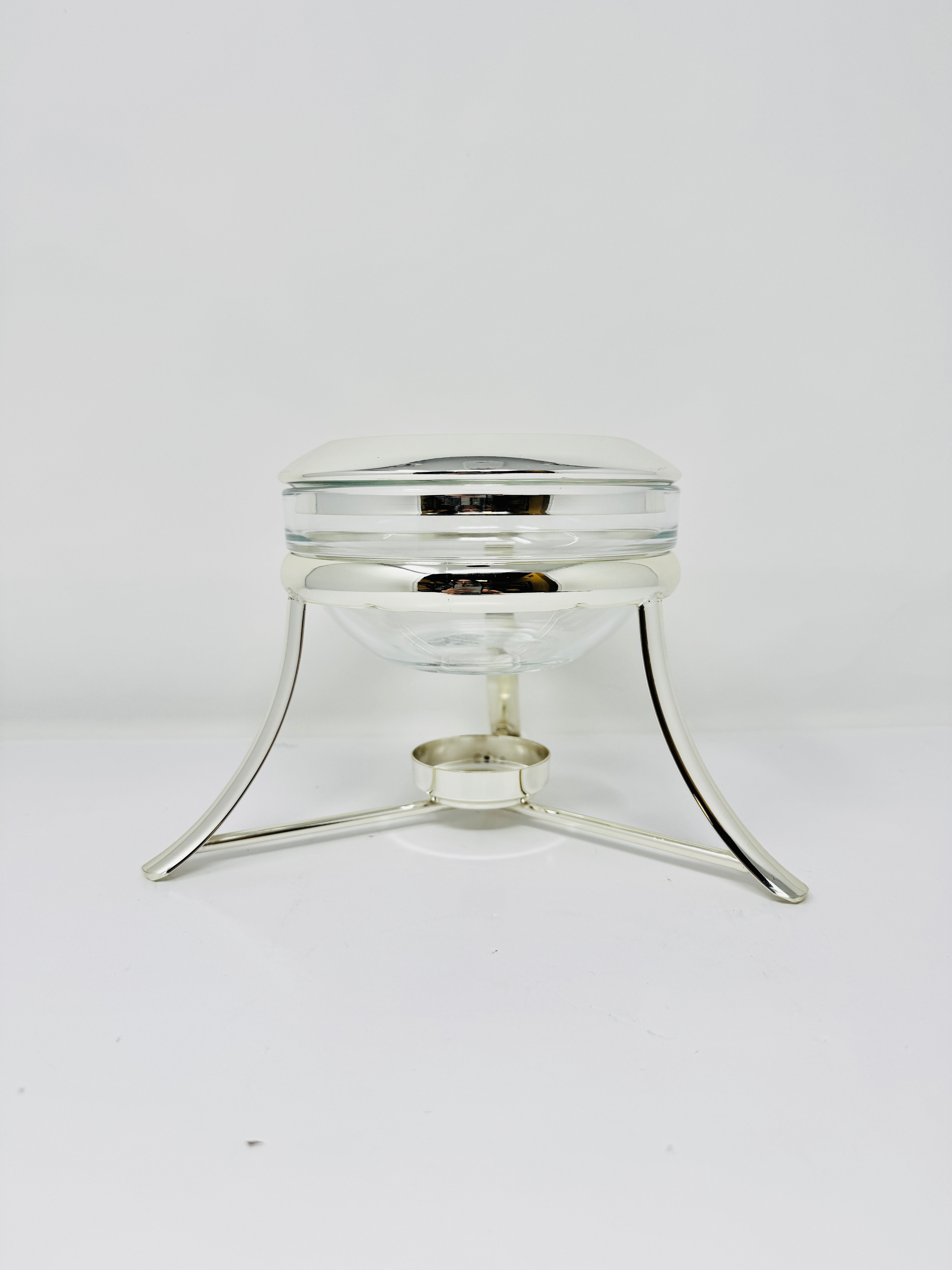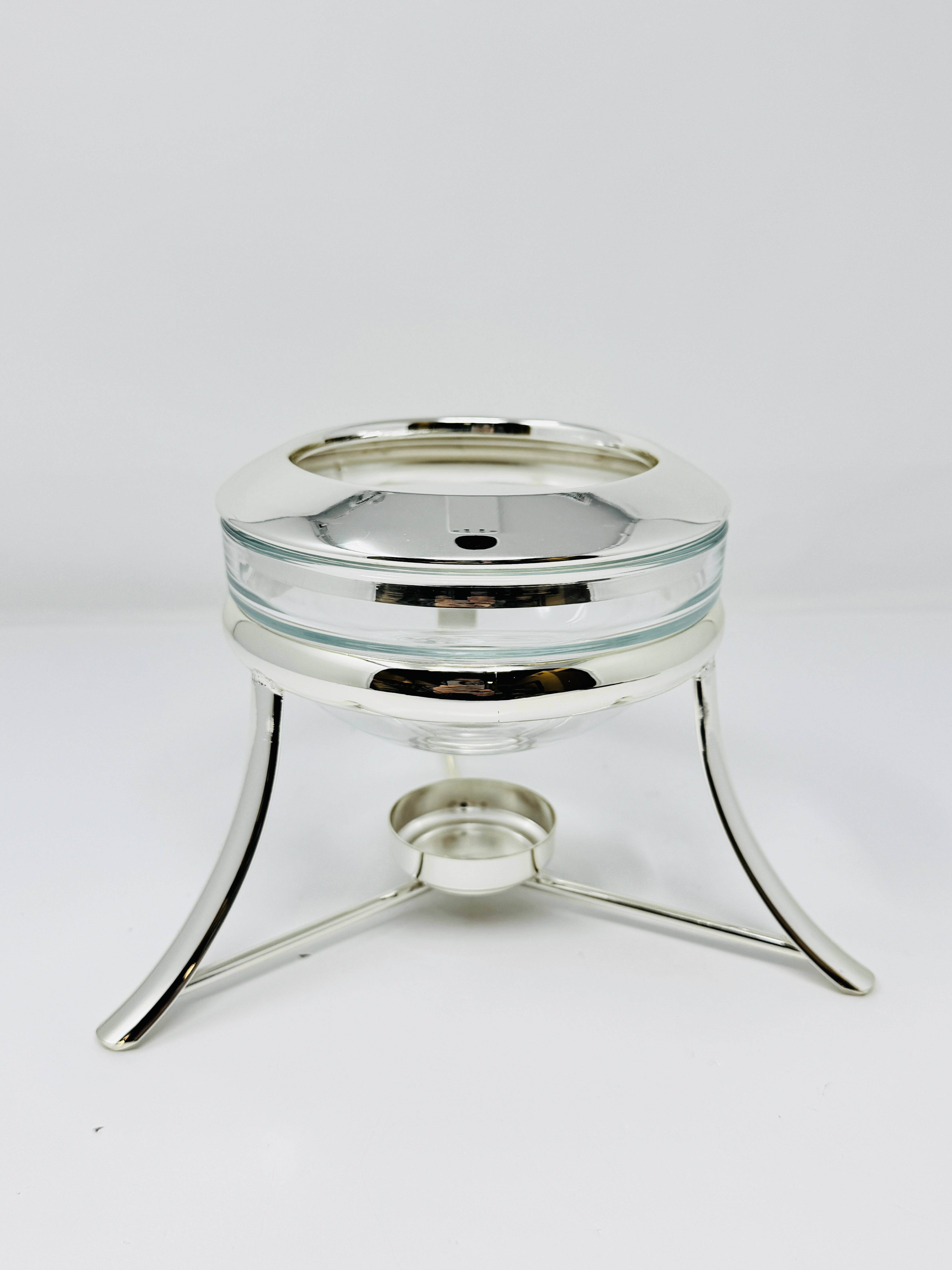 Add a beautiful piece to your collection with this Pyrex Serving Dish  accented Stand with a Warmer. This item is extremely convenient as the glass dish is removable and can be placed directly into the oven, keeping the food warm once on the table. Convenience and class, a perfect combination for a successful dinner party.