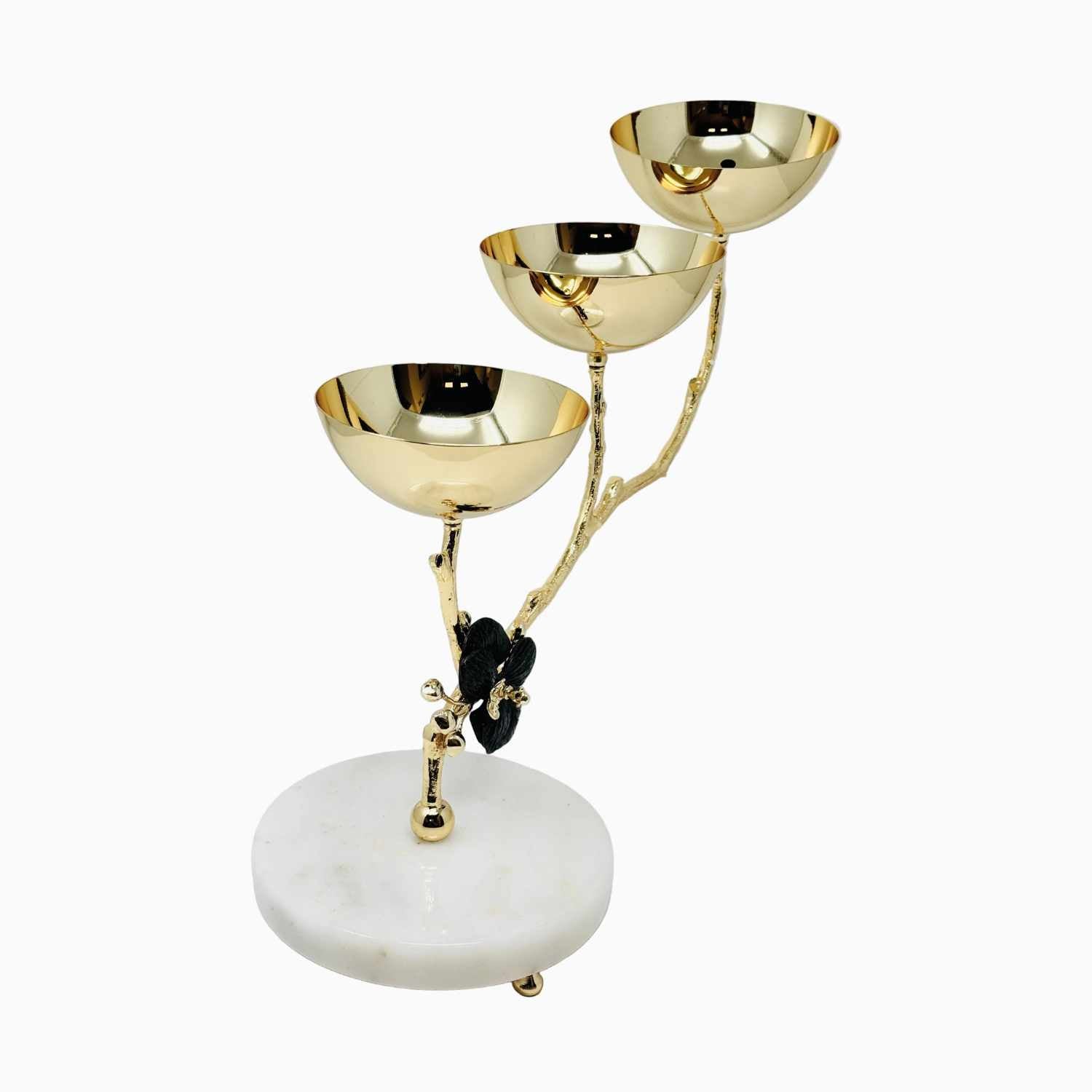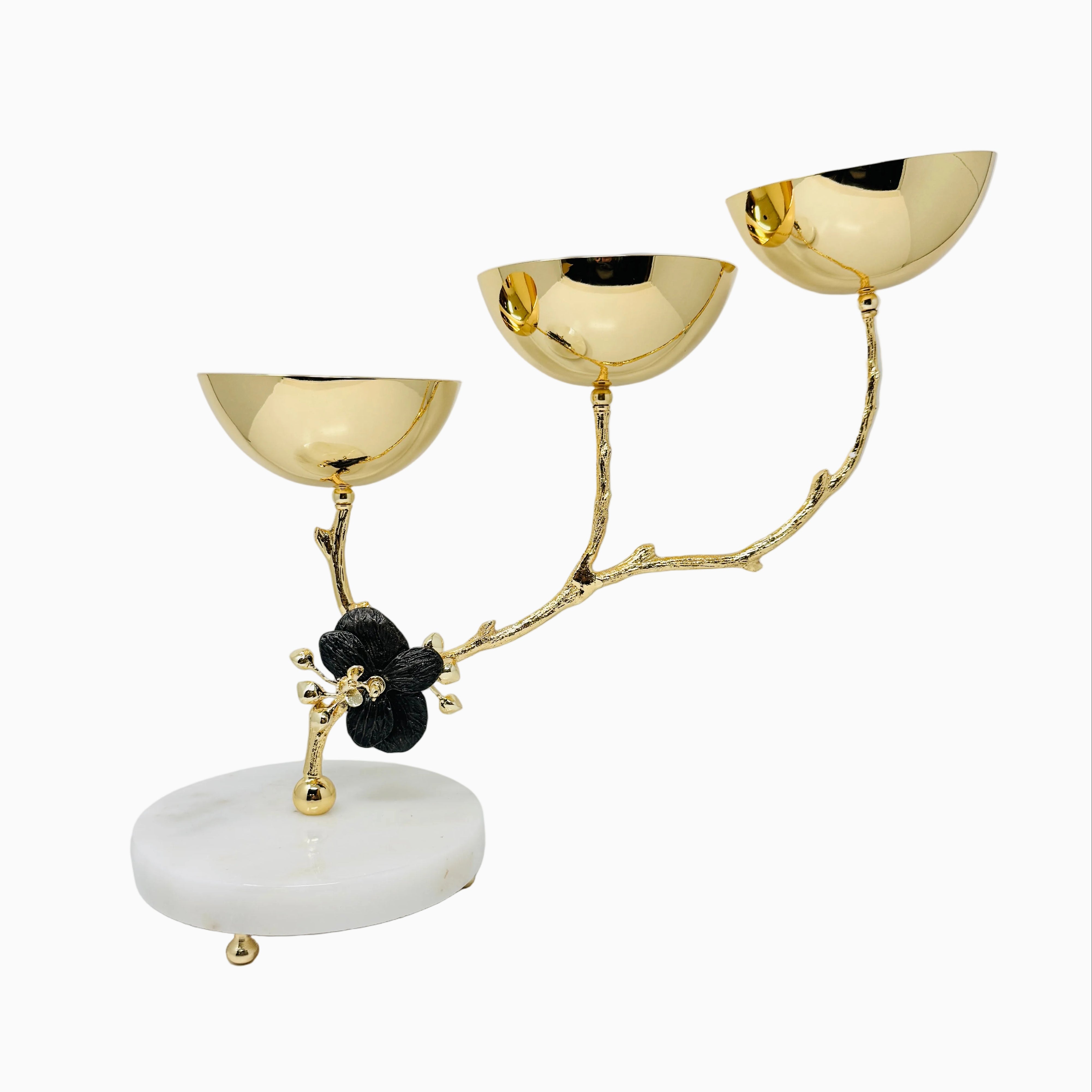 THREE SECTION GOLD TONE SNACK BOWL, ORCHID COLLECTION