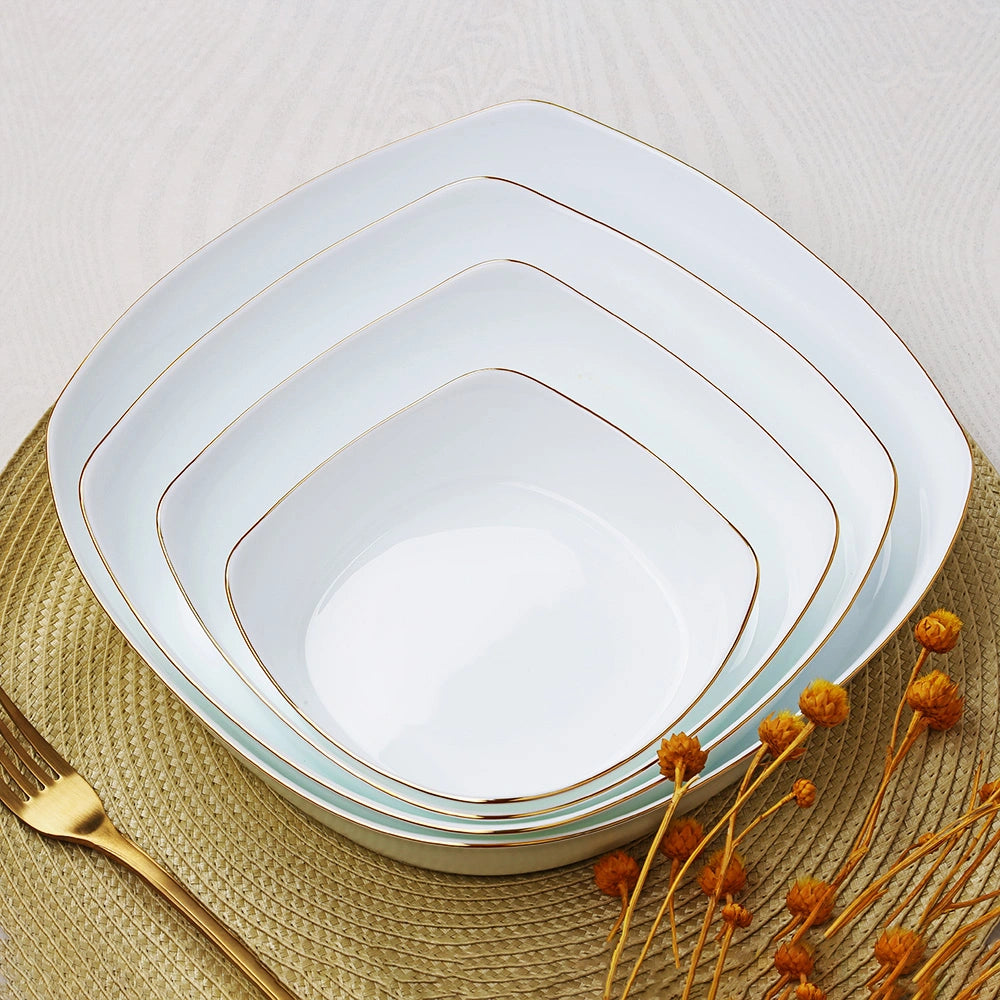 With four different sizes, this set is ideal for a wide range of uses, from serving a fresh salad at a dinner party to presenting appetizers, desserts, and fruits. The sleek square shape and minimalist design ensure they blend seamlessly with any decor style, adding a touch of elegance to both everyday meals and special occasions.