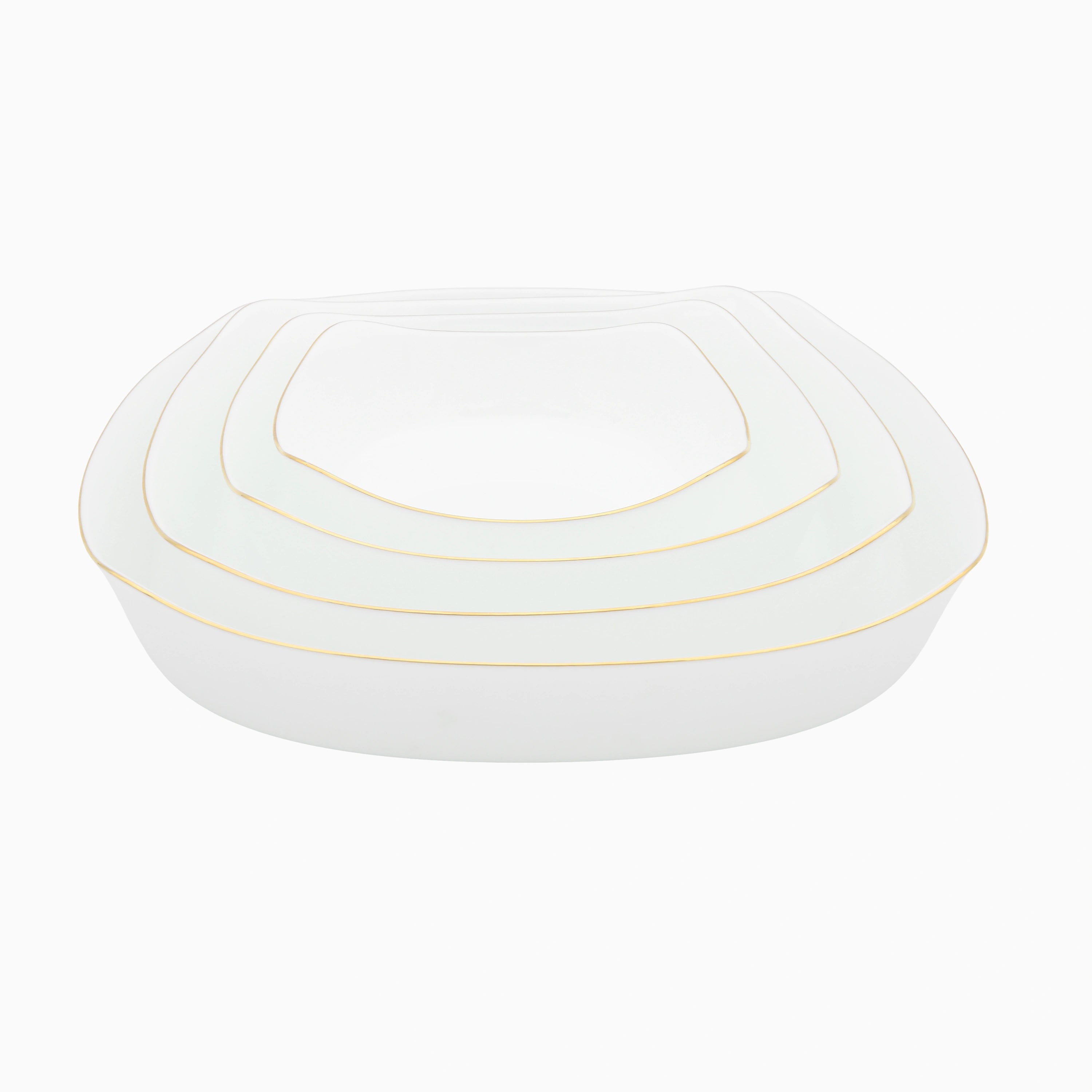4-Piece Gold-Rimmed Square Opal Glass Serving Set