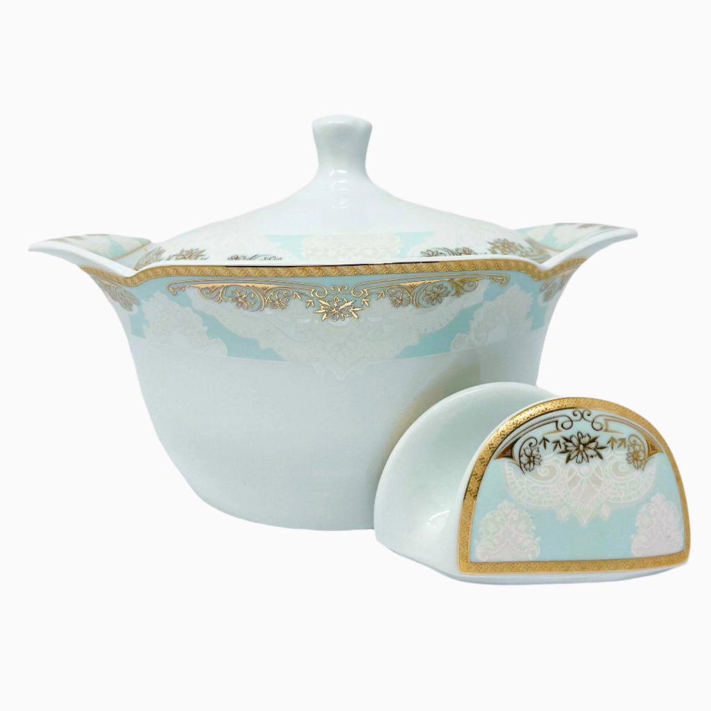 - Regal Elegance: The classic blue and gold accents elevate your dining experience to new heights.