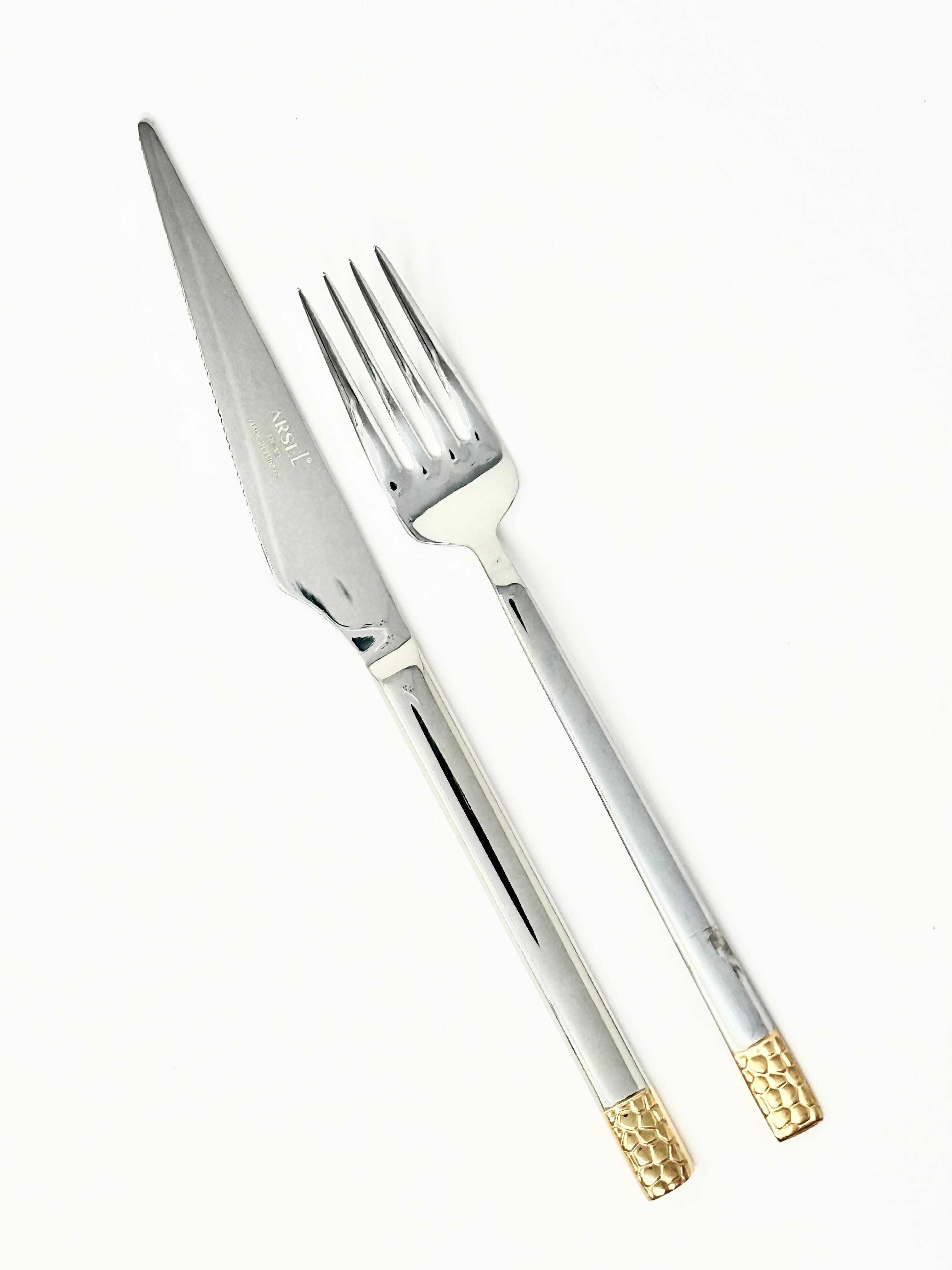 This refined 12 pcs dessert cutlery set is designed to bring elegance and harmony to your table. perfect for 6 people crafted with attention to detail, each knife and fork offers a perfect balance of style and comfort. its sleek silhouette and polished finish make it ideal for serving cakes, pastries, and sweet treats with sophistication.