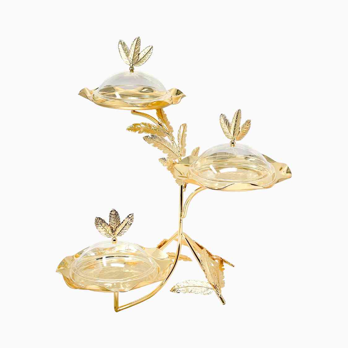 3-SERVING PLATES STAND WITH LID, FEATHER LEAF COLLECTION