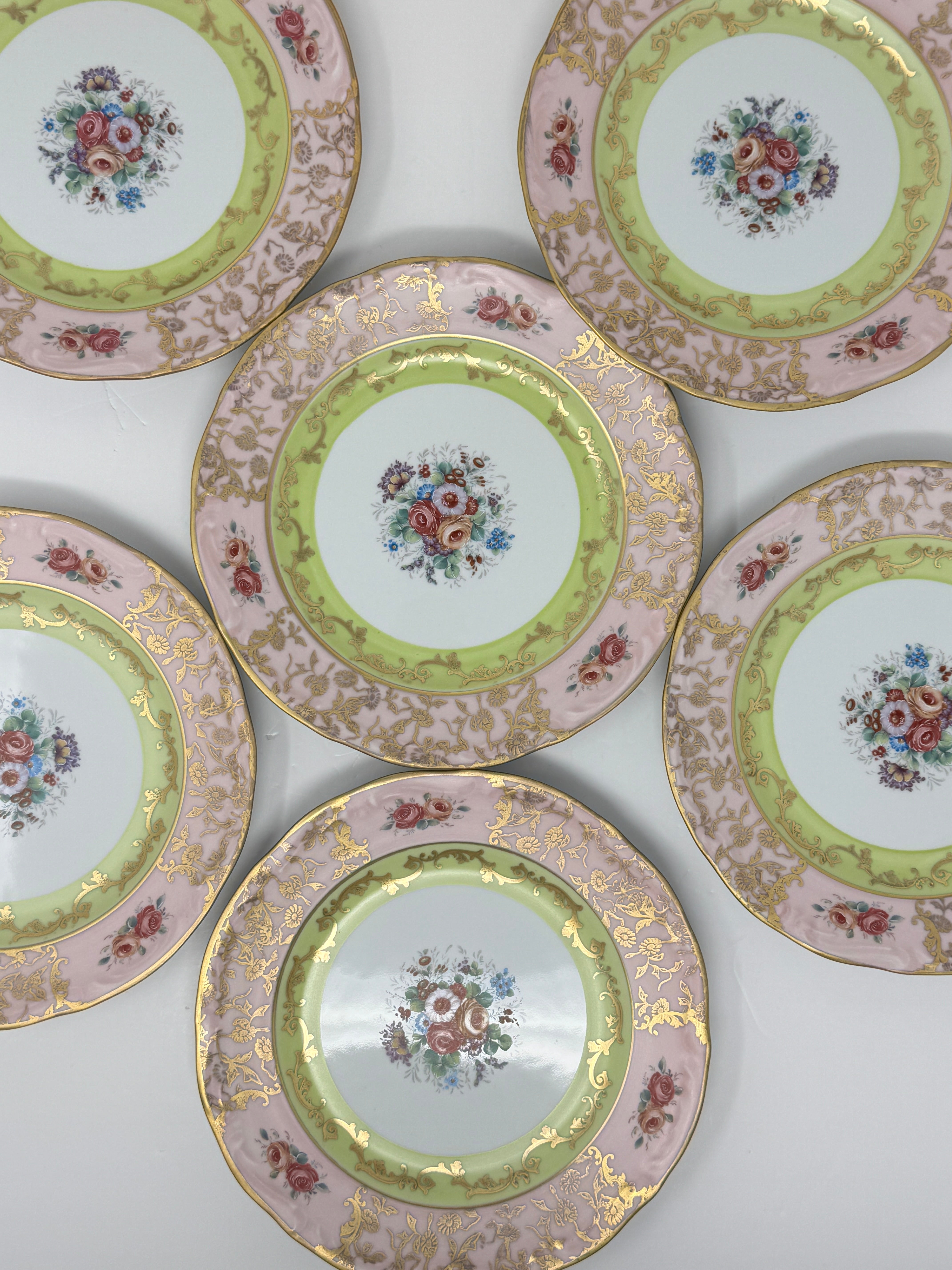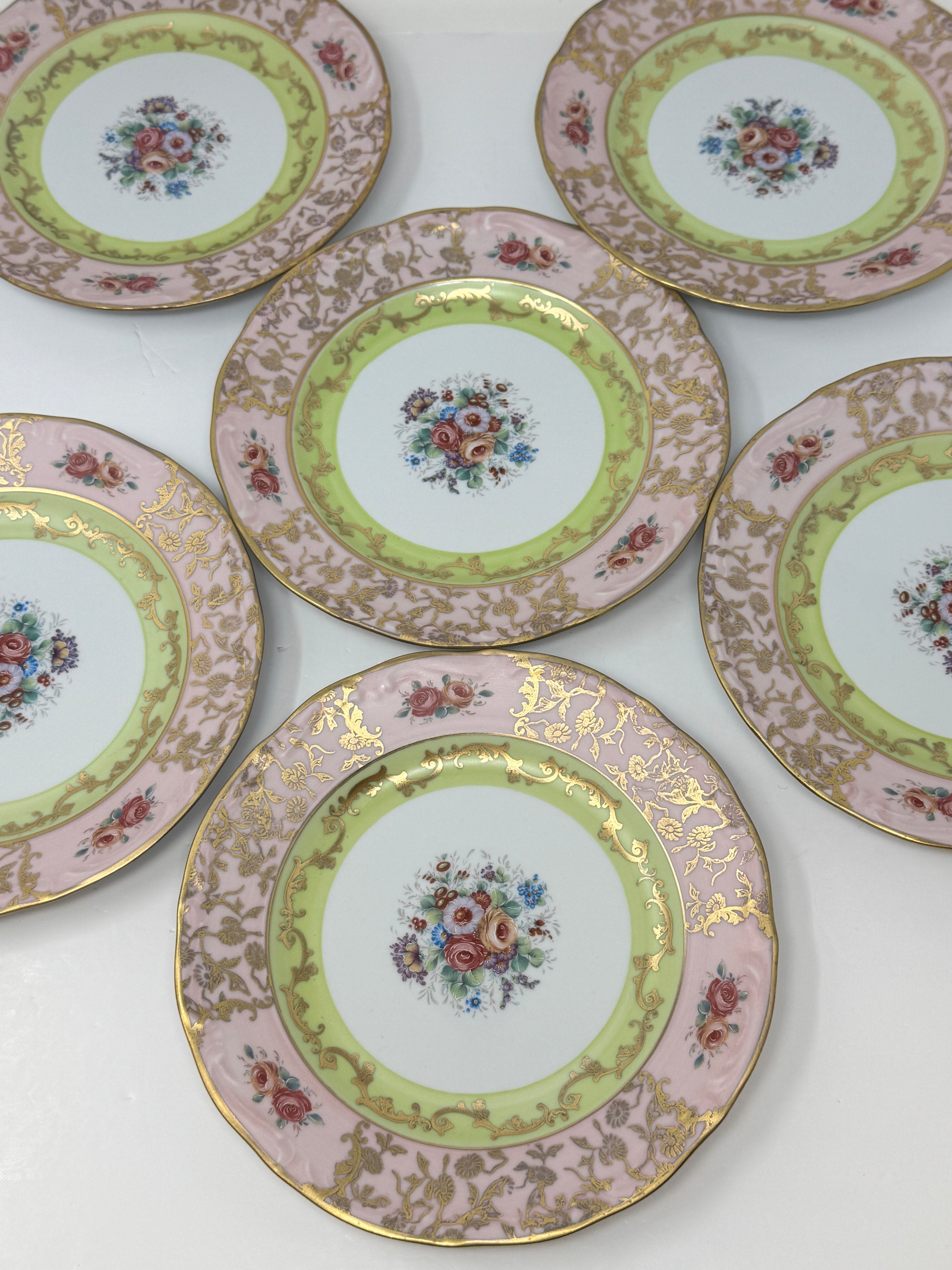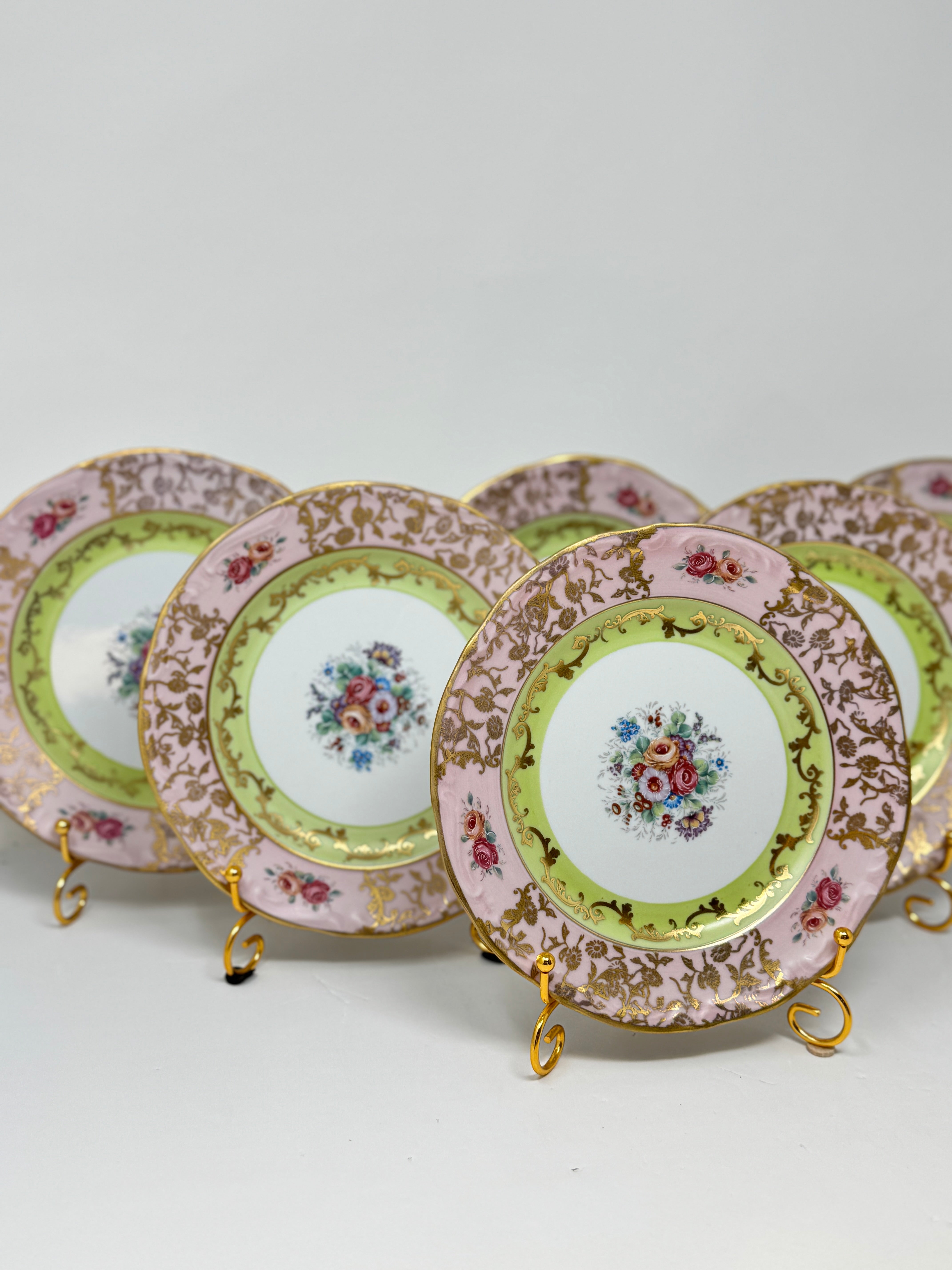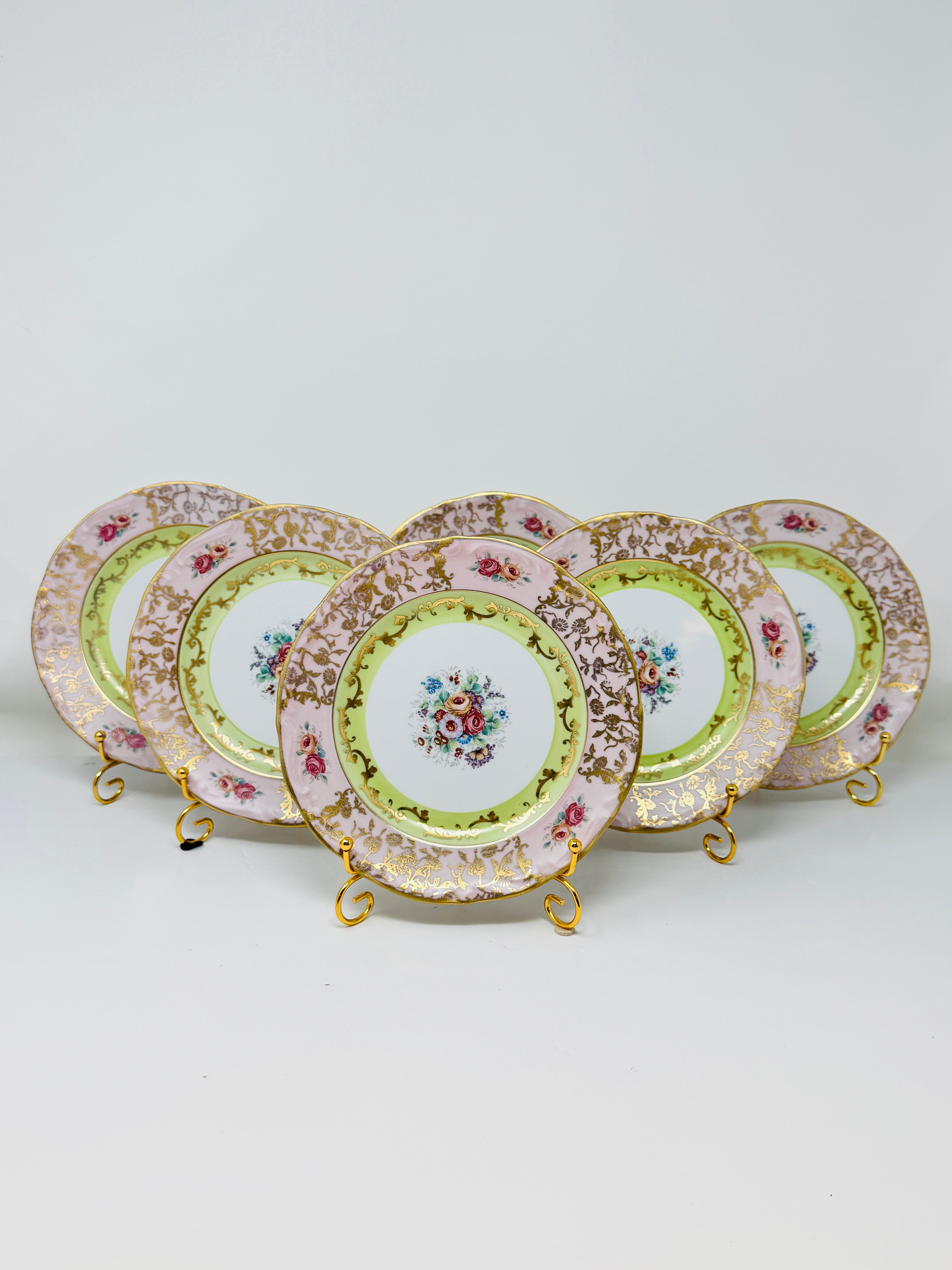 6 PCS ITALIAN APPLE GREEN AND PINK DESSERT PLATE SET