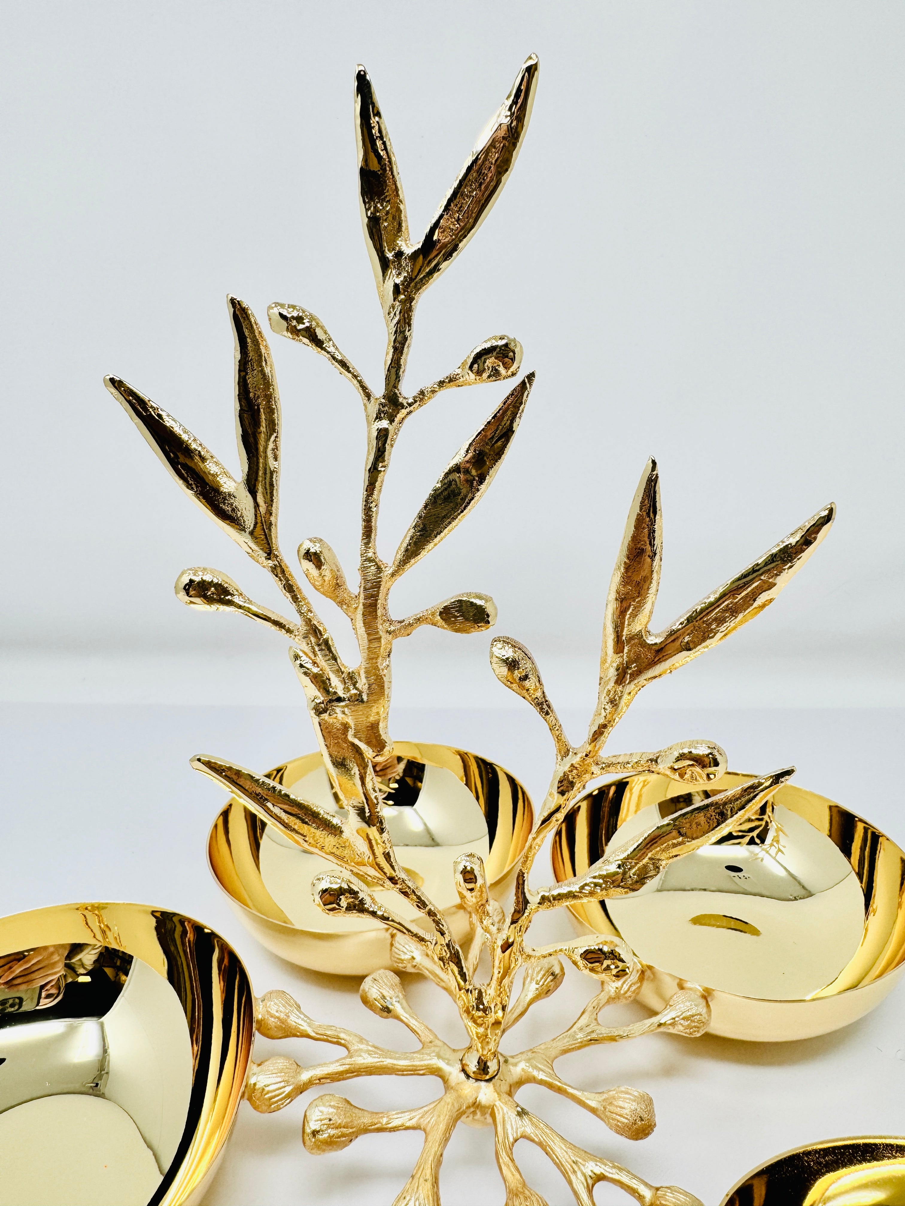 With its modern design, this five section snack bowl makes the perfect addition to any dinner party, ceremony or event. Accented with a Olive leaf, this piece is made to meet the needs of every guest. While some may prefer salty, others sweet or a combination of both, this five-section bowl provides enough space to leave all guests feeling full, happy and satisfied. This piece can also be used to decorate your kitchen counter, or serve as a key or jewelry holder.