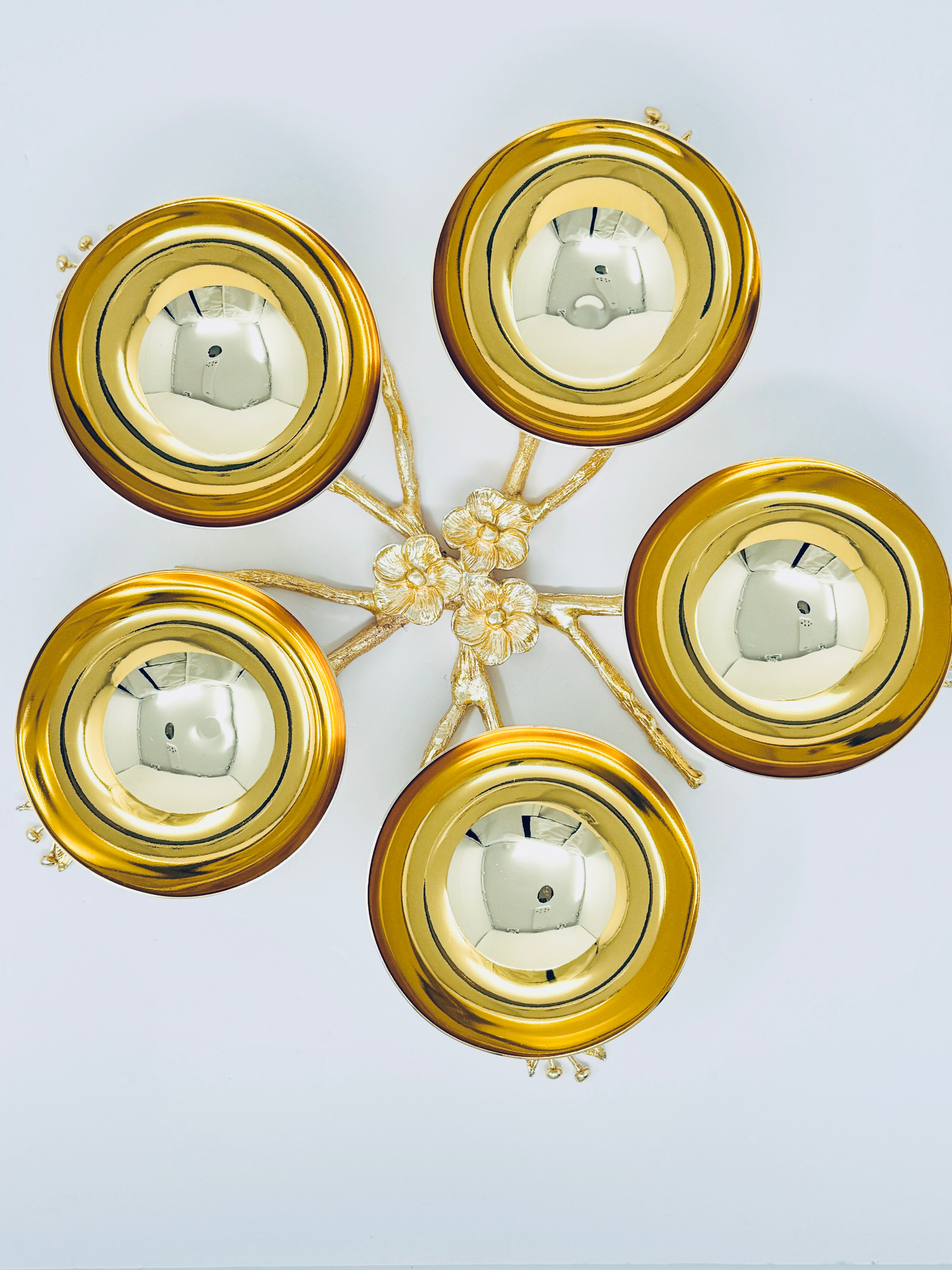 FIVE SECTION GOLD TONE SNACK BOWL