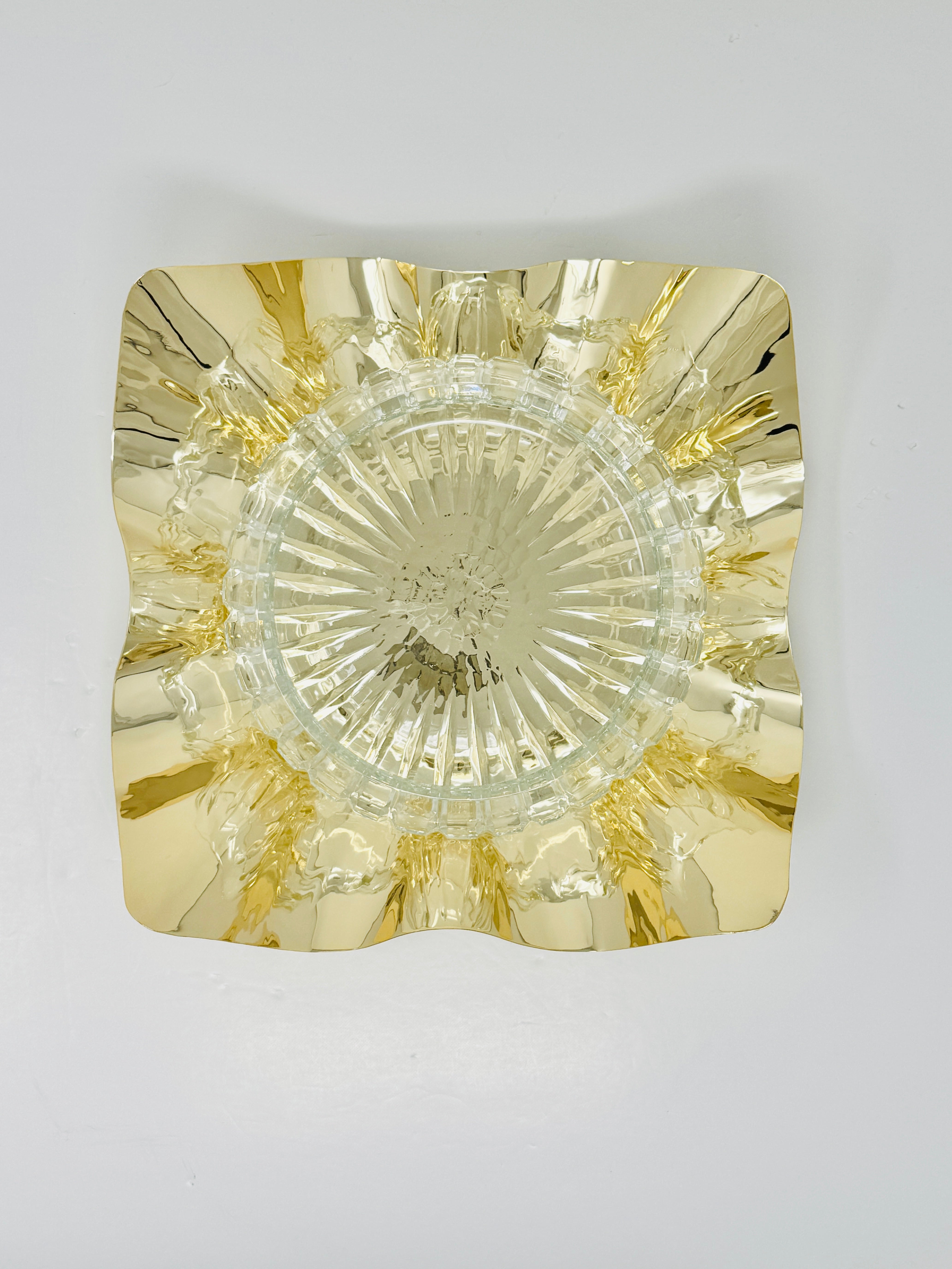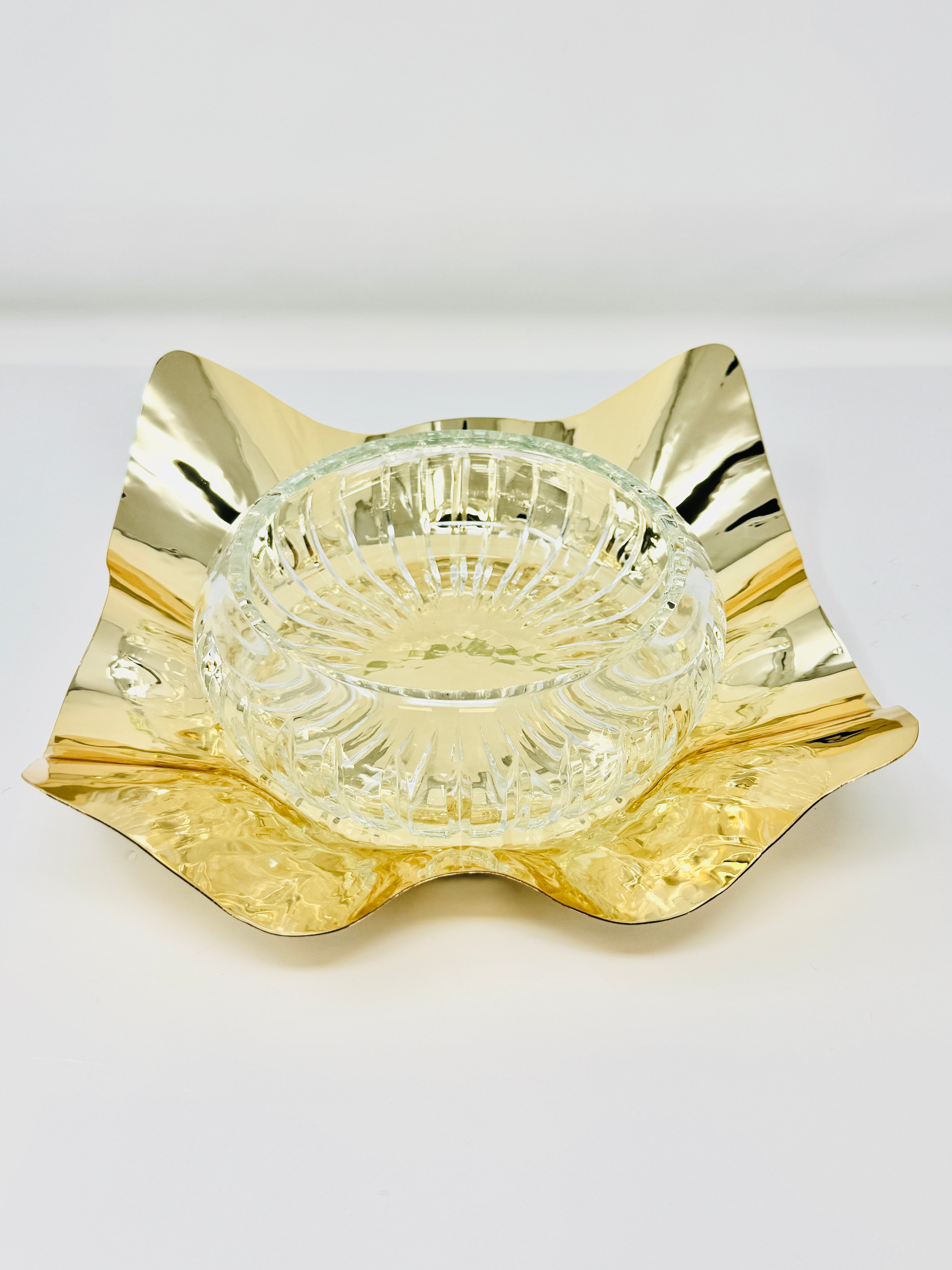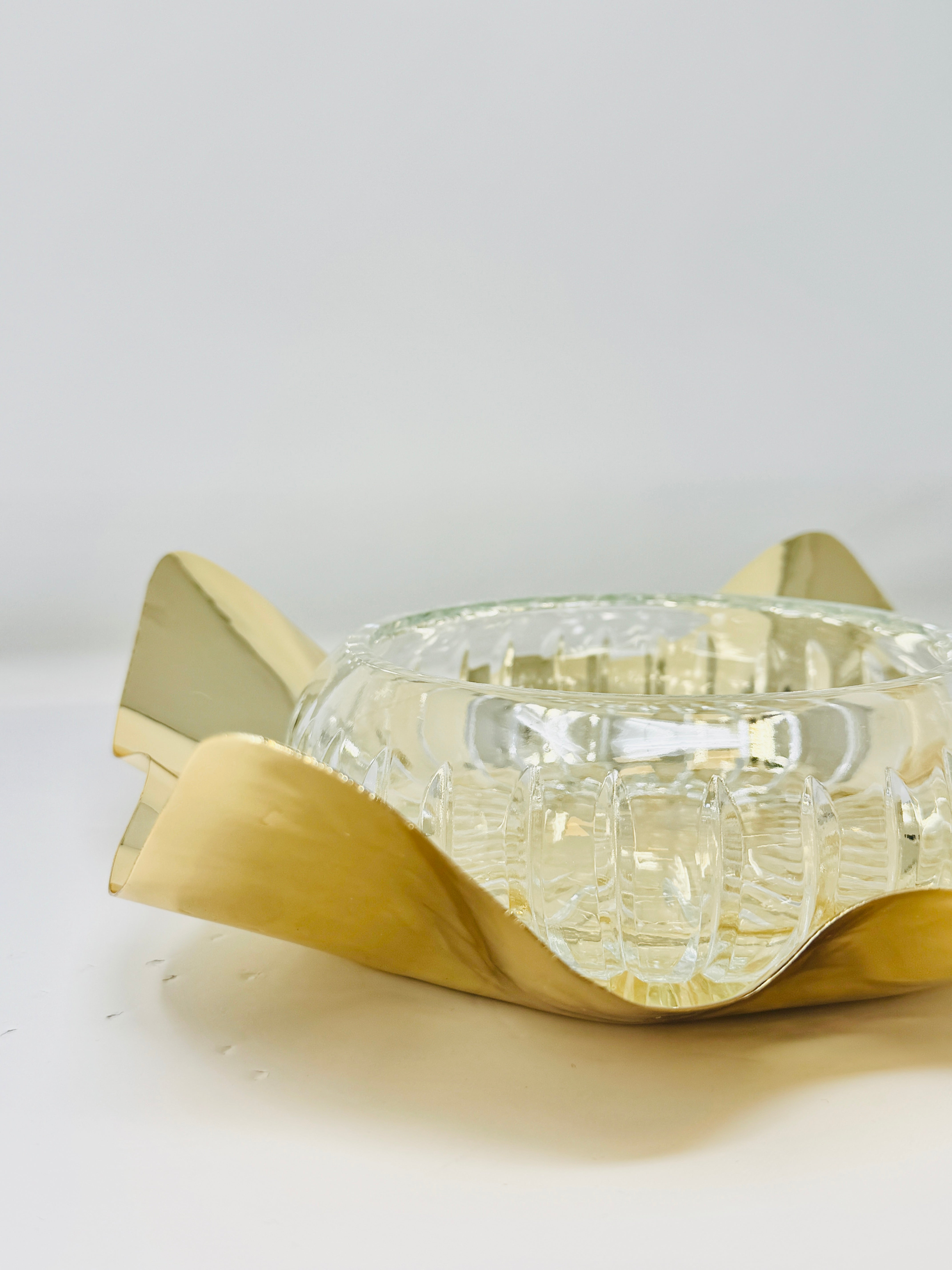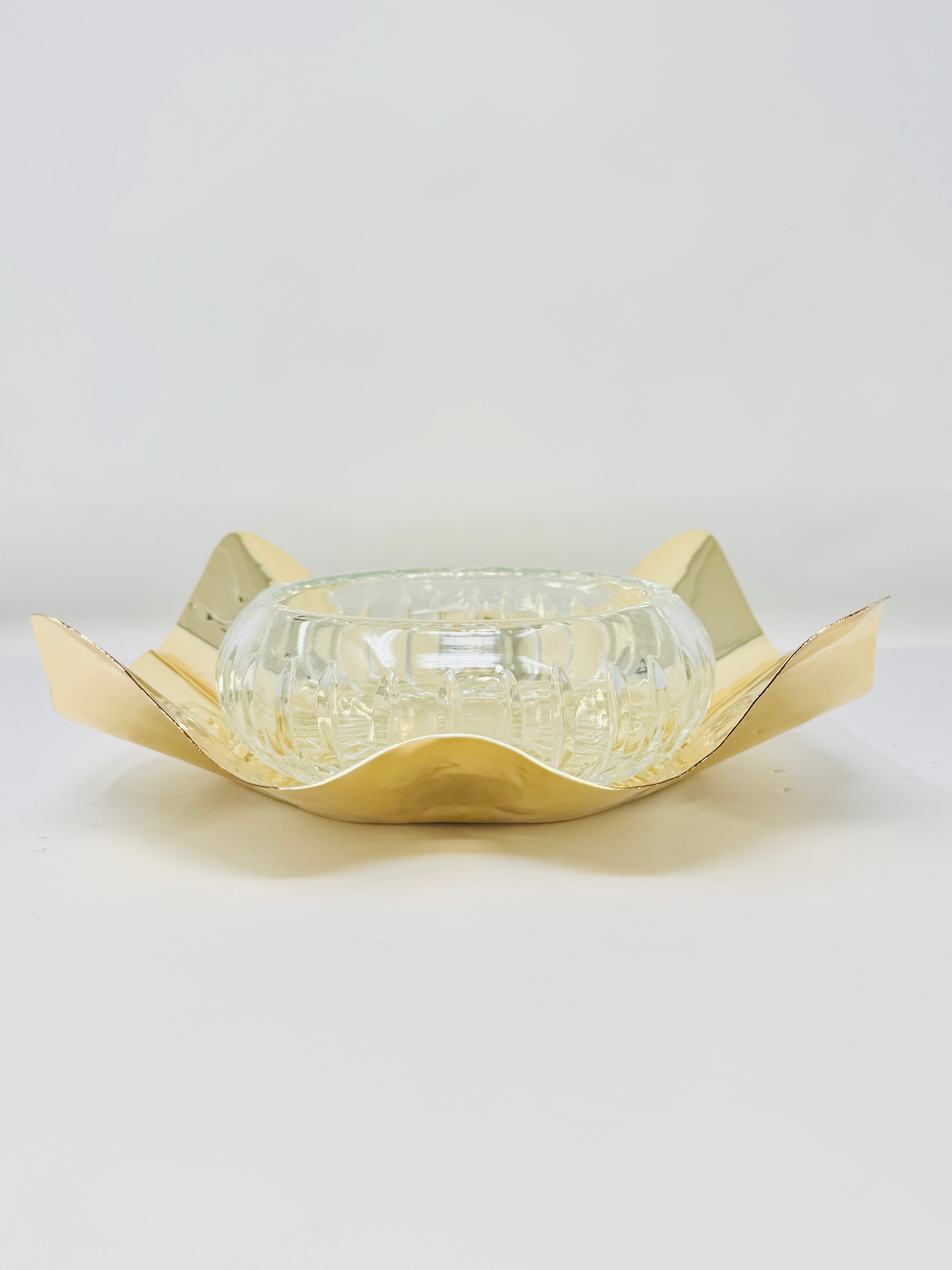 GLASS FRUIT BOWL ON GOLDEN TONE STAND