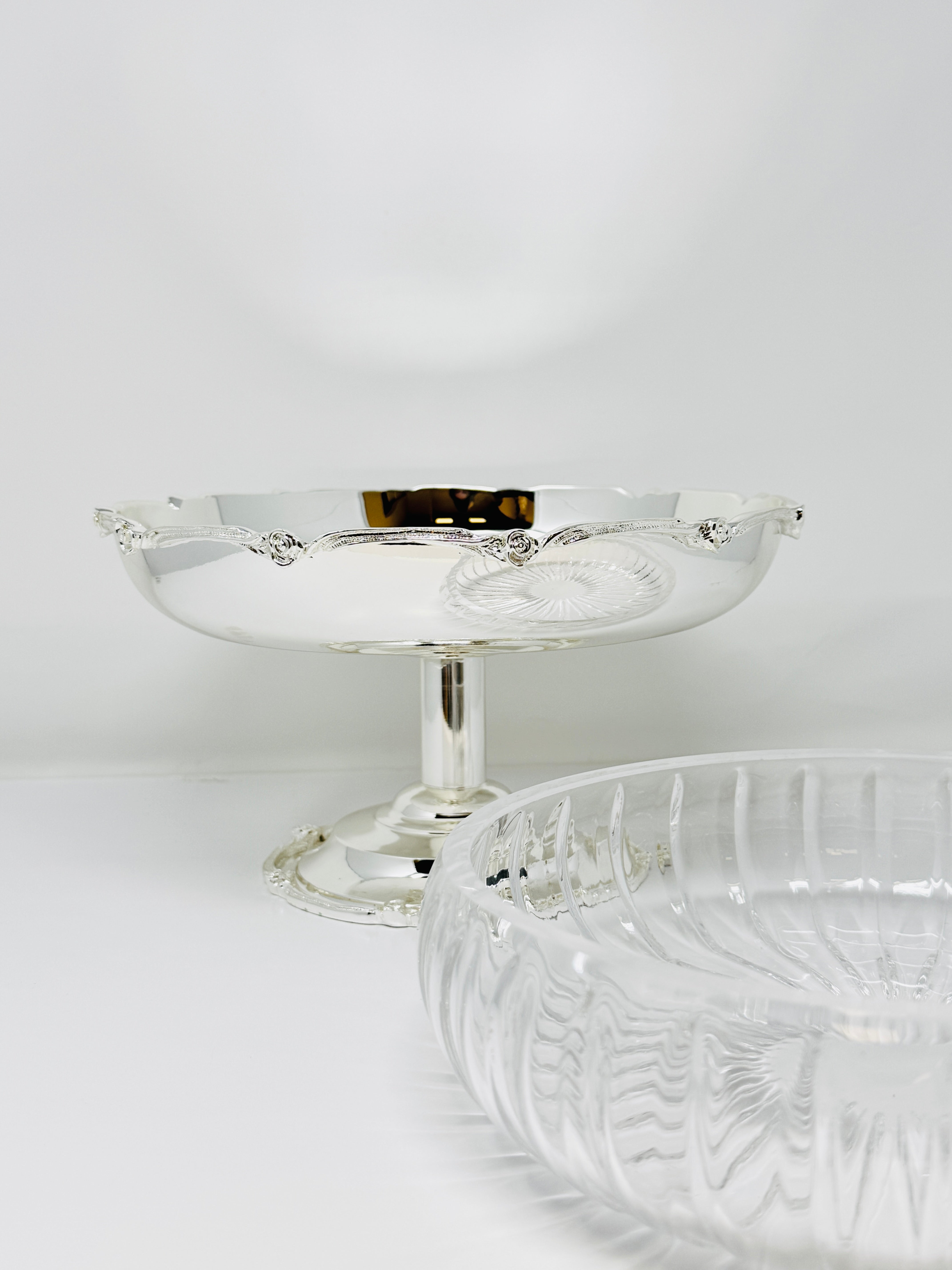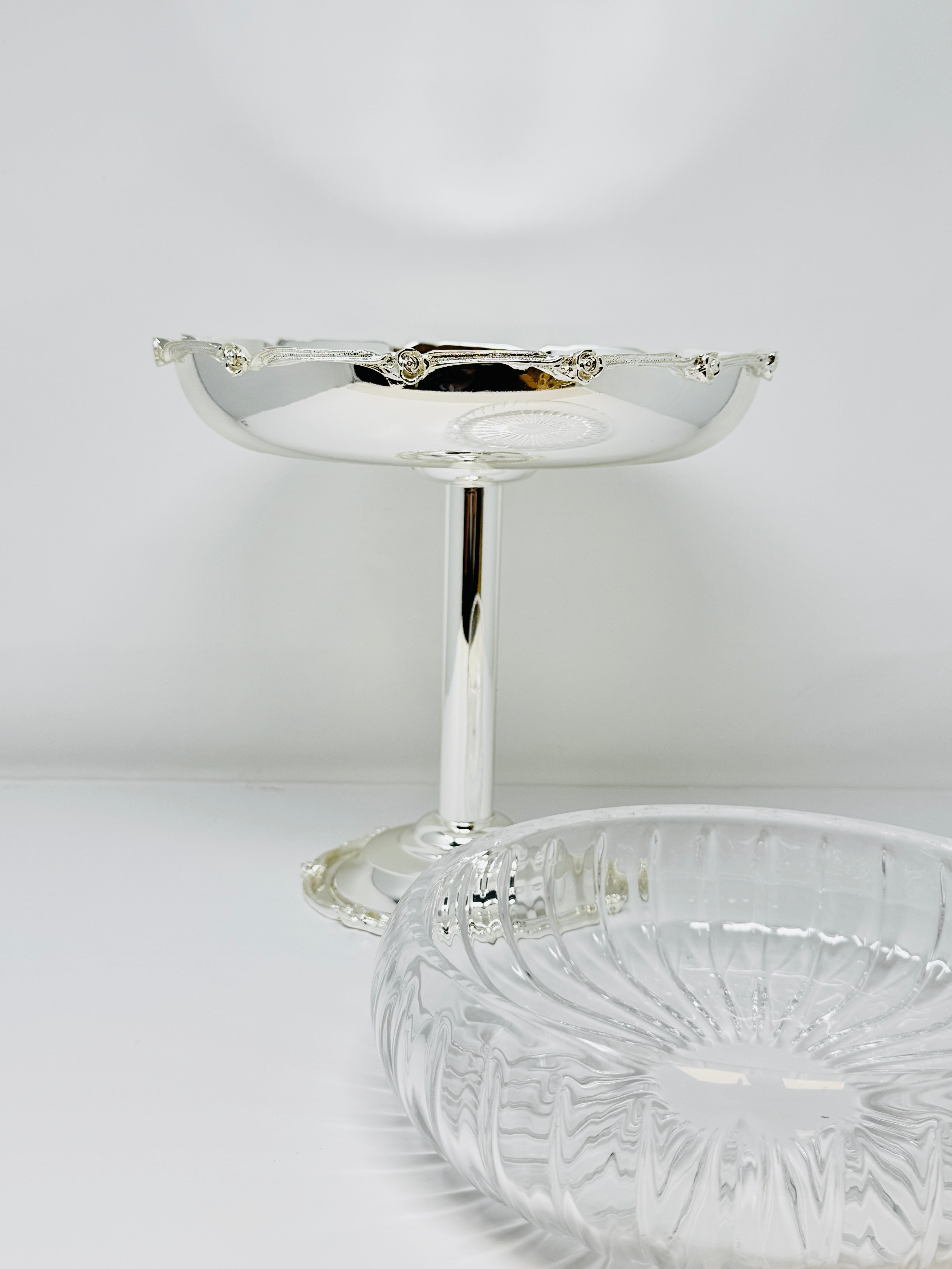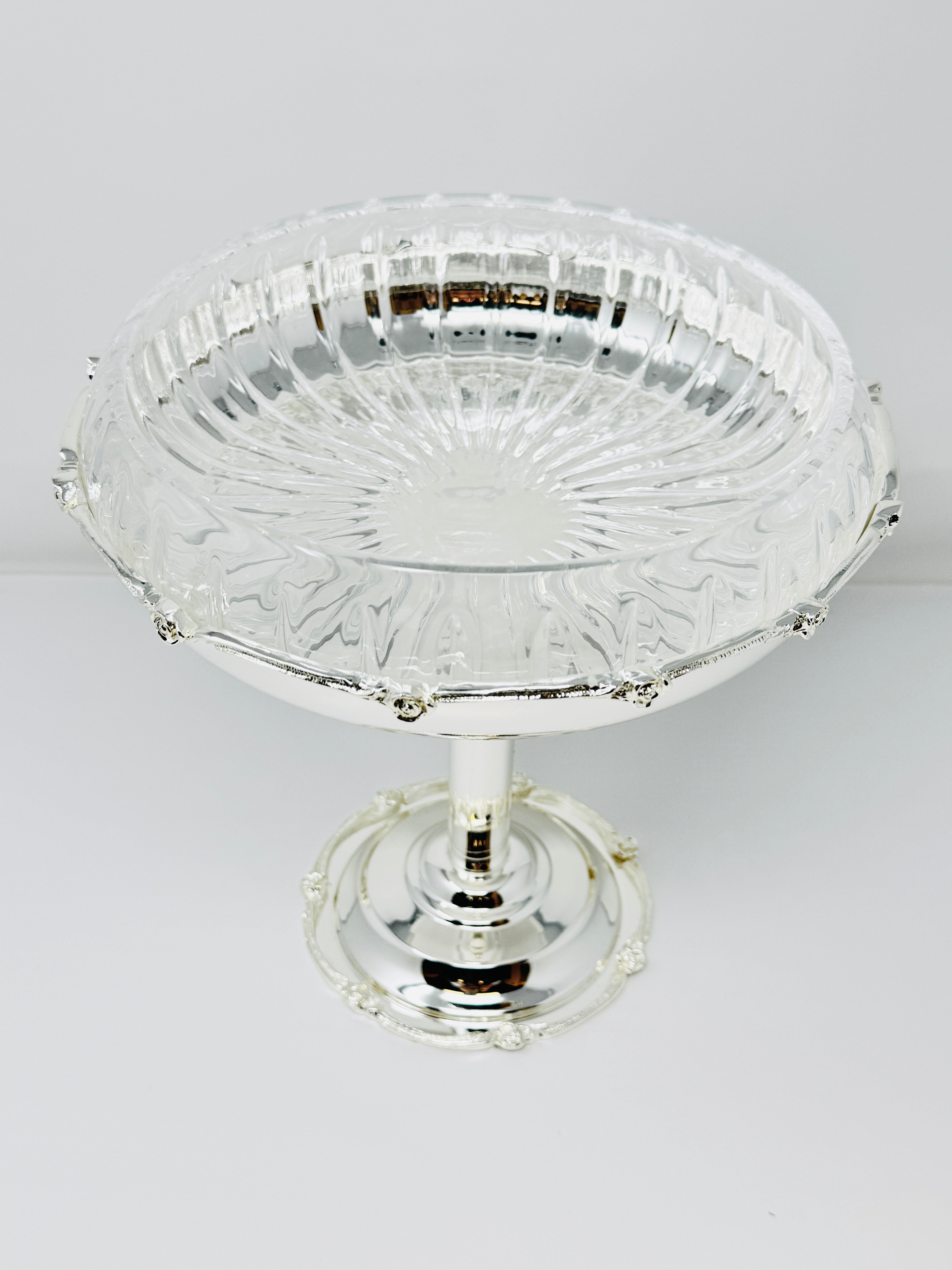 This beautifully crafted Silver Tone Snack bowl on Foot is a perfect way to serve sweets, Fruits and snacks. This piece is also a great addition to any kitchen counter or dining room table. Fill it with fruit or potpourri for an elegant look.