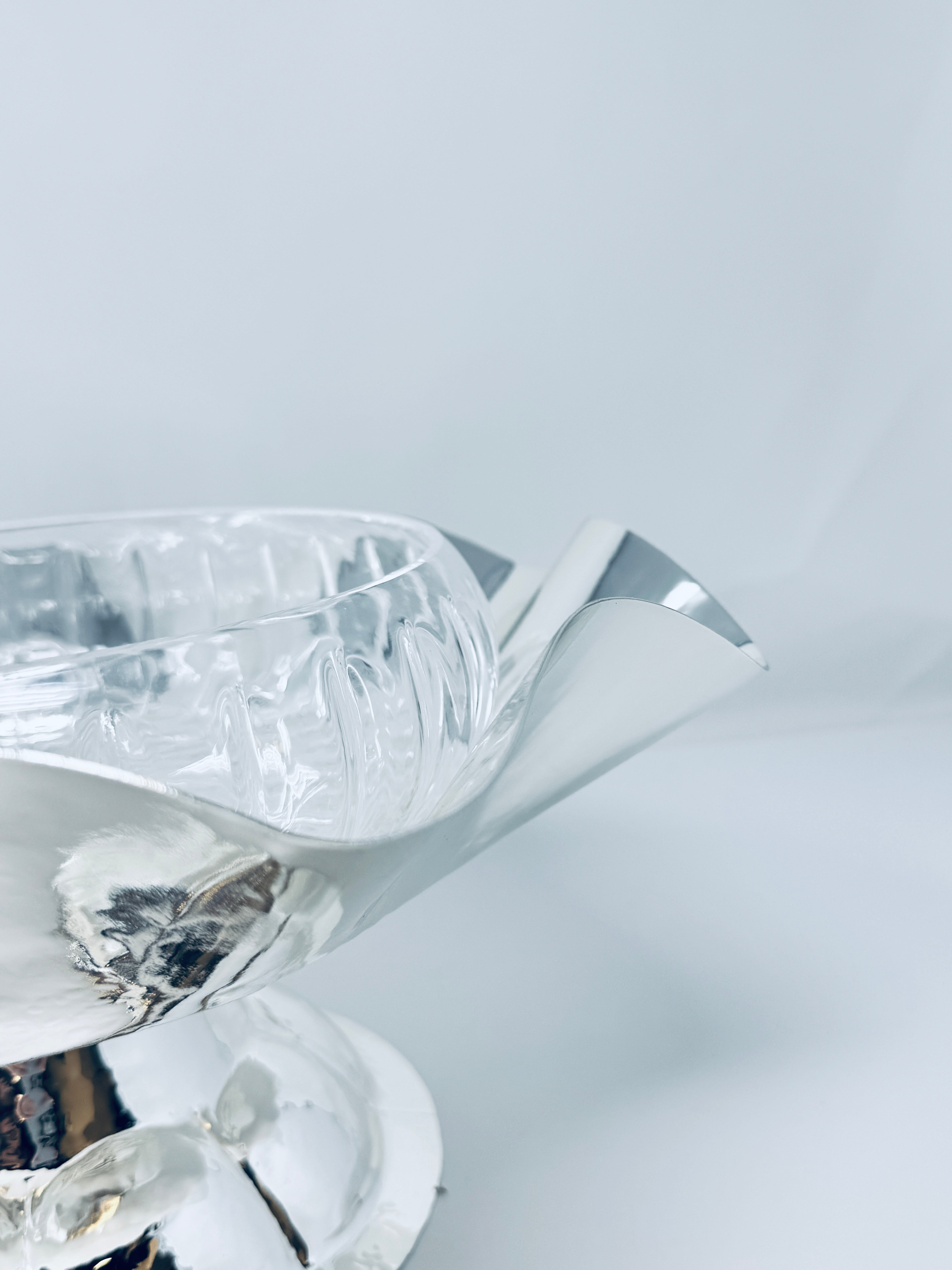 GLASS FRUIT BOWL ON SILVER TONE STAND