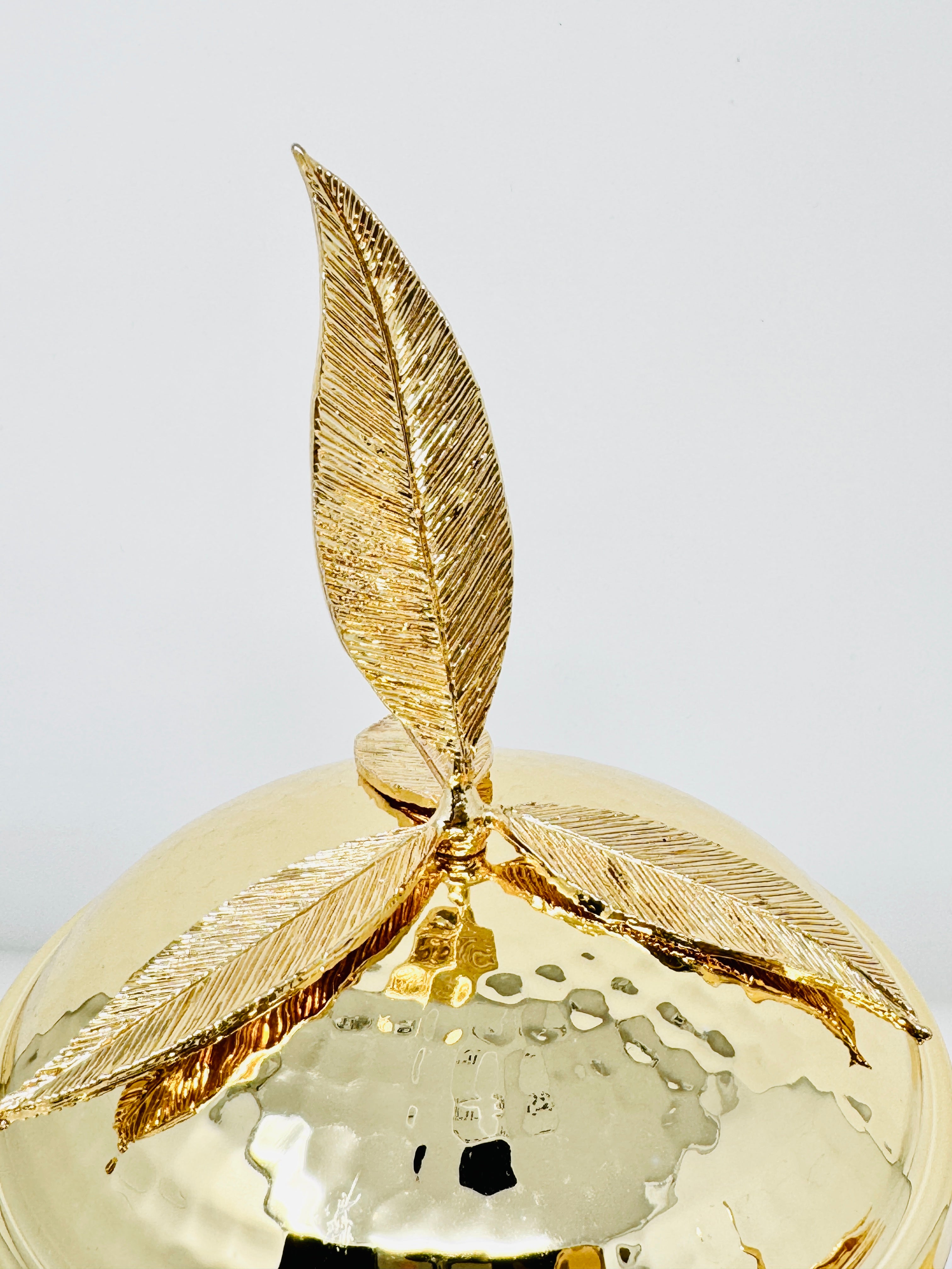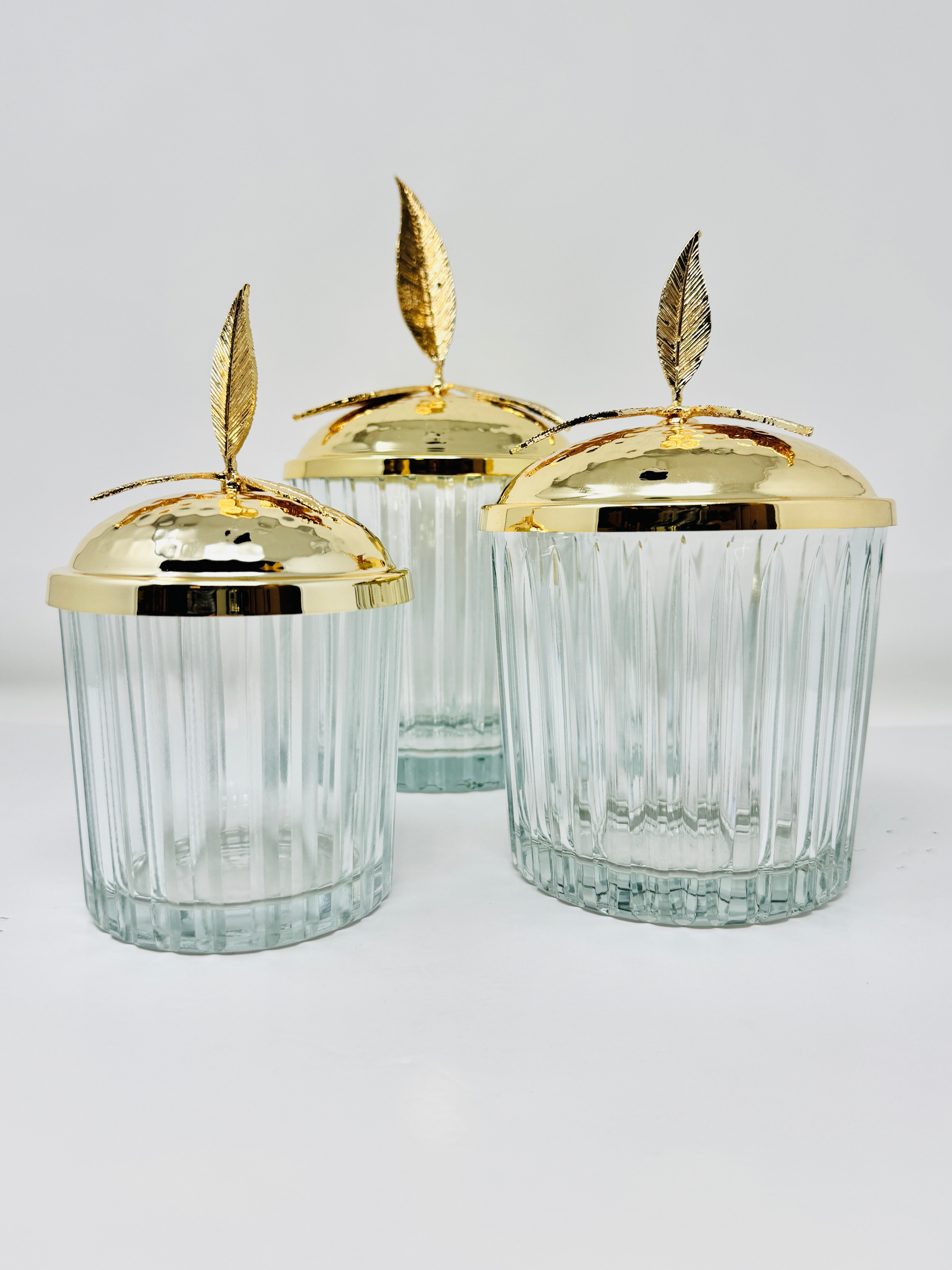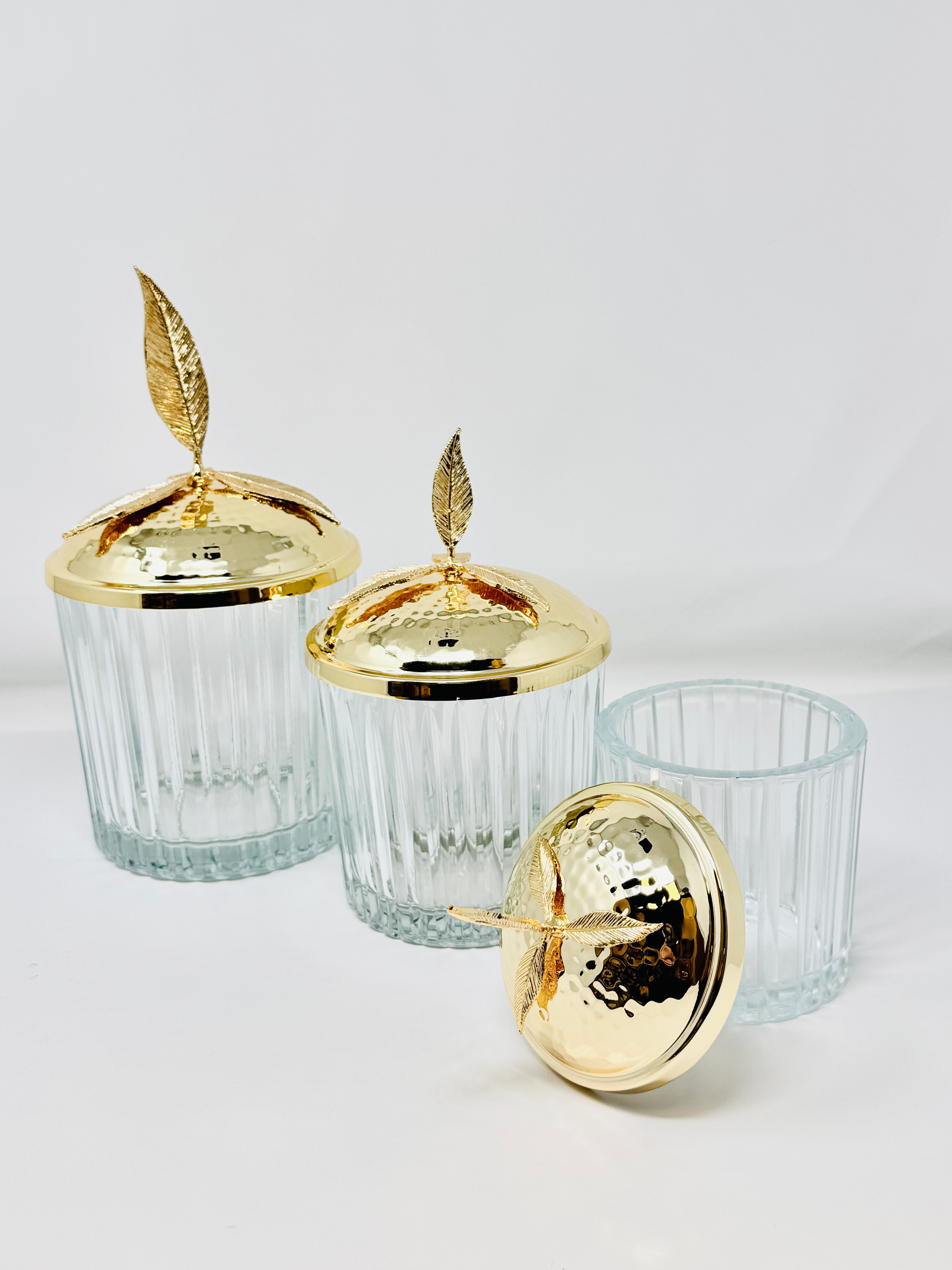 GOLDEN TONE GLASS JAR SET WITH LID, LEAF COLLECTION