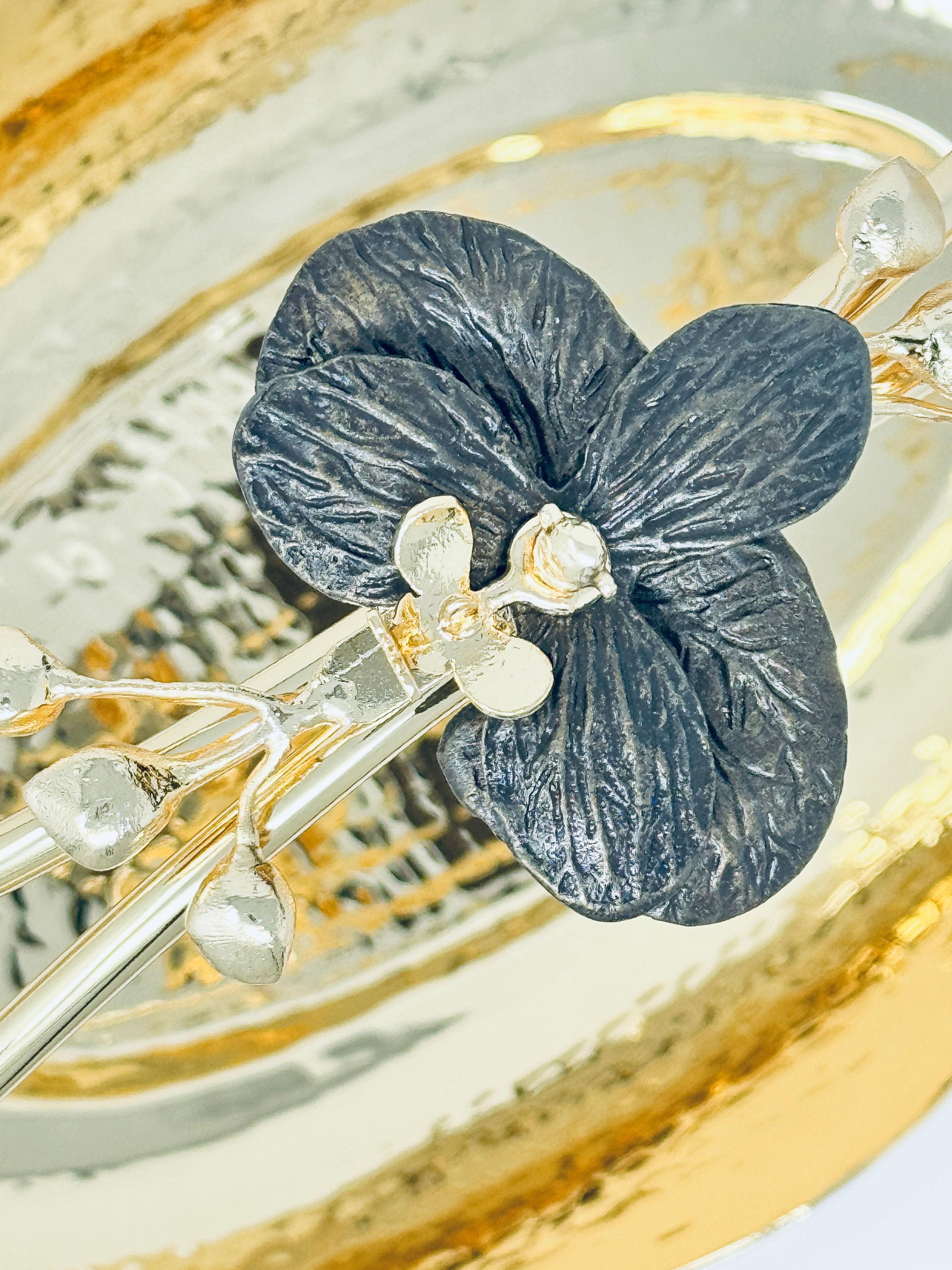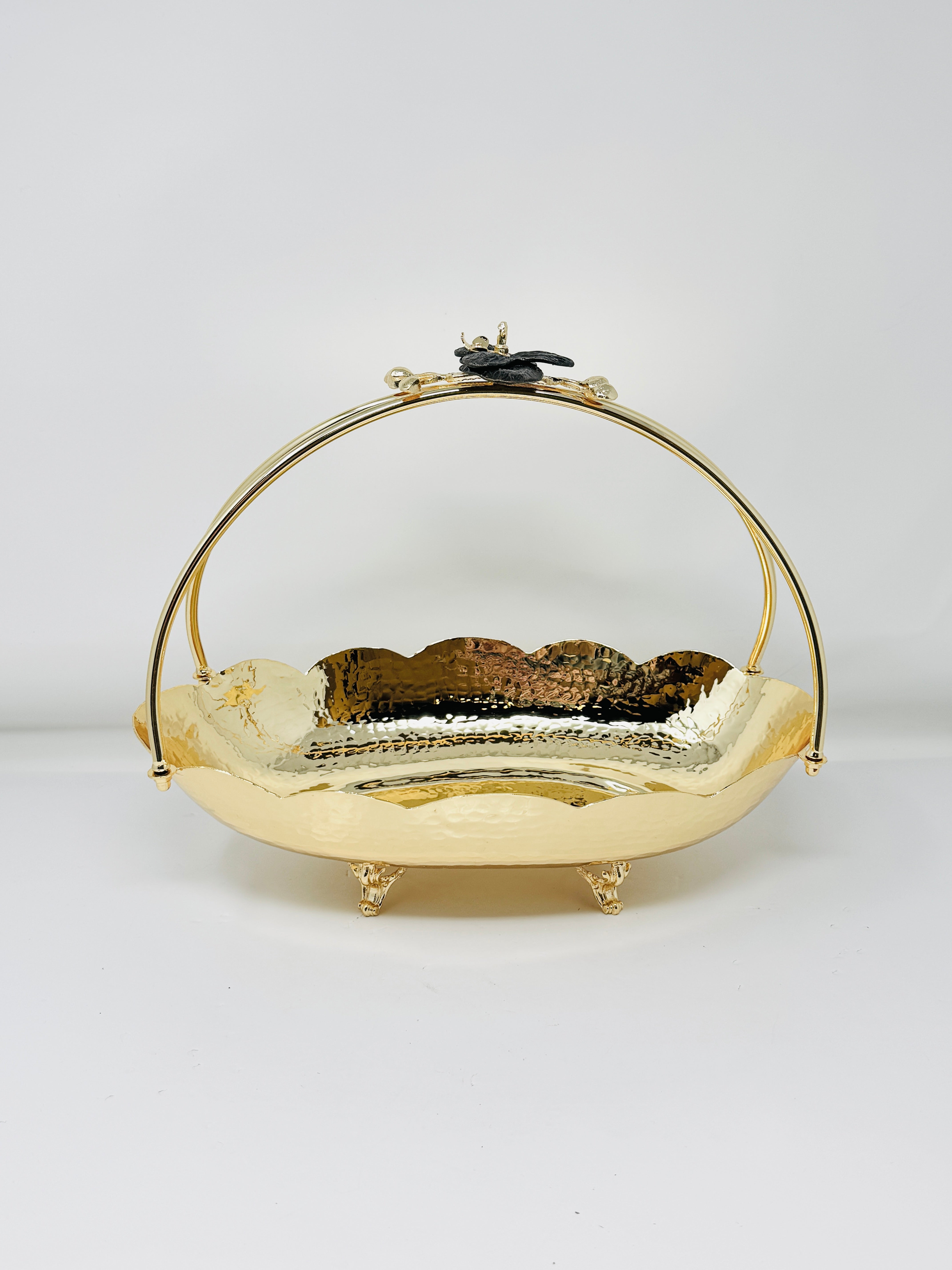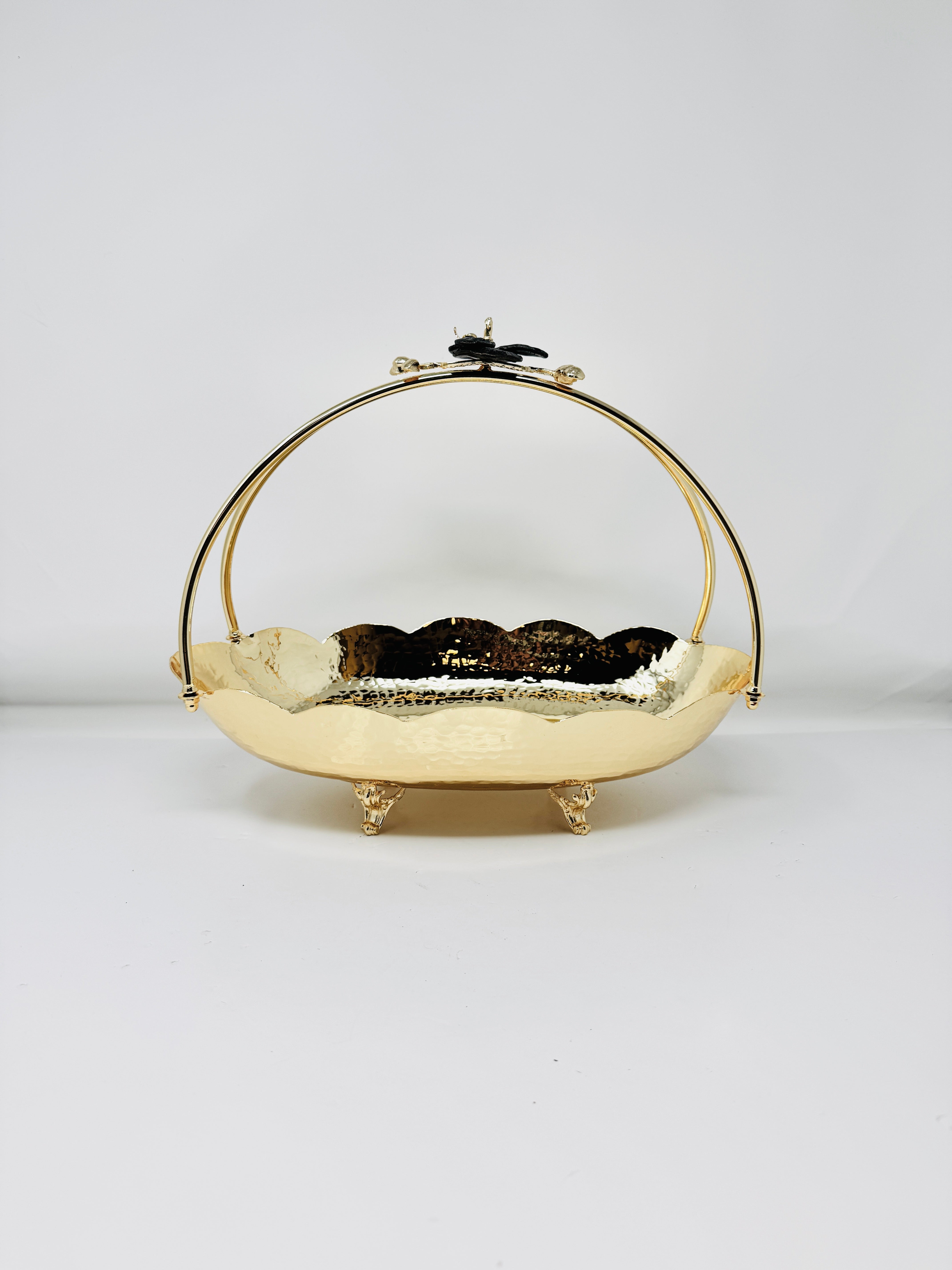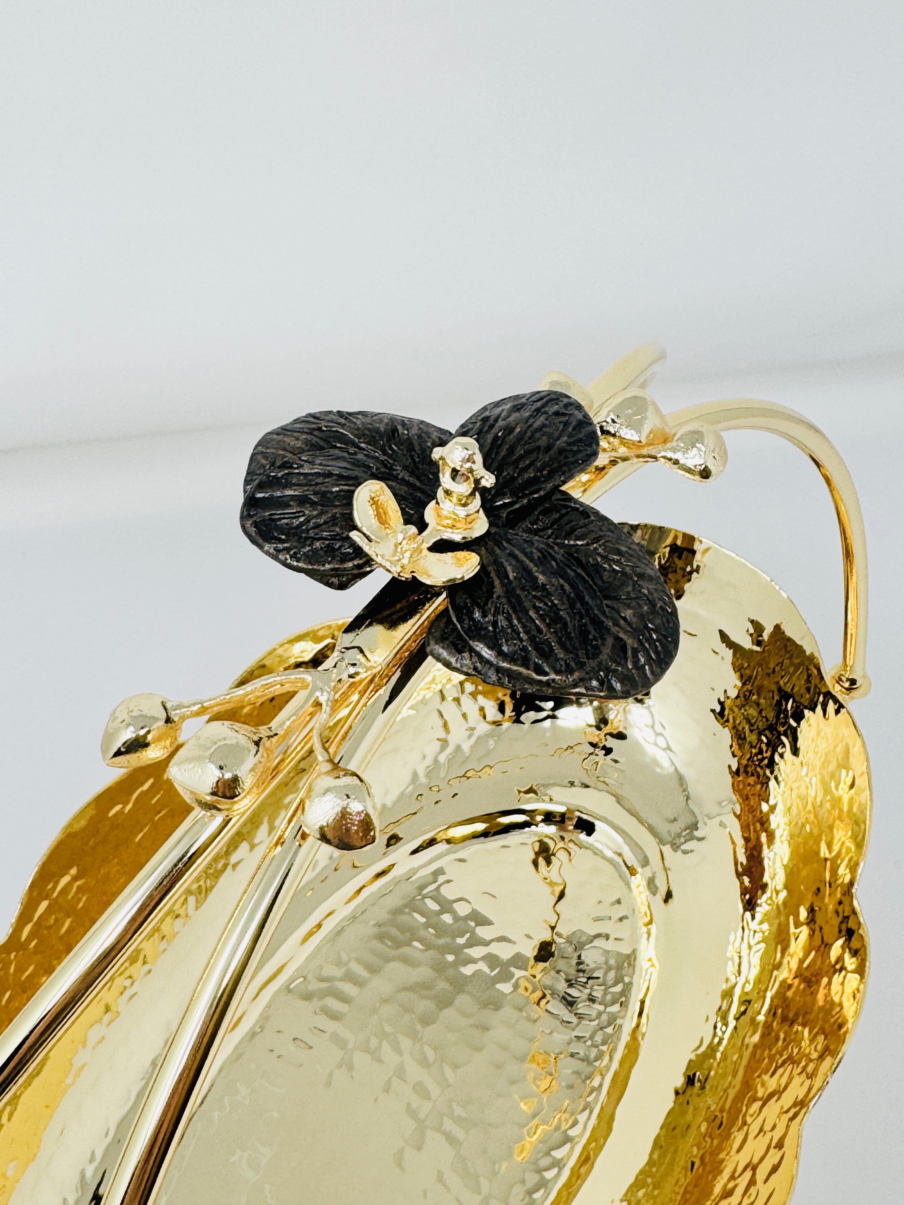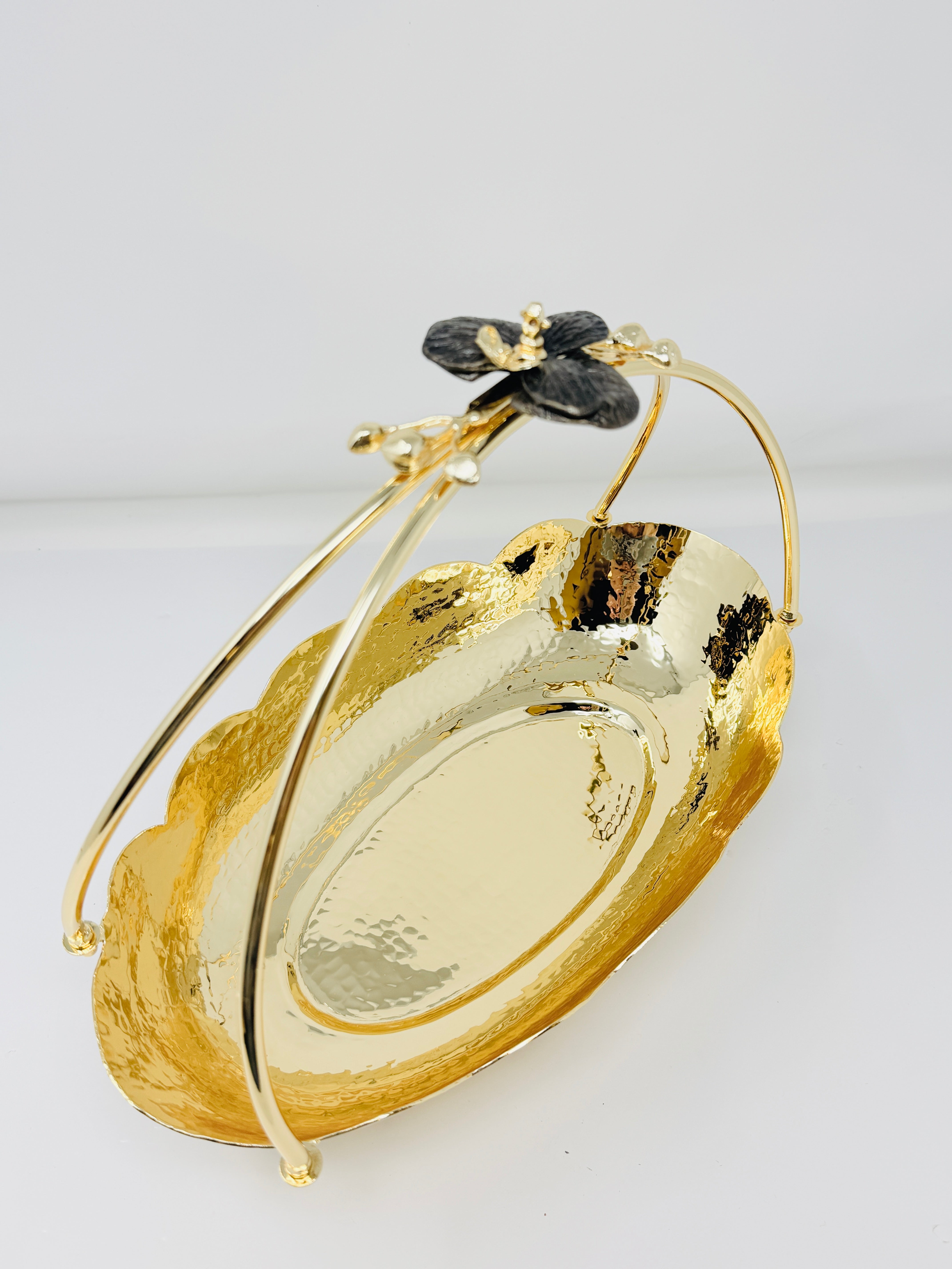 GOLDEN TONED SERVING SNACK PLATE WITH HANDLE, ORCHID COLLECTION