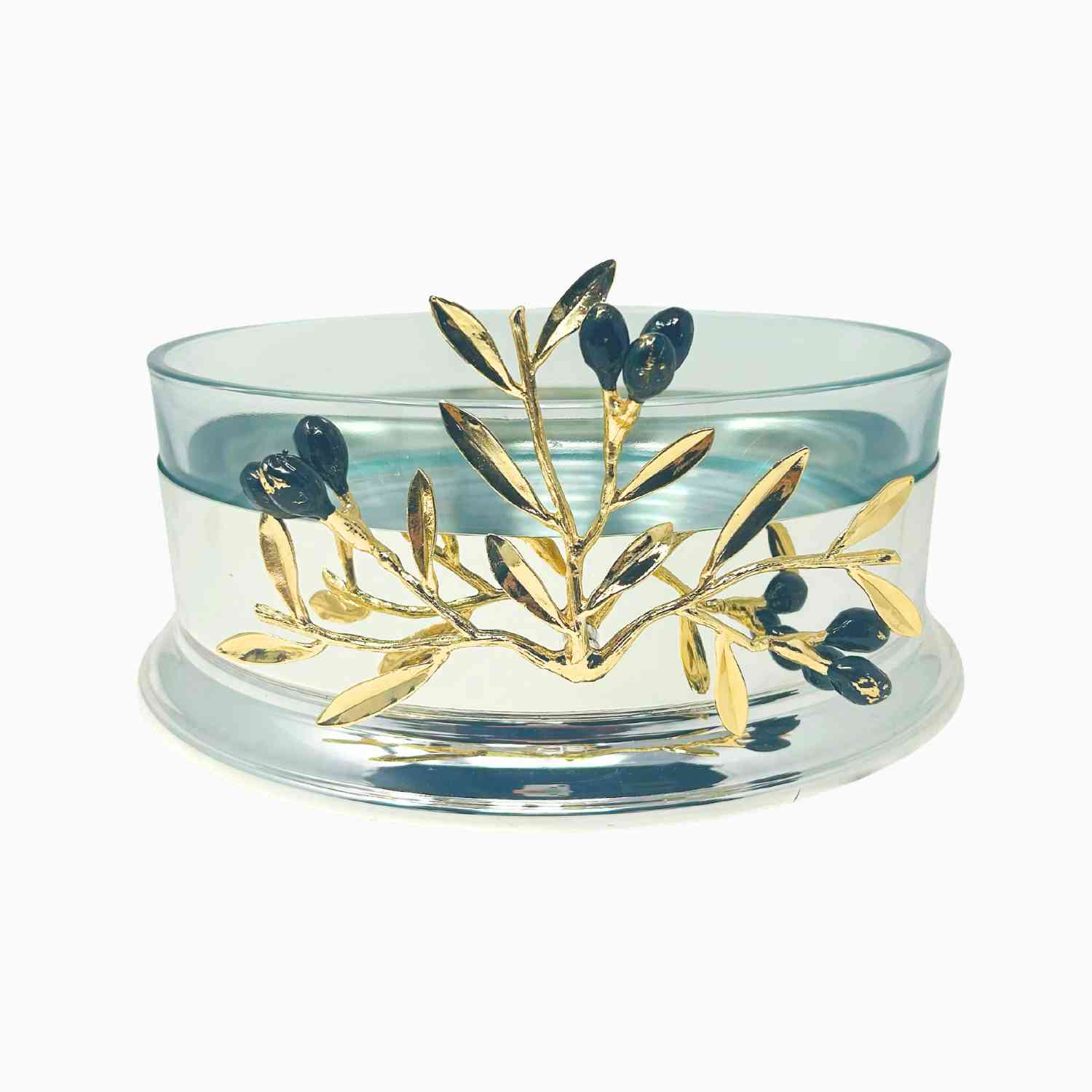 Crafted with attention to detail, this beautiful Glass Serving Bowl accented with an Olive Branch is the perfect addition to any home. This item can be used to serve food or treats to guests, or simply as a decorative piece. Fill it with potpourri for an elegant look.