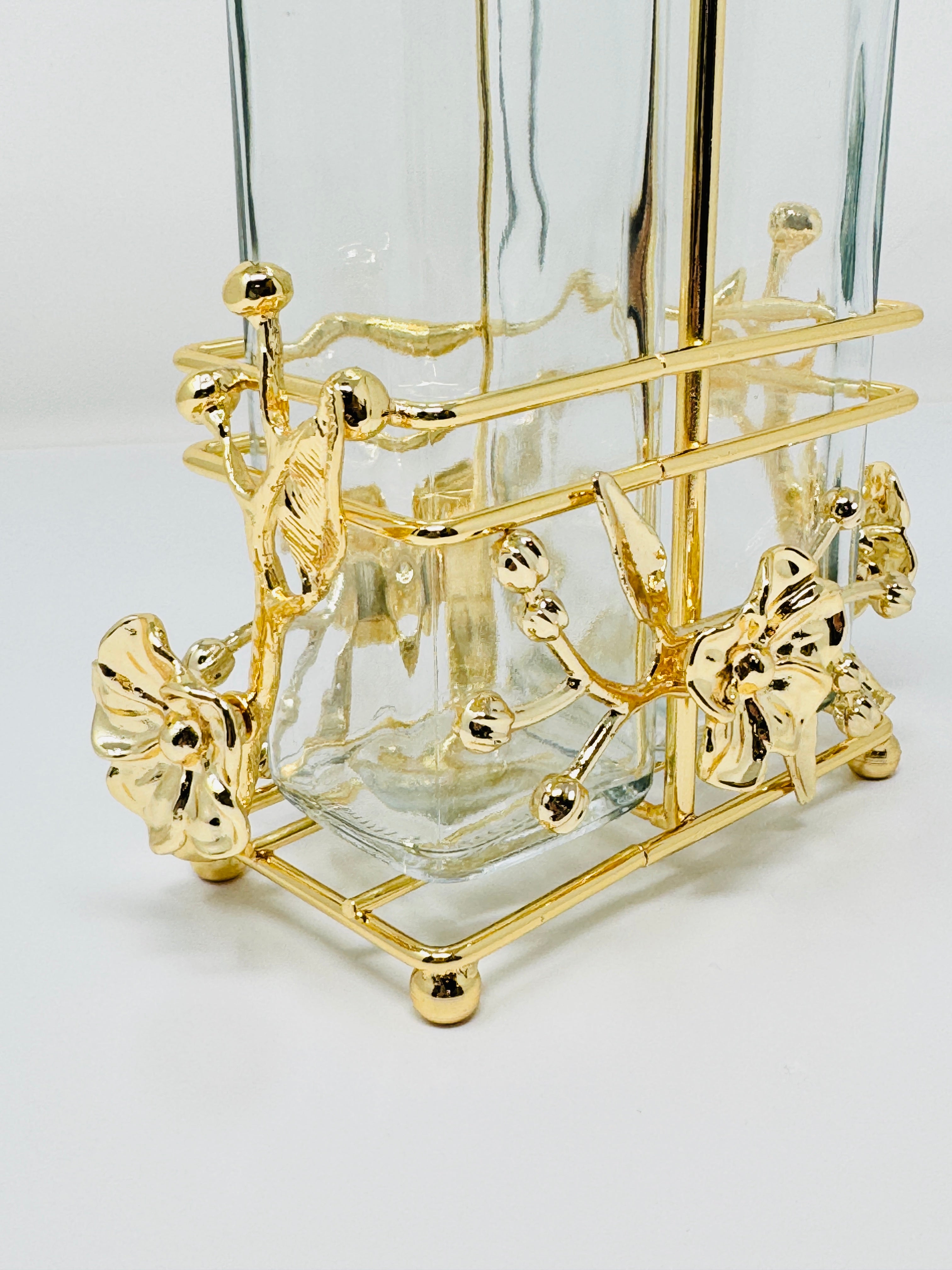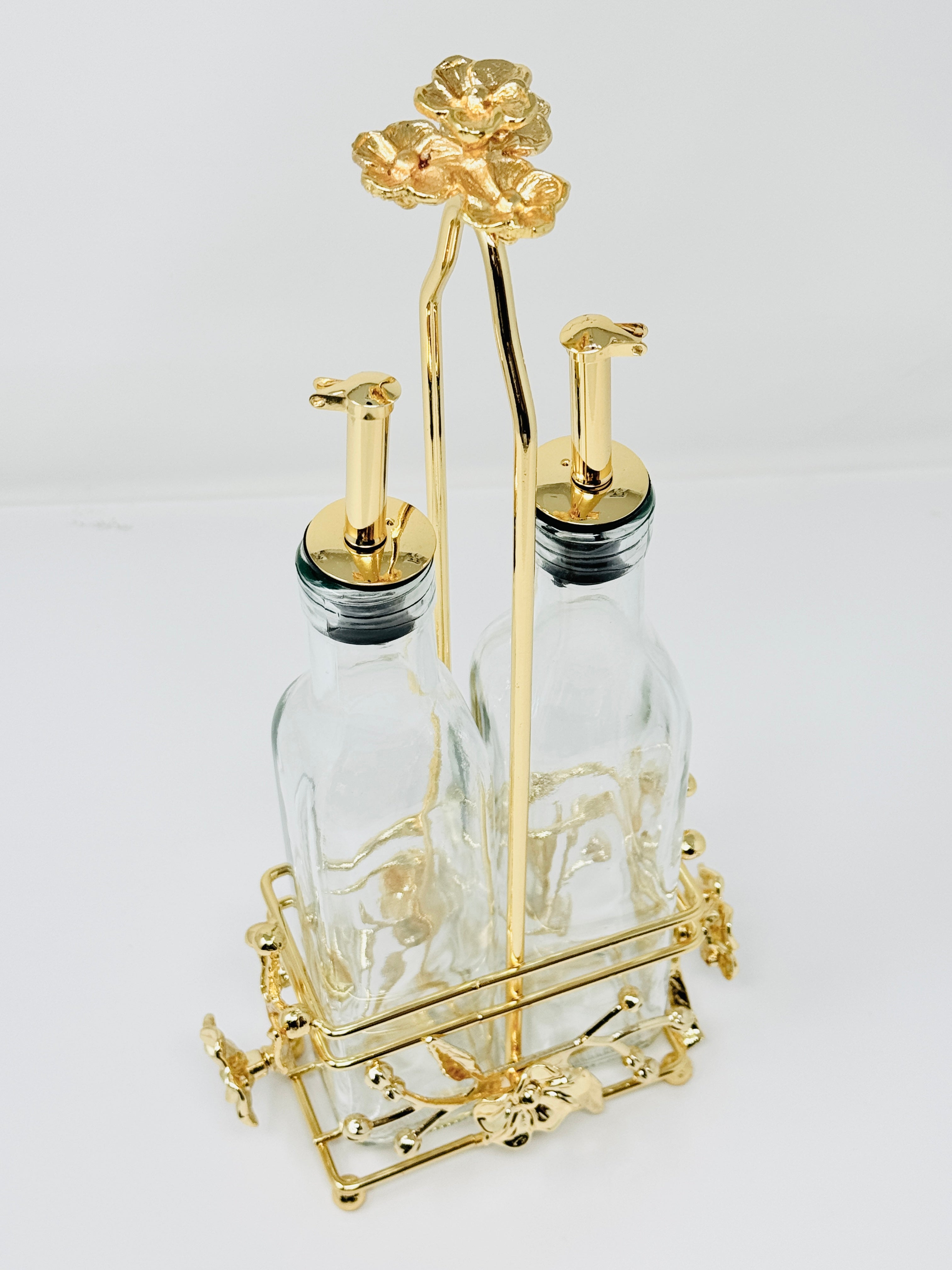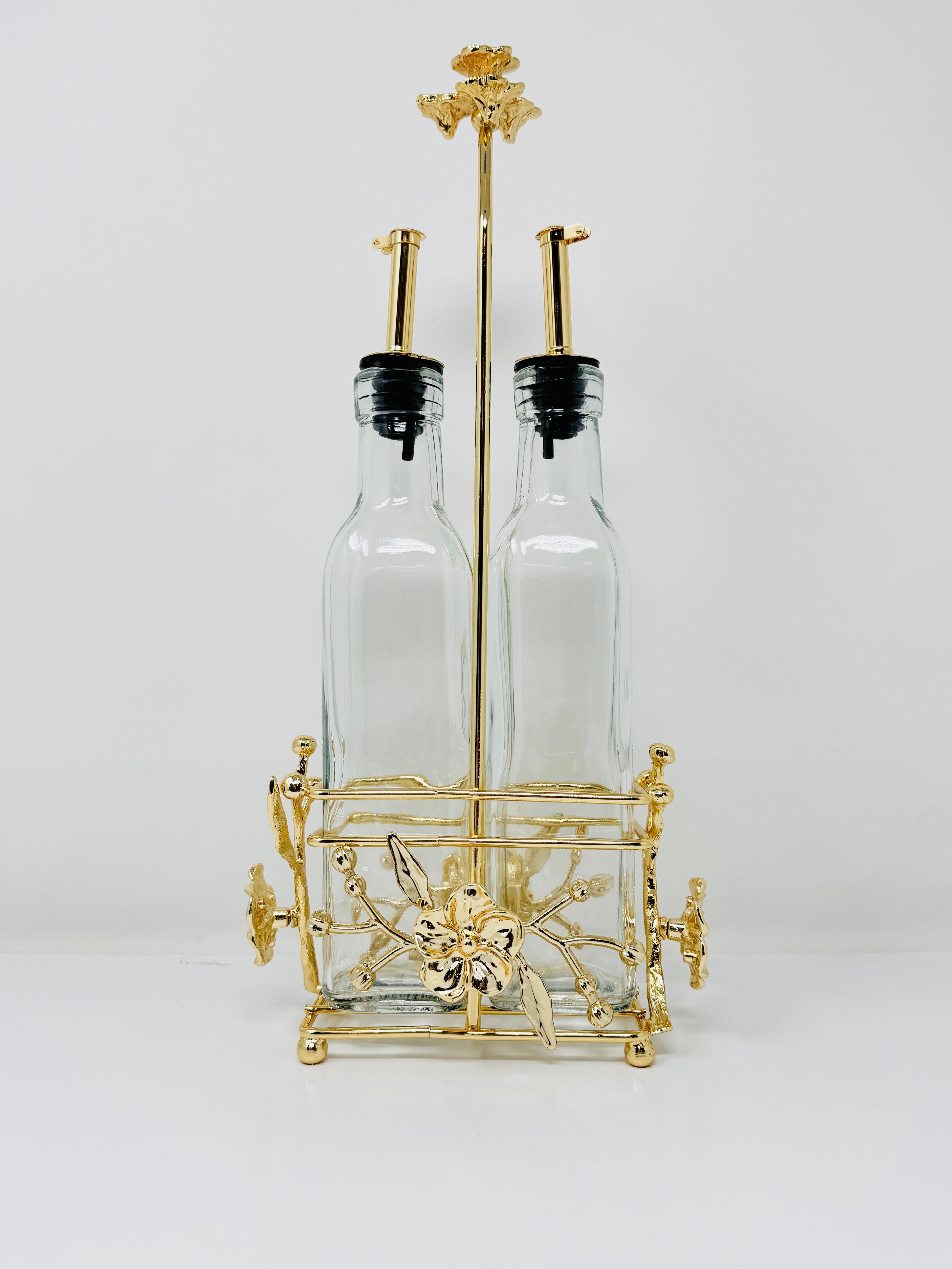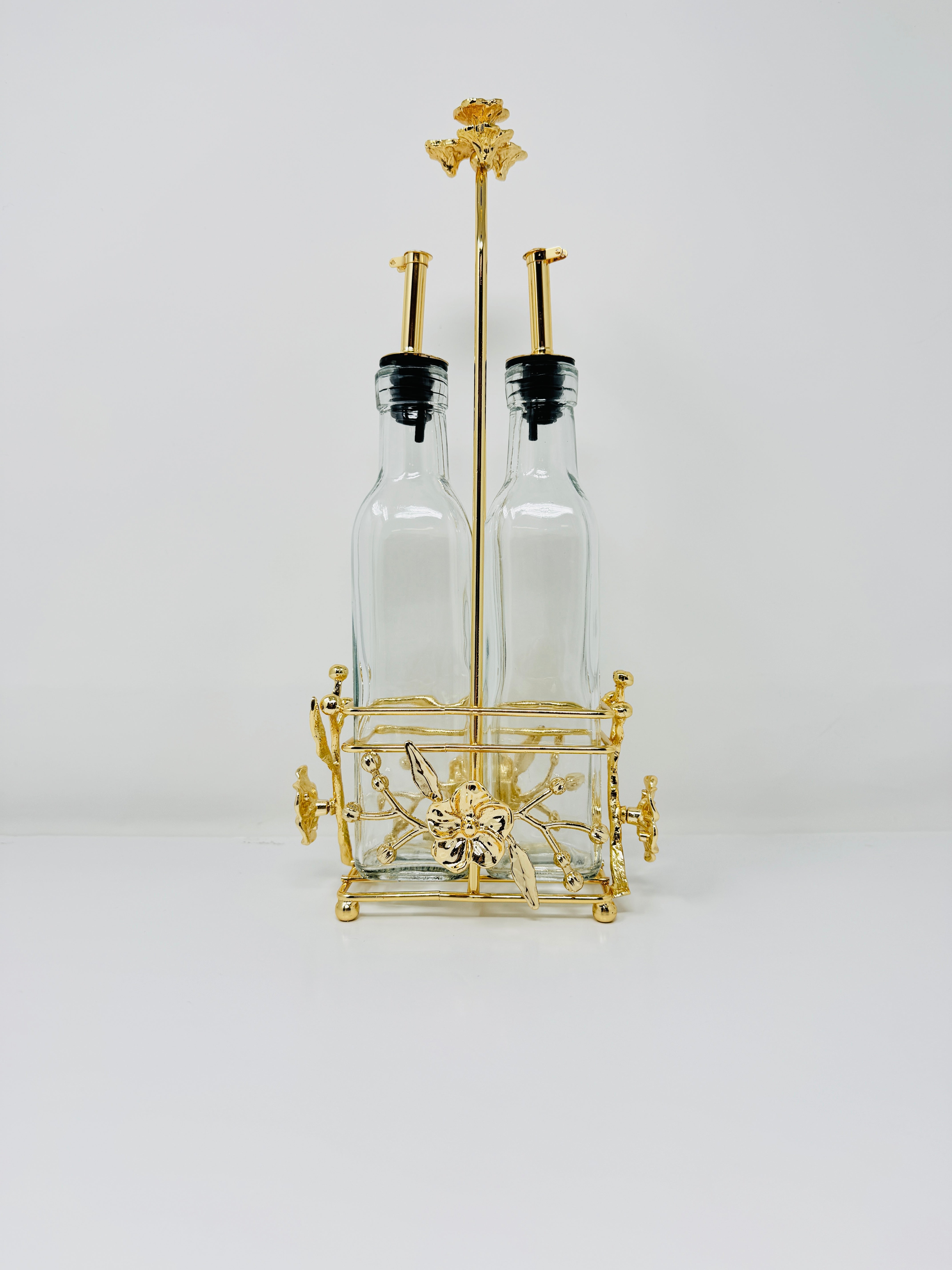 Add a stylish piece to your home with this stunning Olive Oil and Vinegar Cruet Set. A perfect way to accent your counter tops, and organize your condiments.