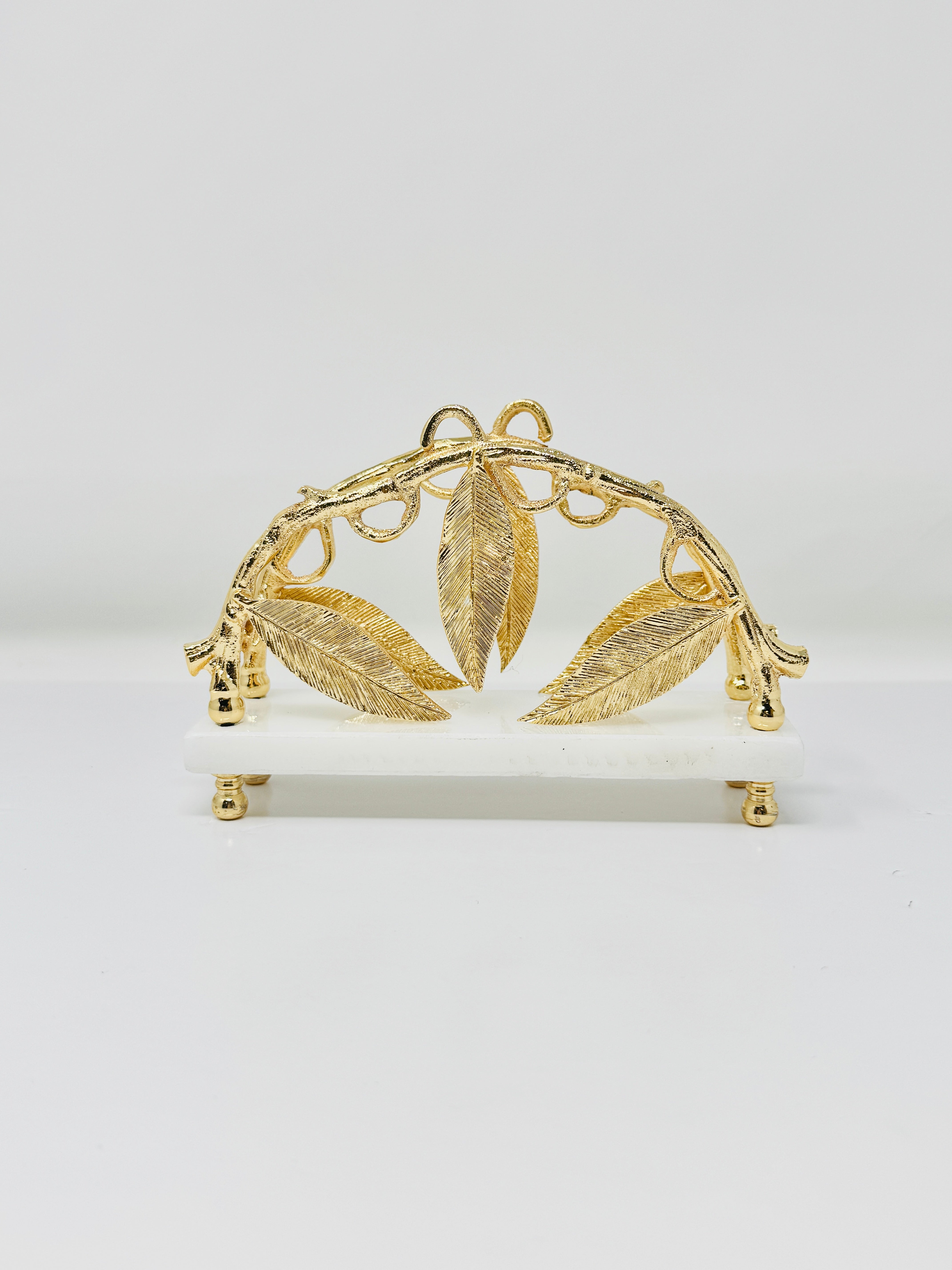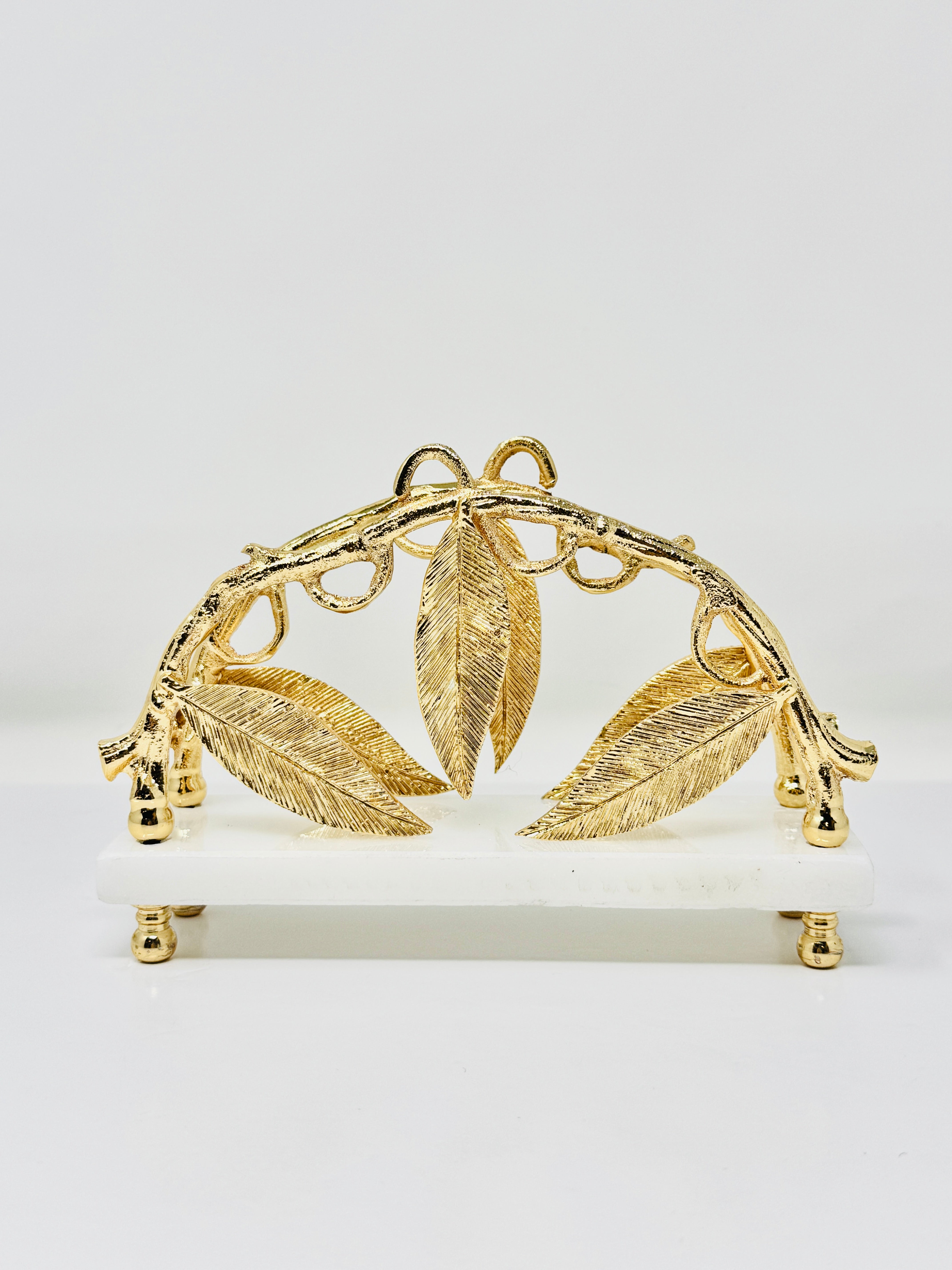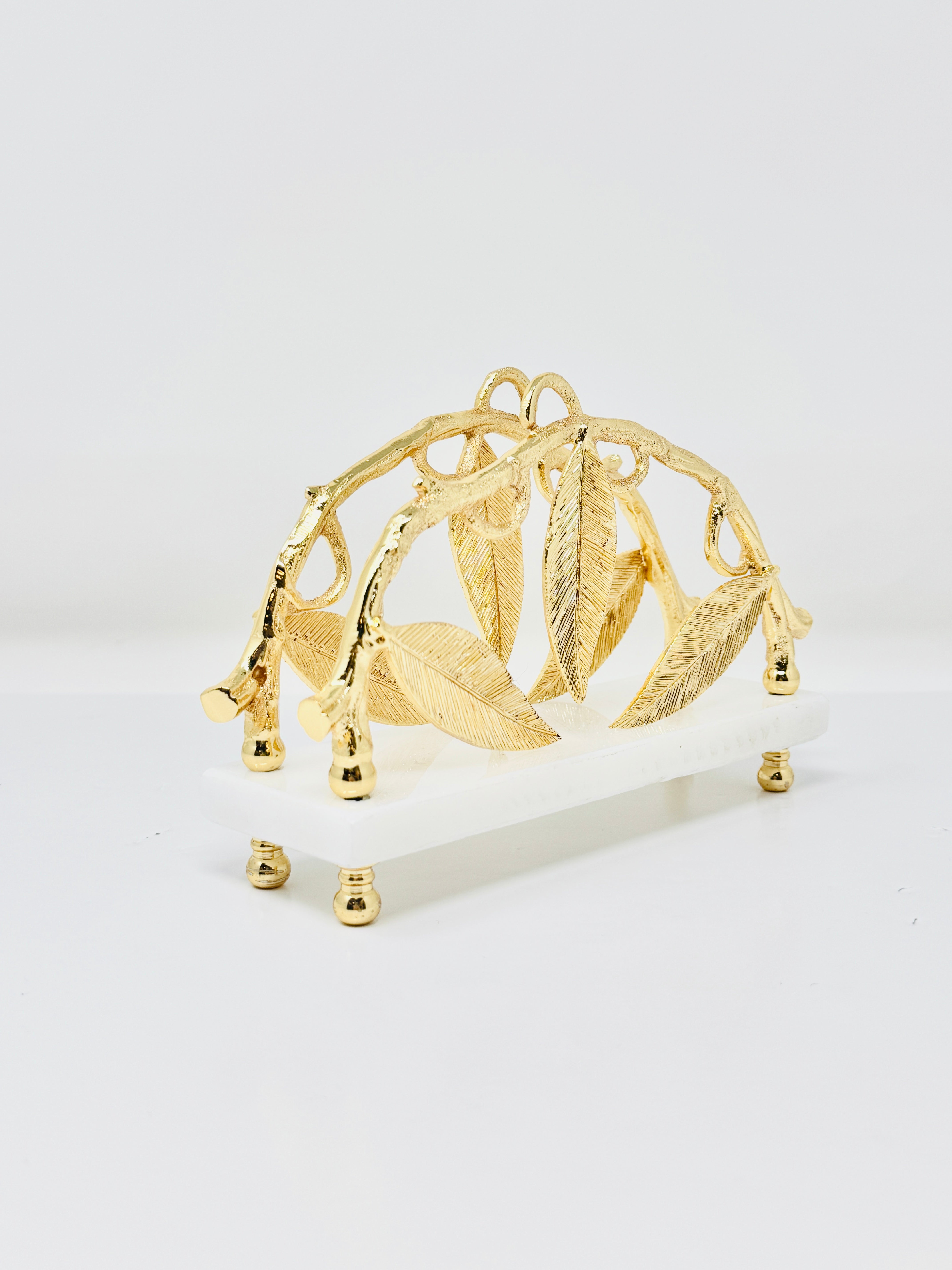 This exquisite marble napkin holder, adorned with golden Leaf accents, is a symbol of elegance and sophistication. Perfect for elevating your table setting, this piece is sure to impress your guests.