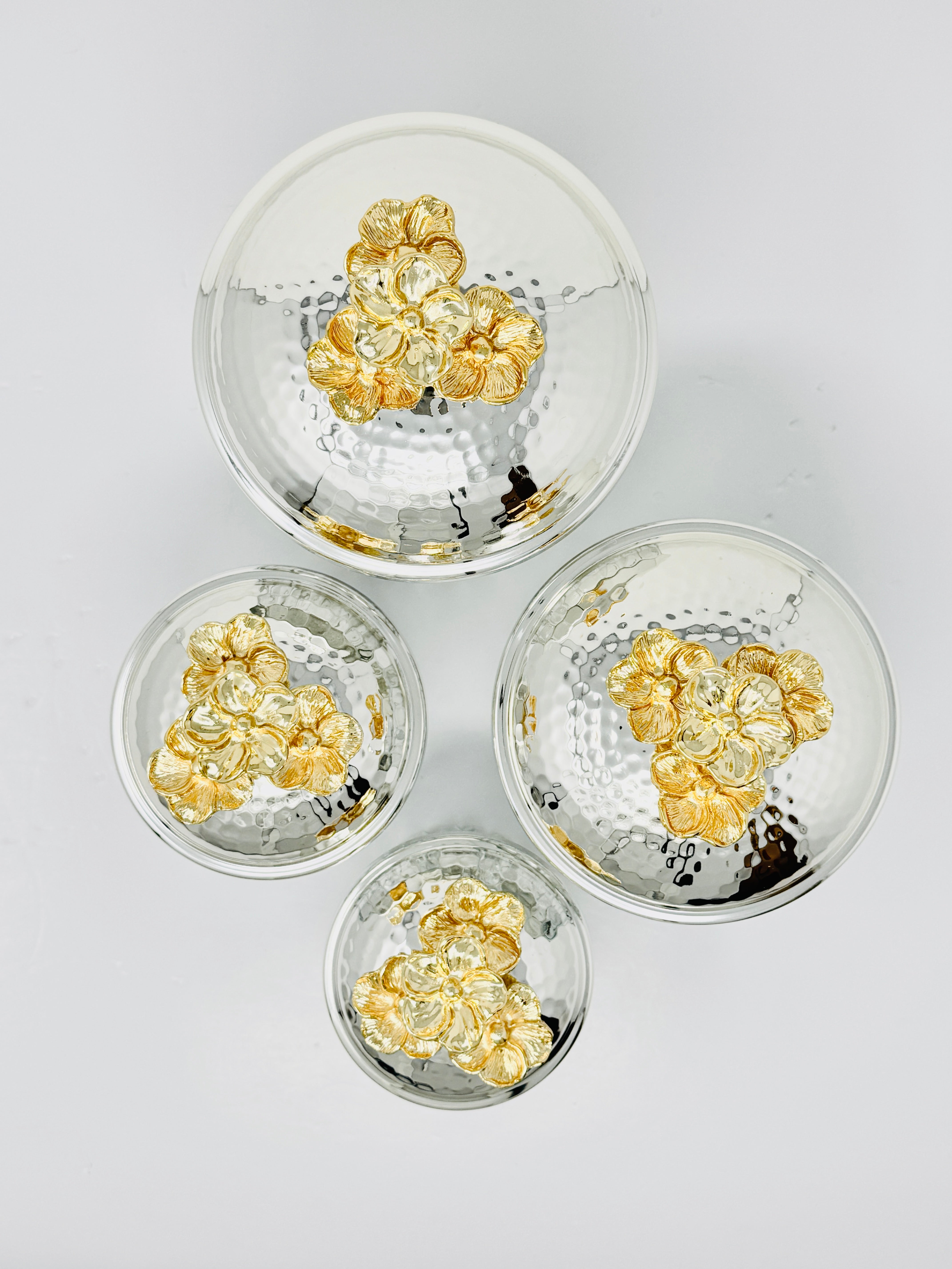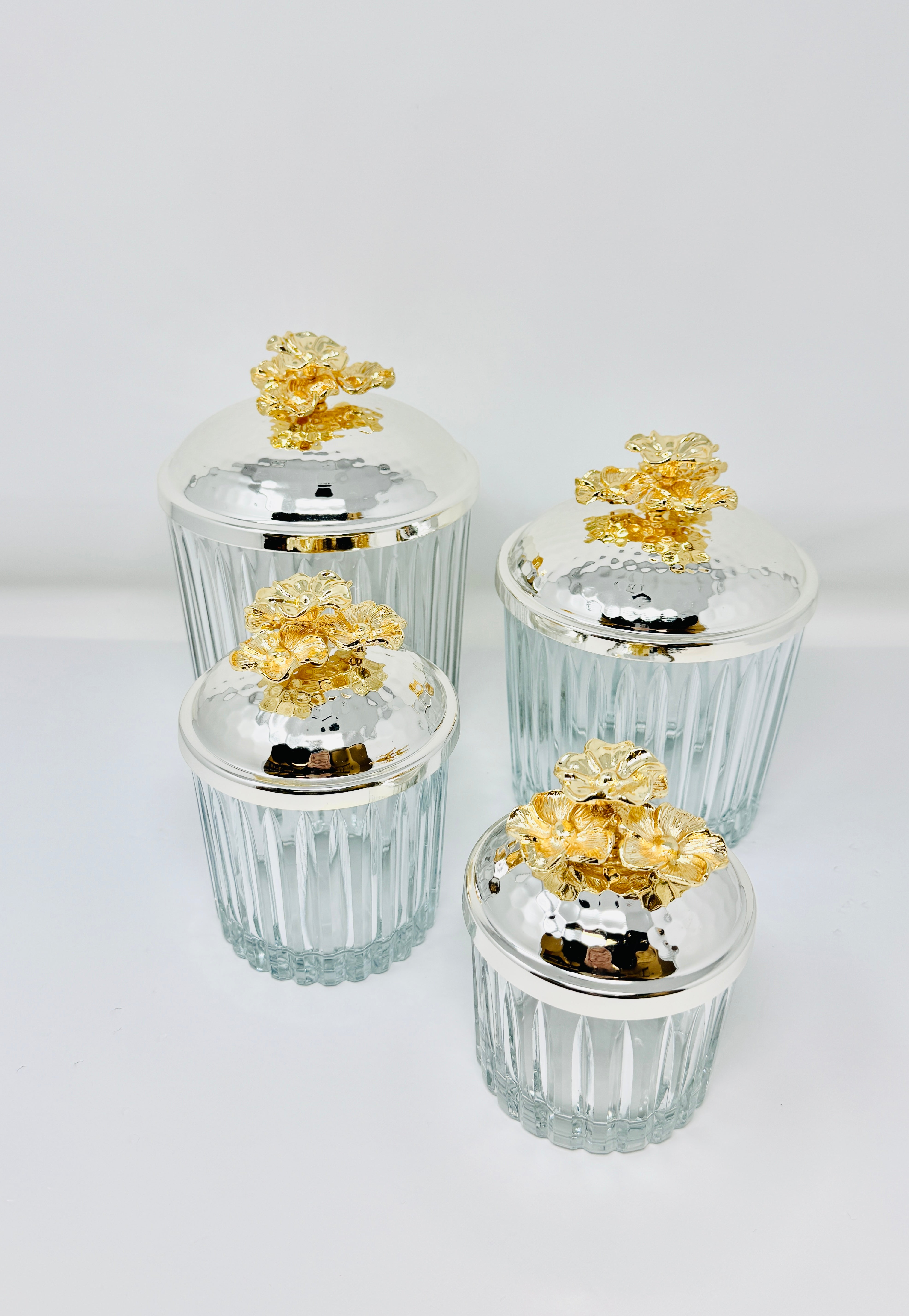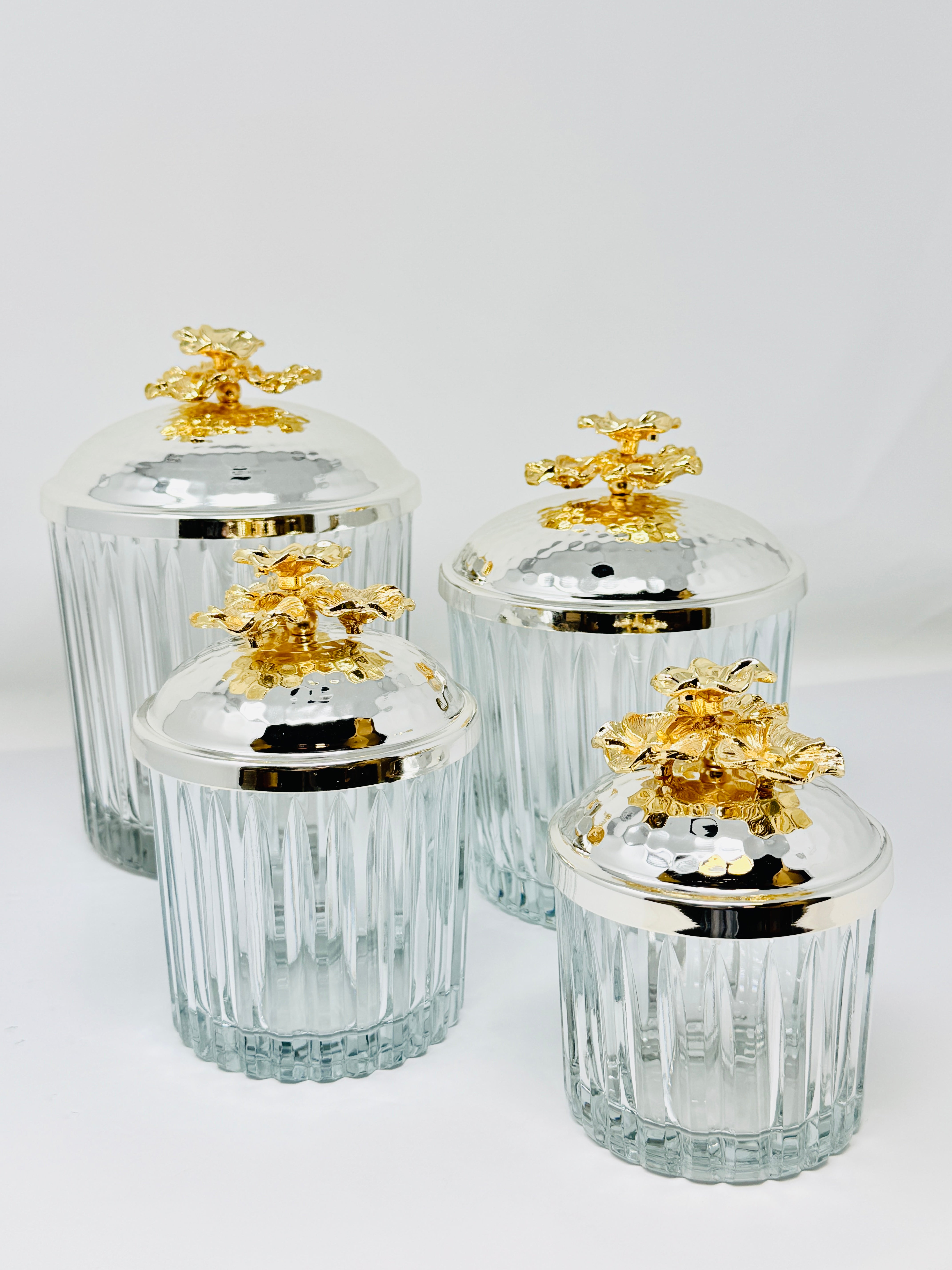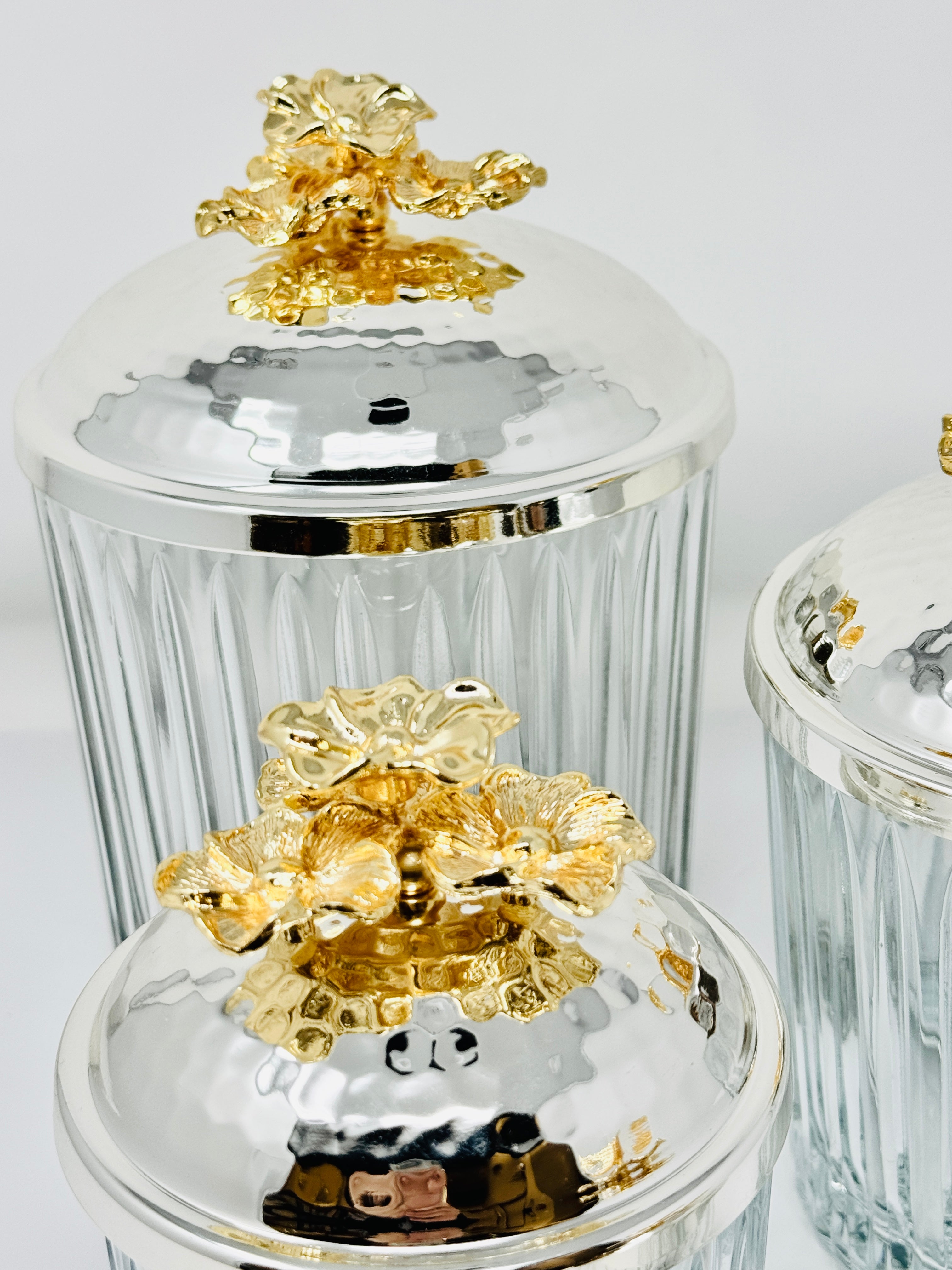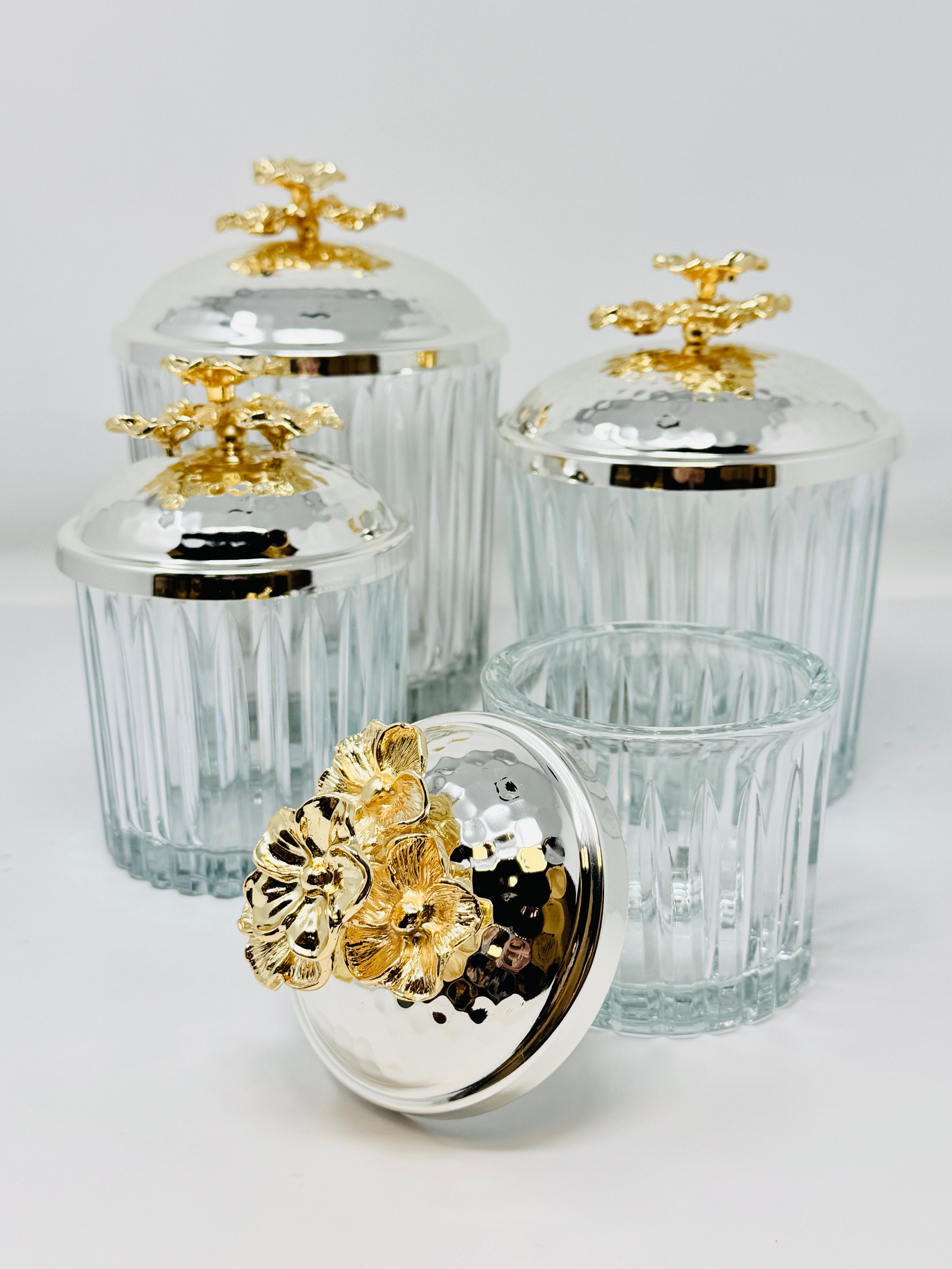 SILVER & GOLD TONE GLASS JAR SET WITH LID, ORCHID COLLECTION