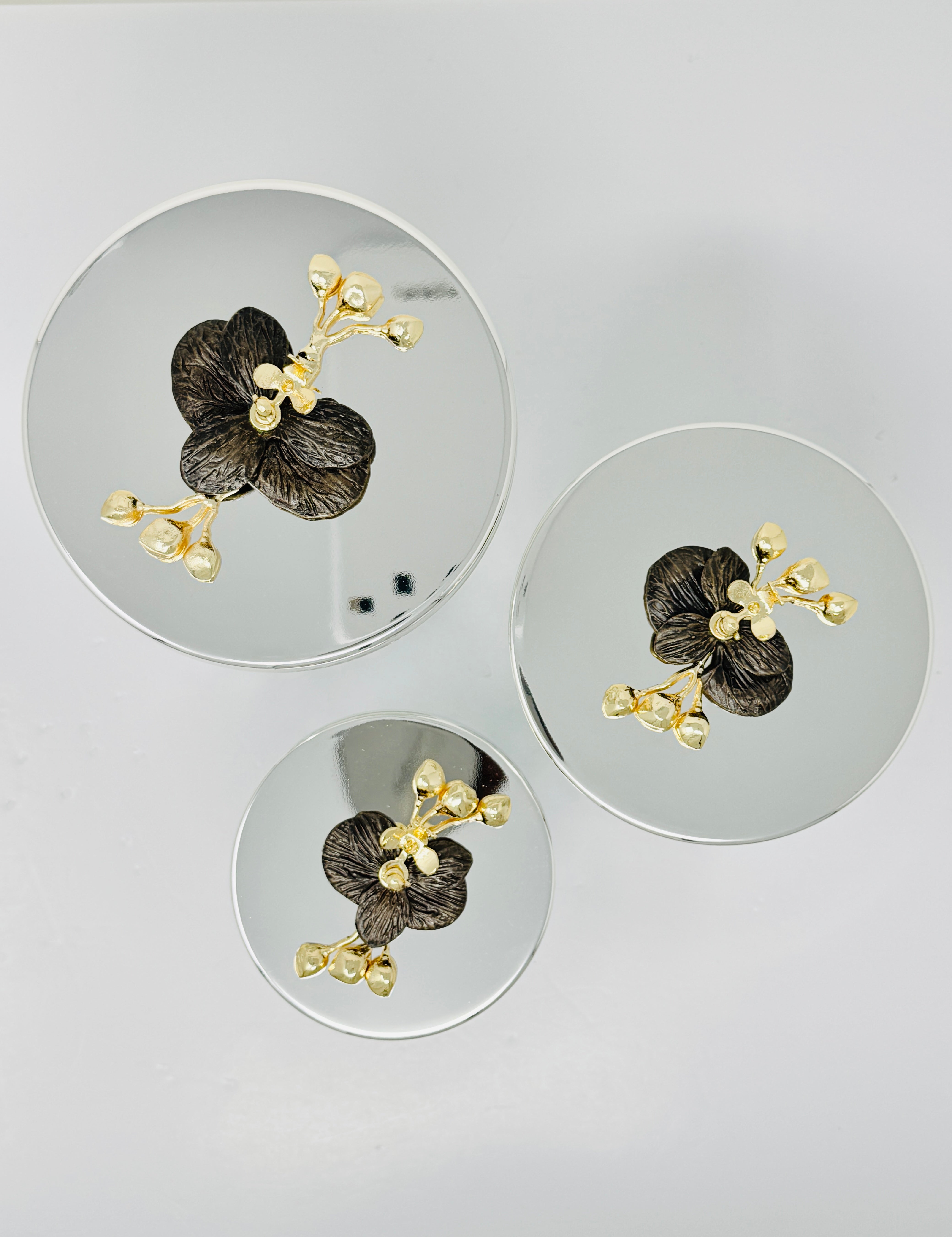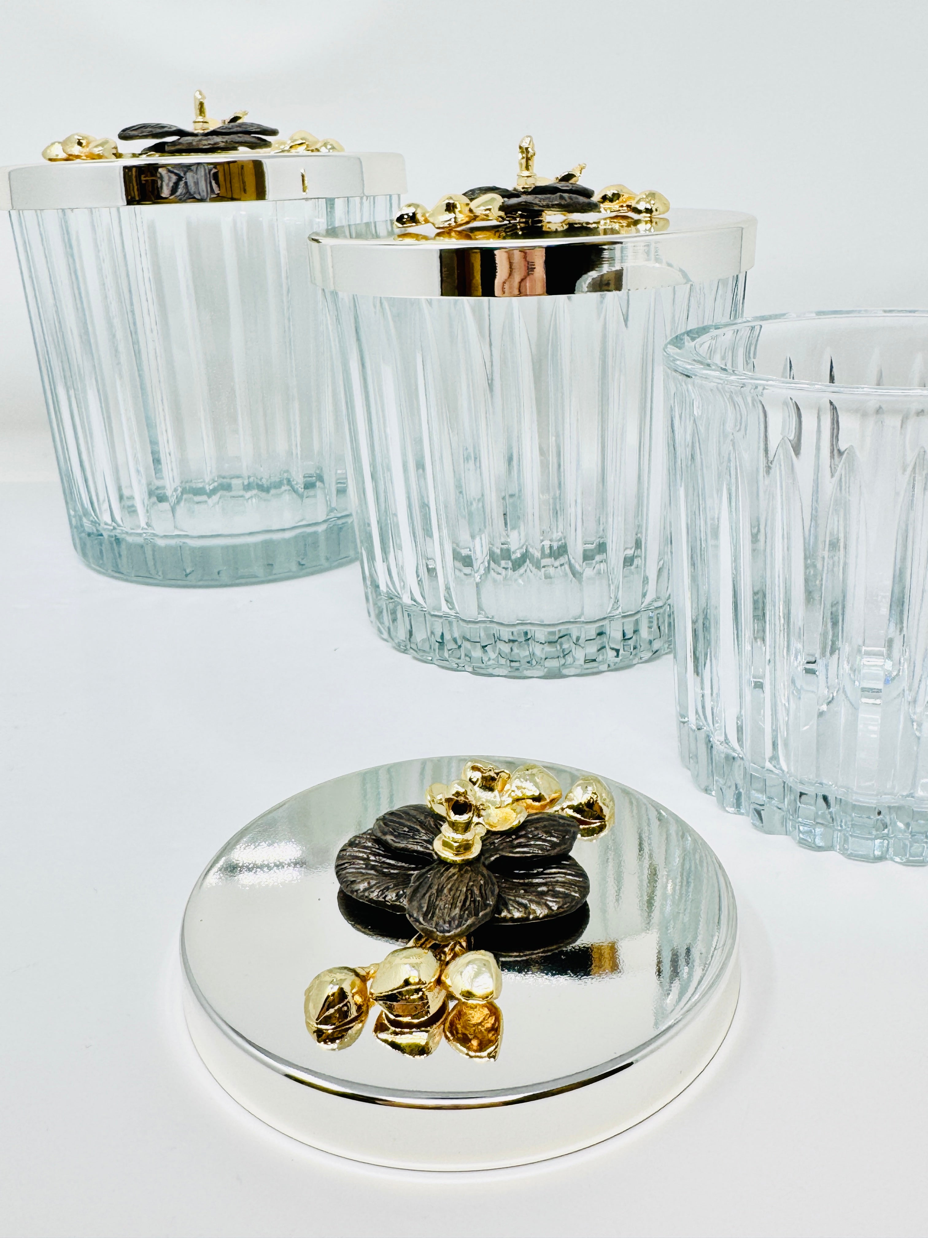SILVER TONE GLASS JAR SET WITH LID, ORCHID COLLECTION