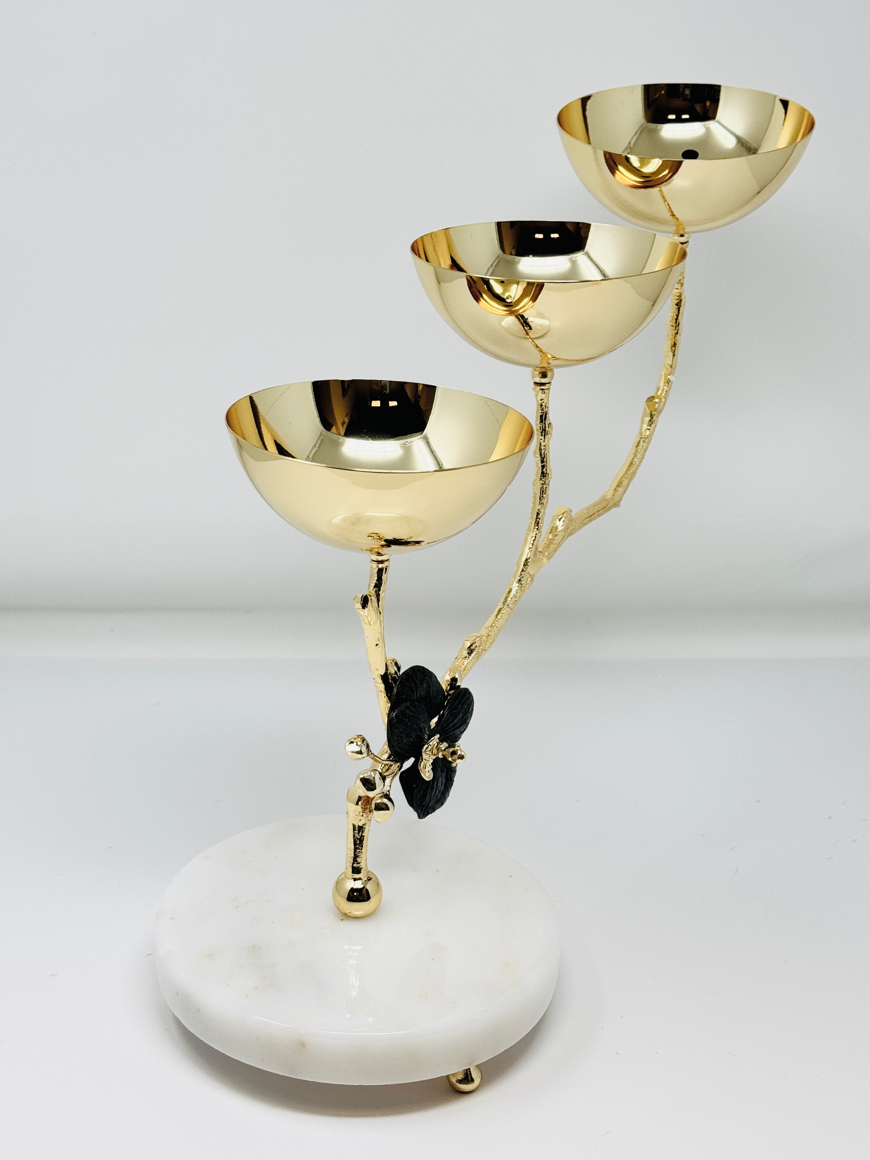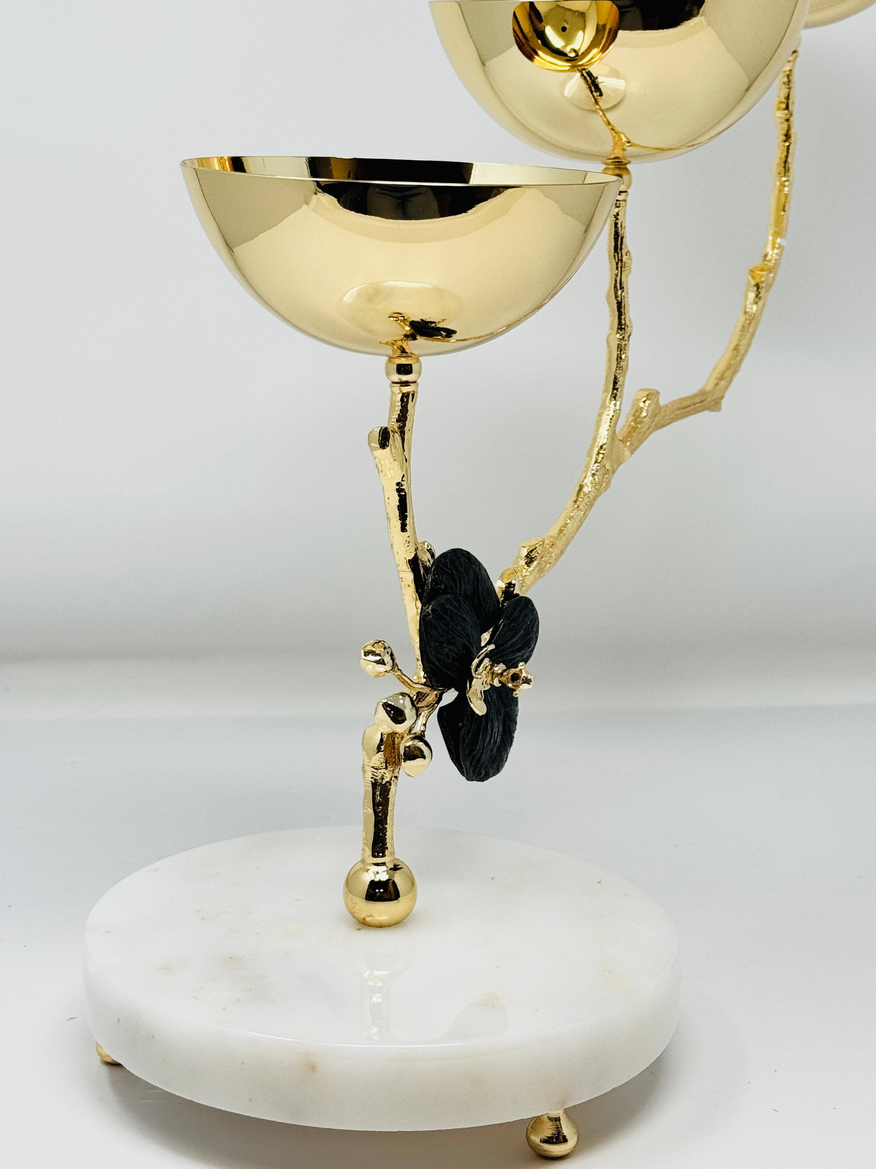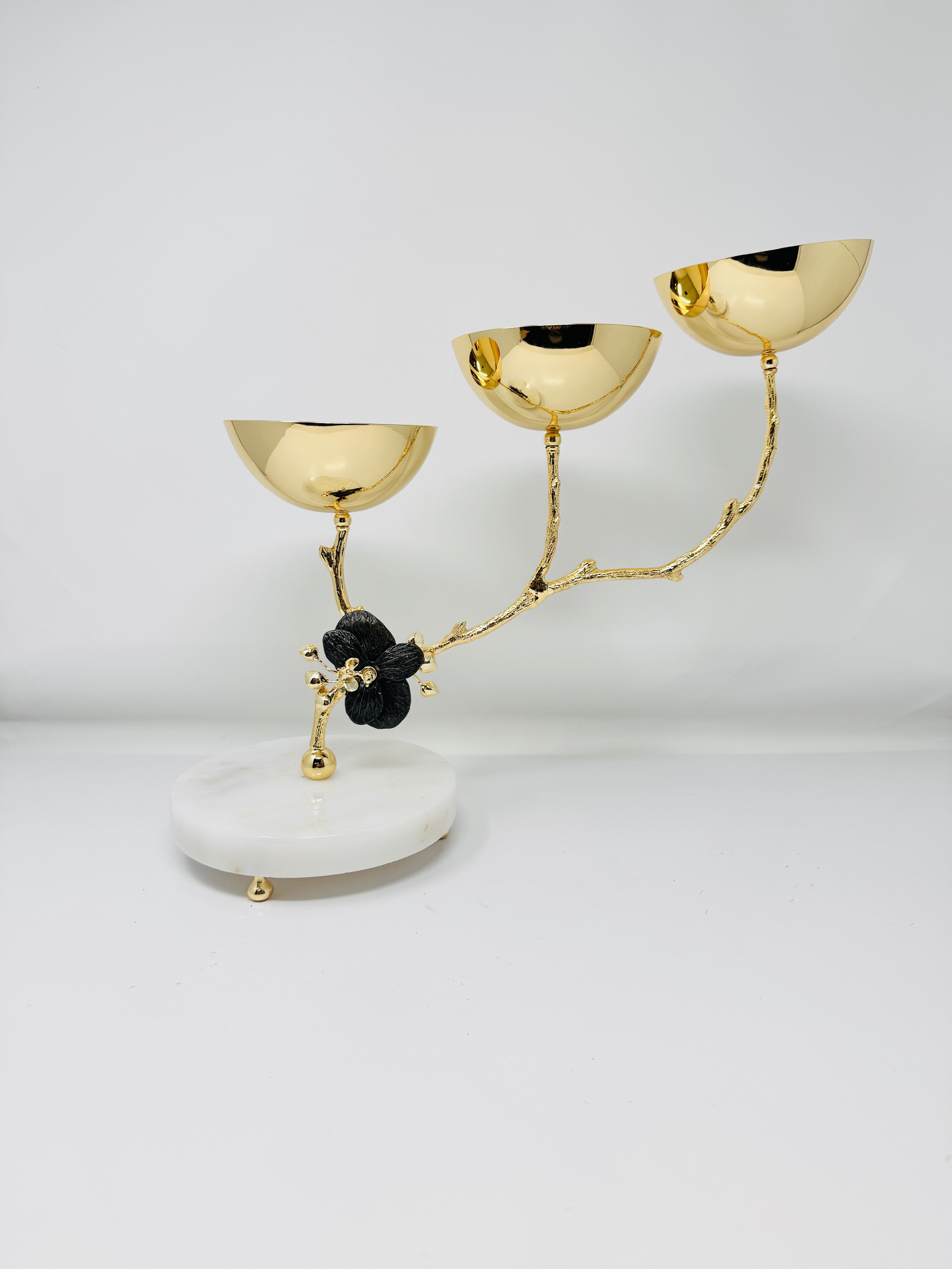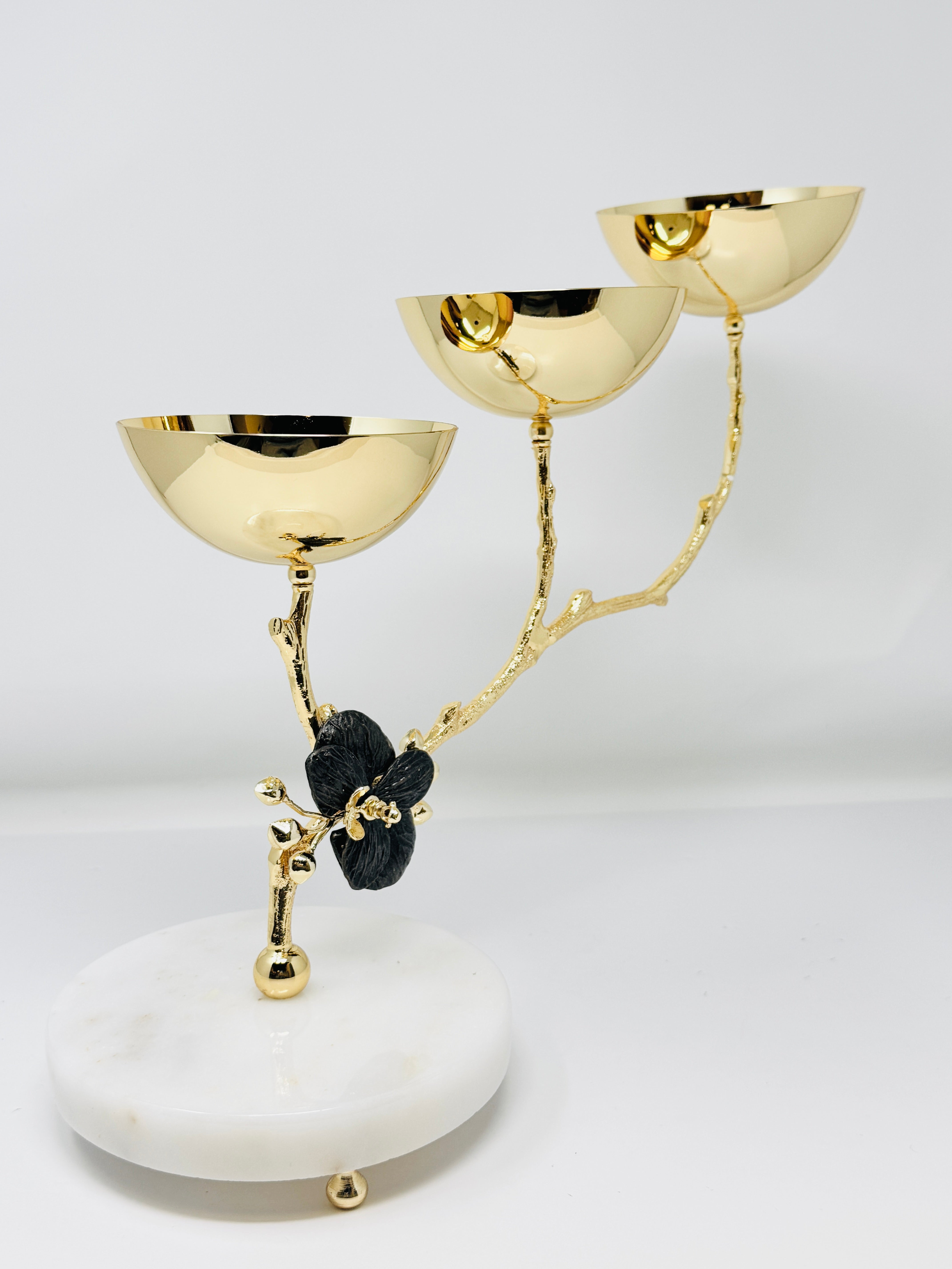 THREE SECTION GOLD TONE SNACK BOWL, ORCHID COLLECTION