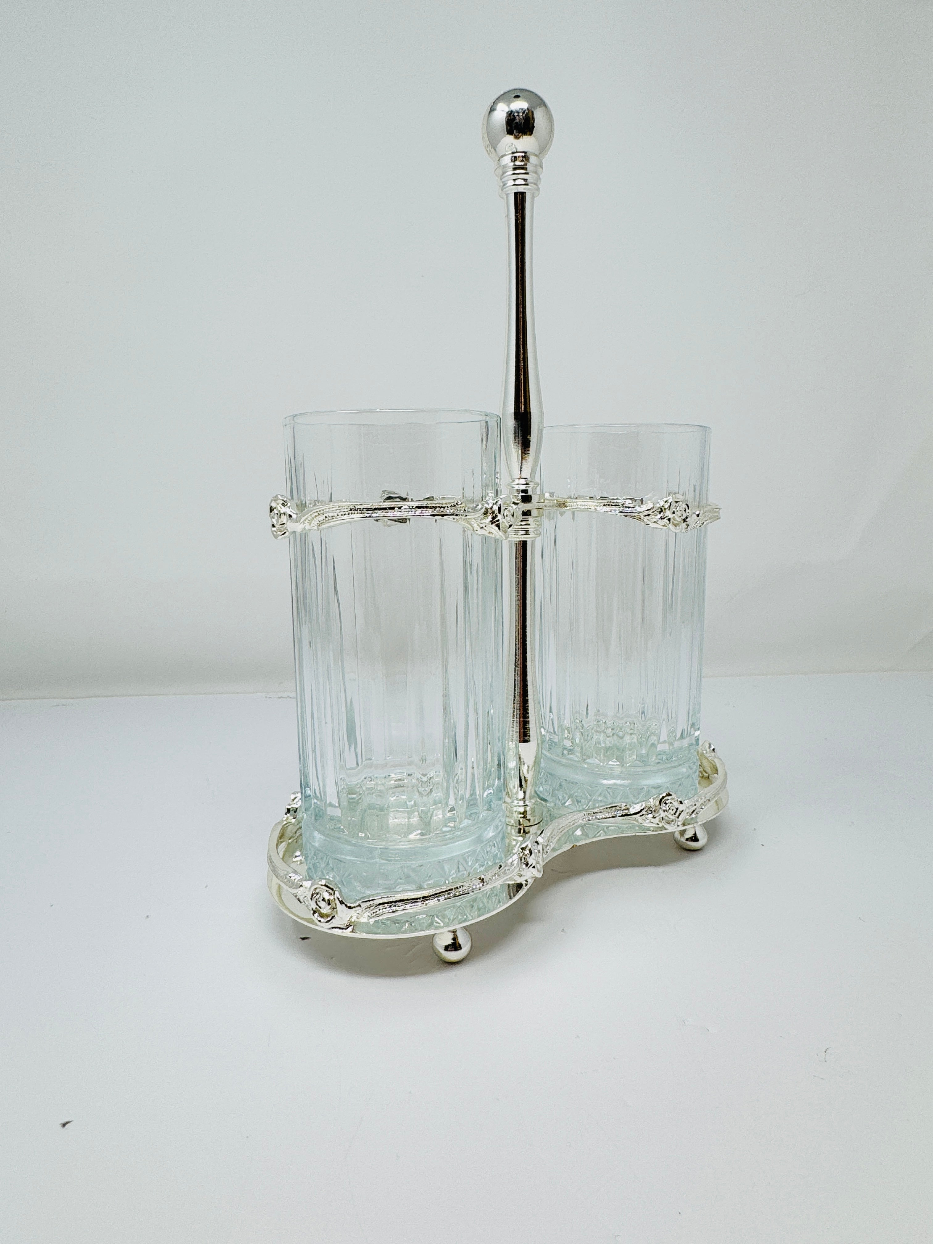 TWO-SECTION GLASS CUTLERY HOLDER ON STAND
